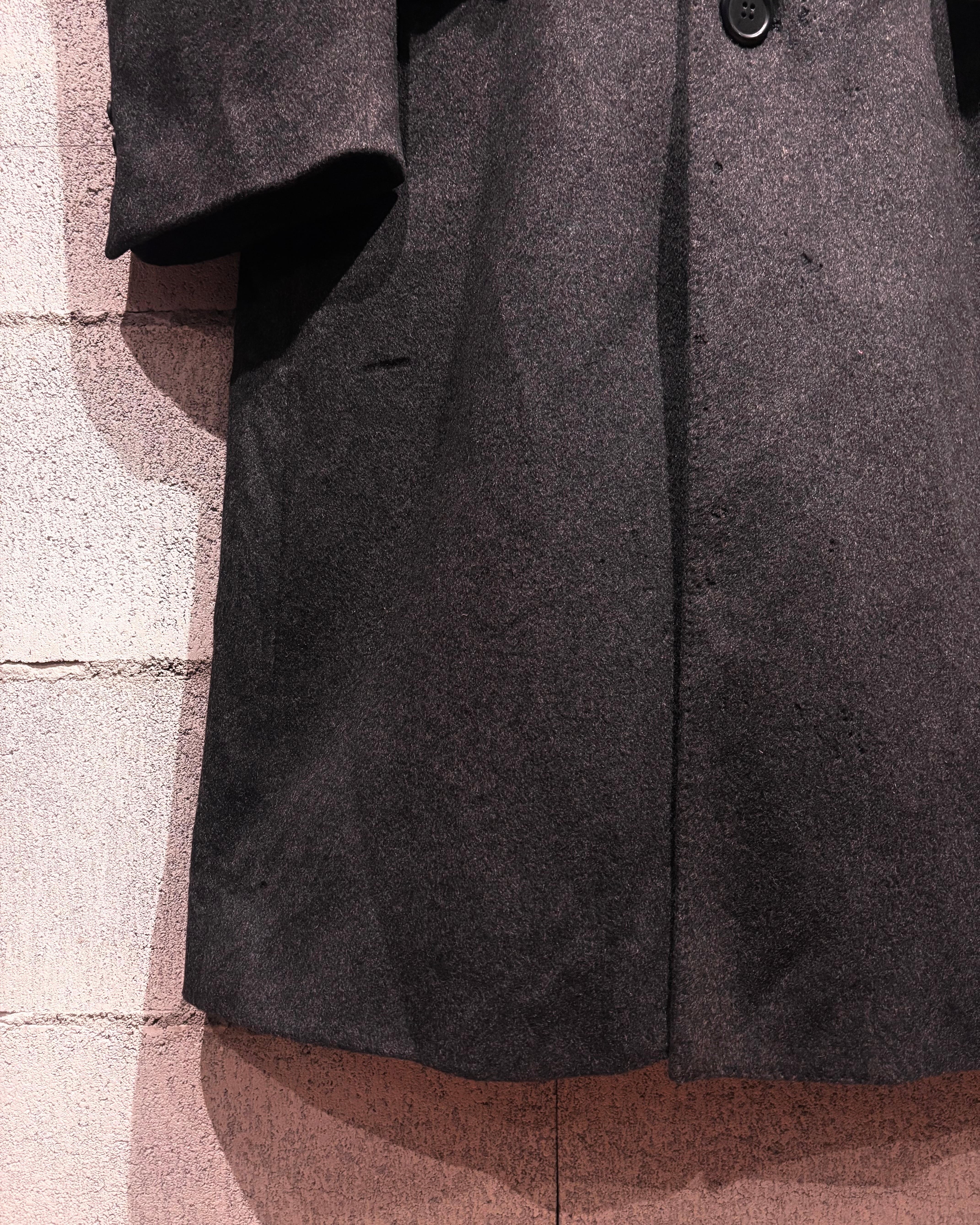 カシミアらしいしなやかさと品の良さが一目で伝わる、上質なチャコールのチェスターコート。