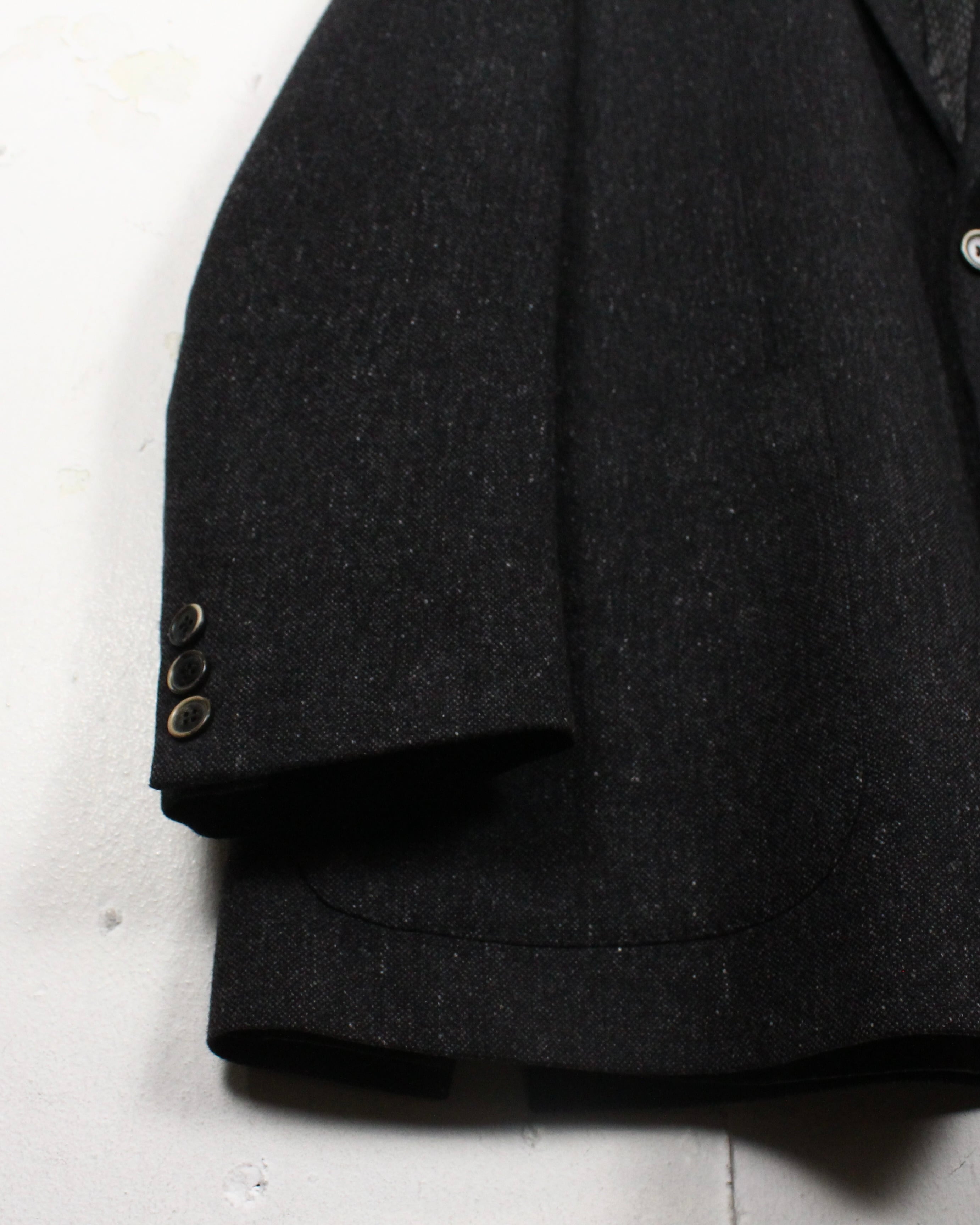 上質なヴァージンウールを贅沢に使用した1着で、深みのあるチャコールトーンに細かなネップが浮かぶ上品な表情が非常に美しい、、、