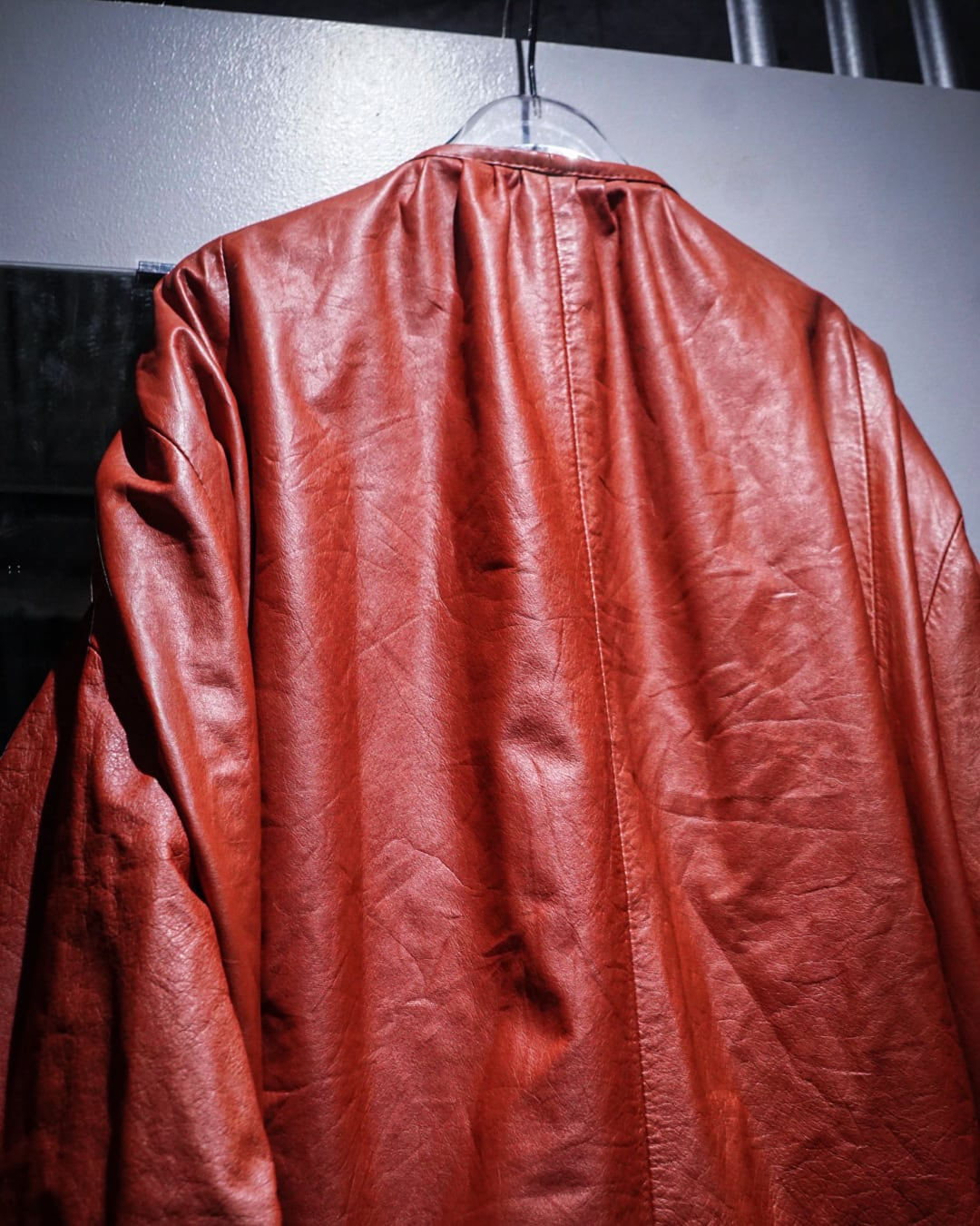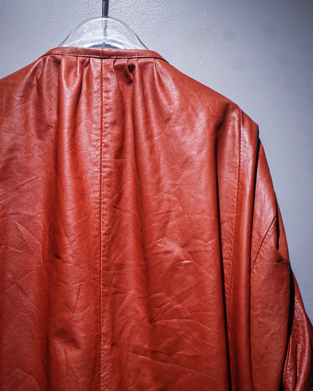 鮮やかなオレンジ掛かった赤色が一際目を惹く、80'sヴィンテージのレザー羽織りジャケット。