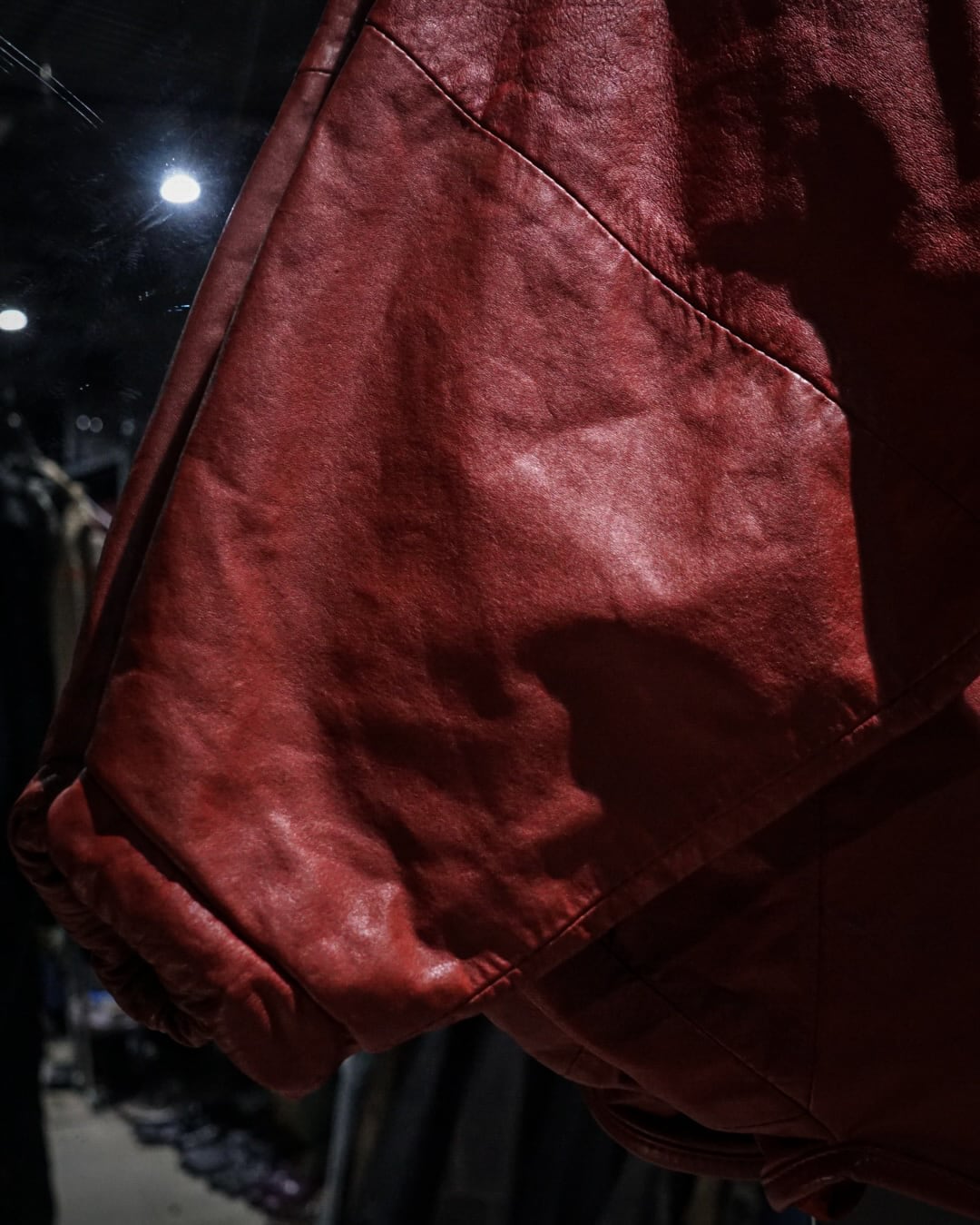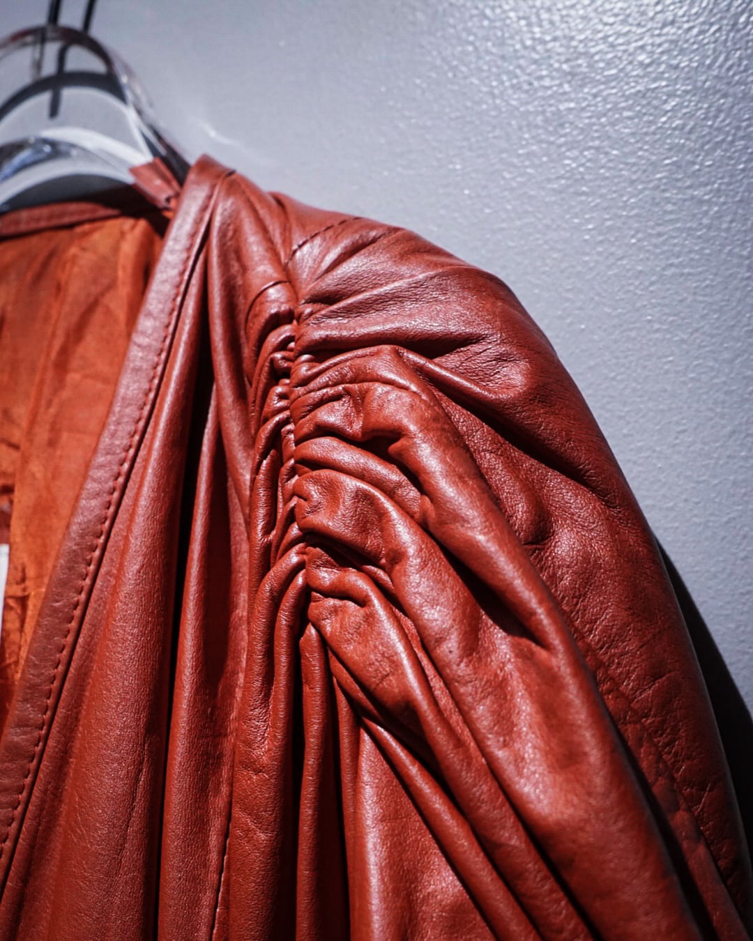 柔らかなレザー、作り手のクラフトマンシップが合わさることで生まれ、レザーでドレープを楽しめる、服好きの心を鷲掴みにされる1着かと。