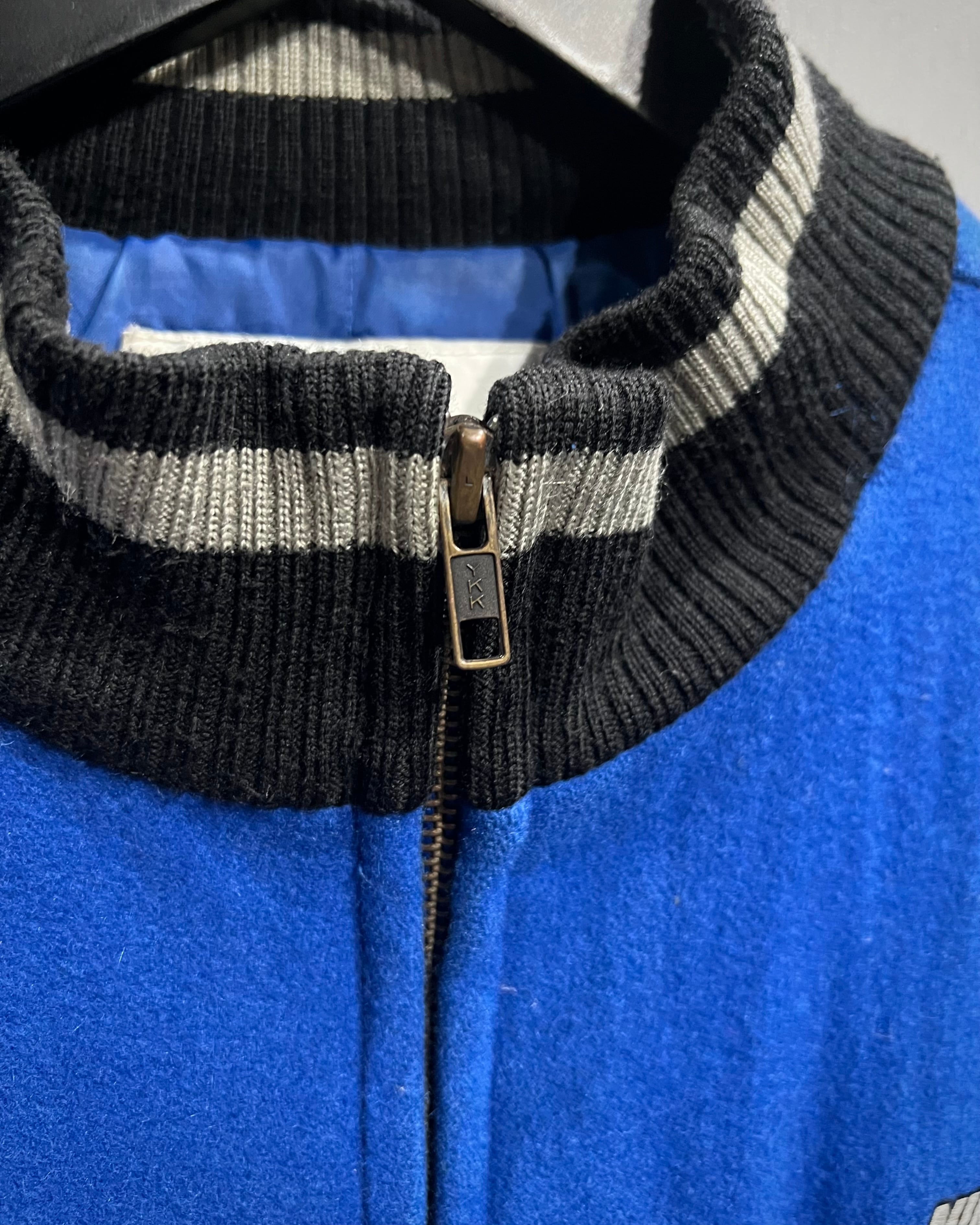 鮮やかなブルーを主役に、ブラックスリーブを組み合わせた王道かつ完成度の高いカラーリング。ボディにはウール×ナイロン混紡素材を使用し、程よい肉感と保温性を確保。スタジャンらしいクラシックな佇まいを残しつつ、デイリーに着やすい軽快さも備えています。