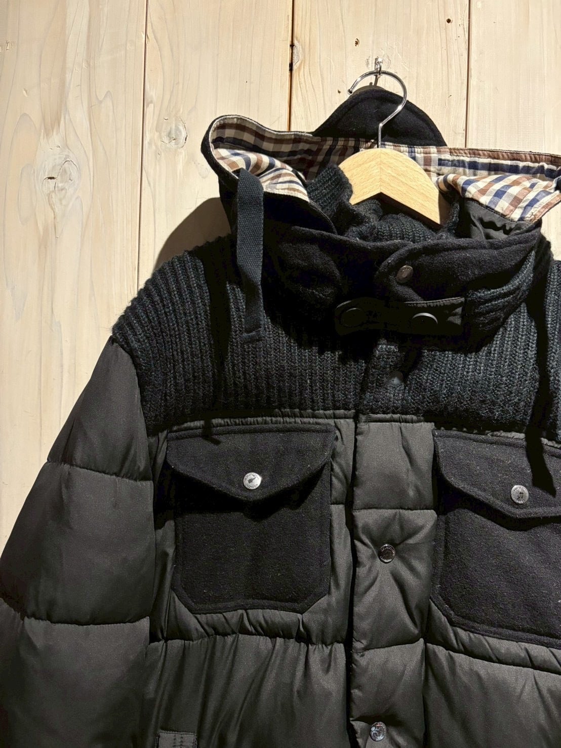 ベースはナイロンを採用。ヨーク部分にはニット、ポケットにはウール素材を配し、視覚的なコントラストと着用時の馴染みの良さを両立しています。