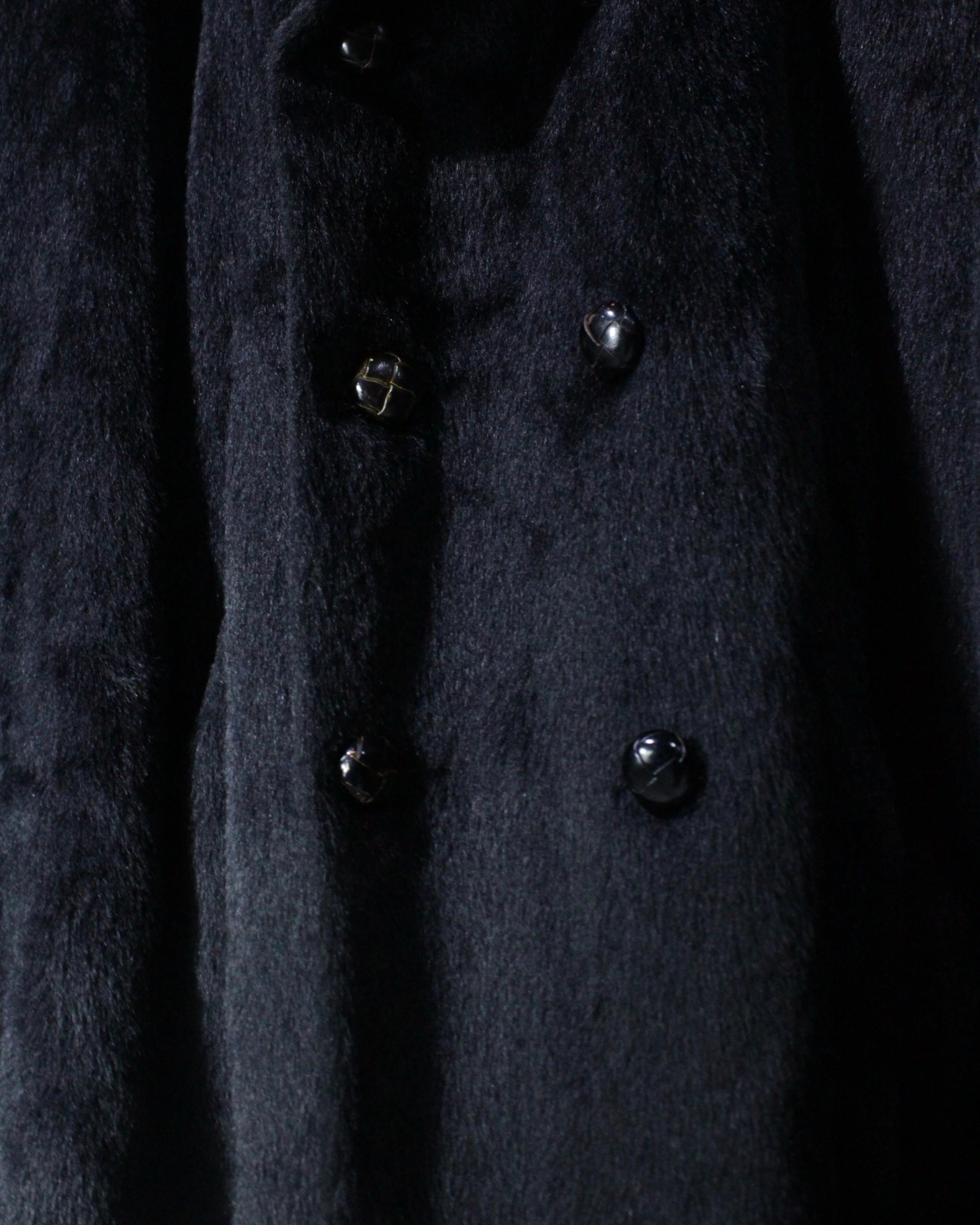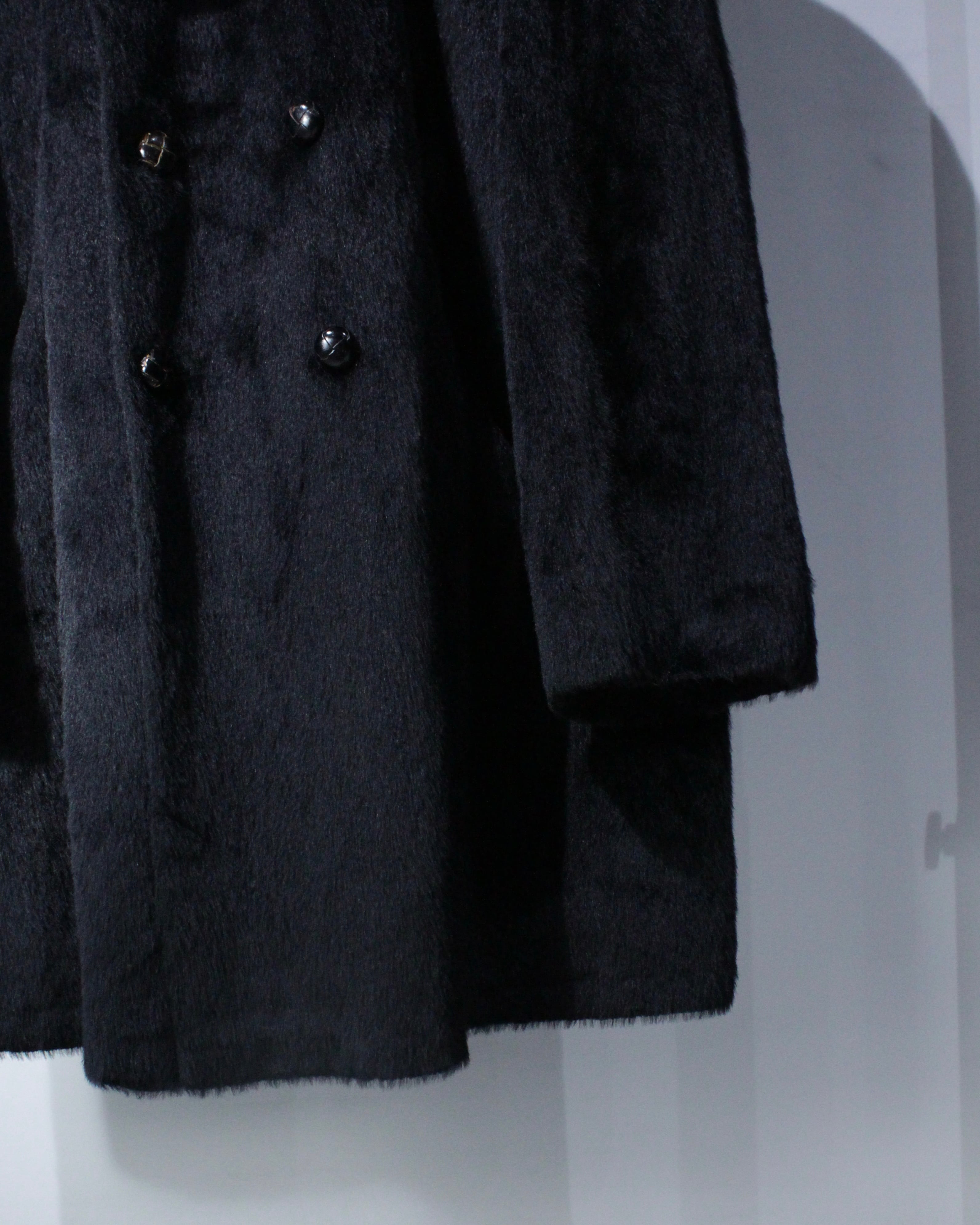 オールブラックに豊かな表情を生む、シャギーファーの60'sのダブルブレストコート。