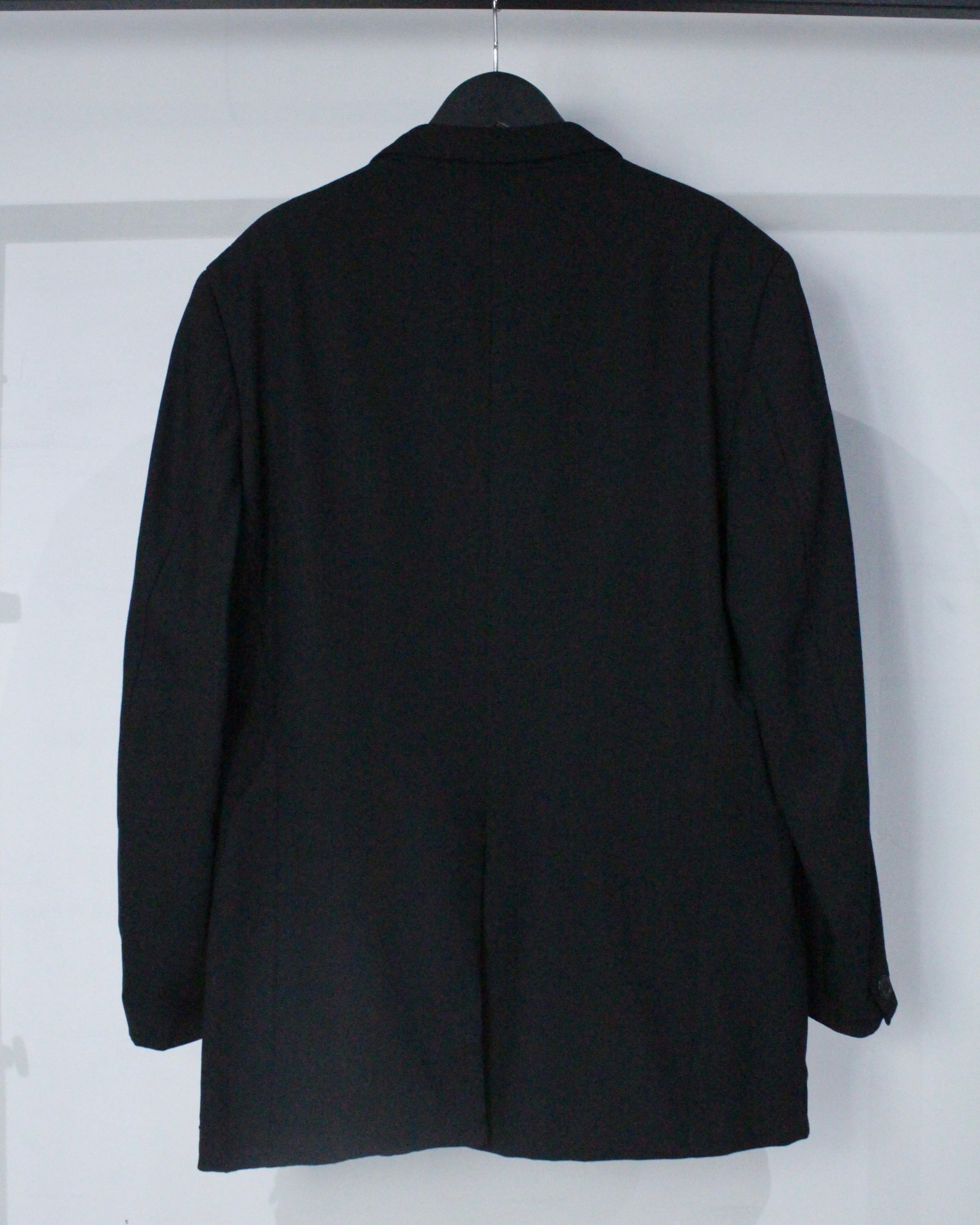 マットなブラックボディは、落ち感のあるしなやかな素材使い。肩の収まりから身頃にかけてのラインが非常に美しく、羽織った瞬間にシルエットの良さを実感できる仕立てとなっています。
