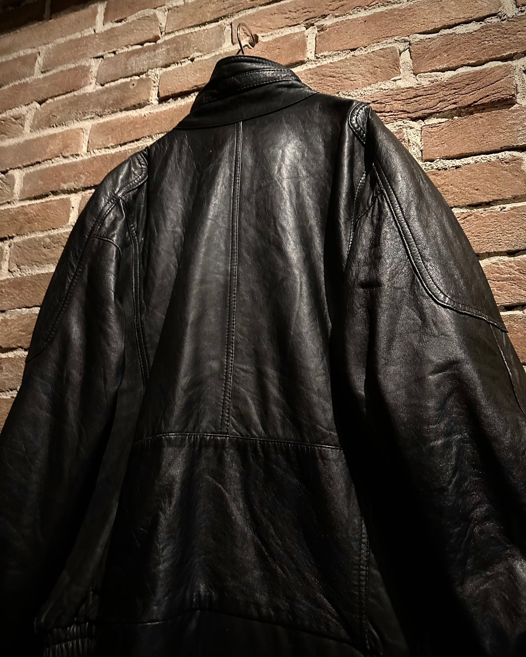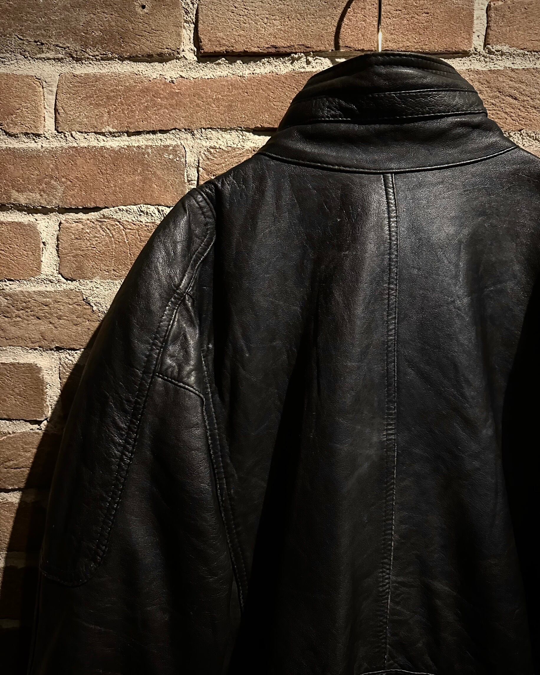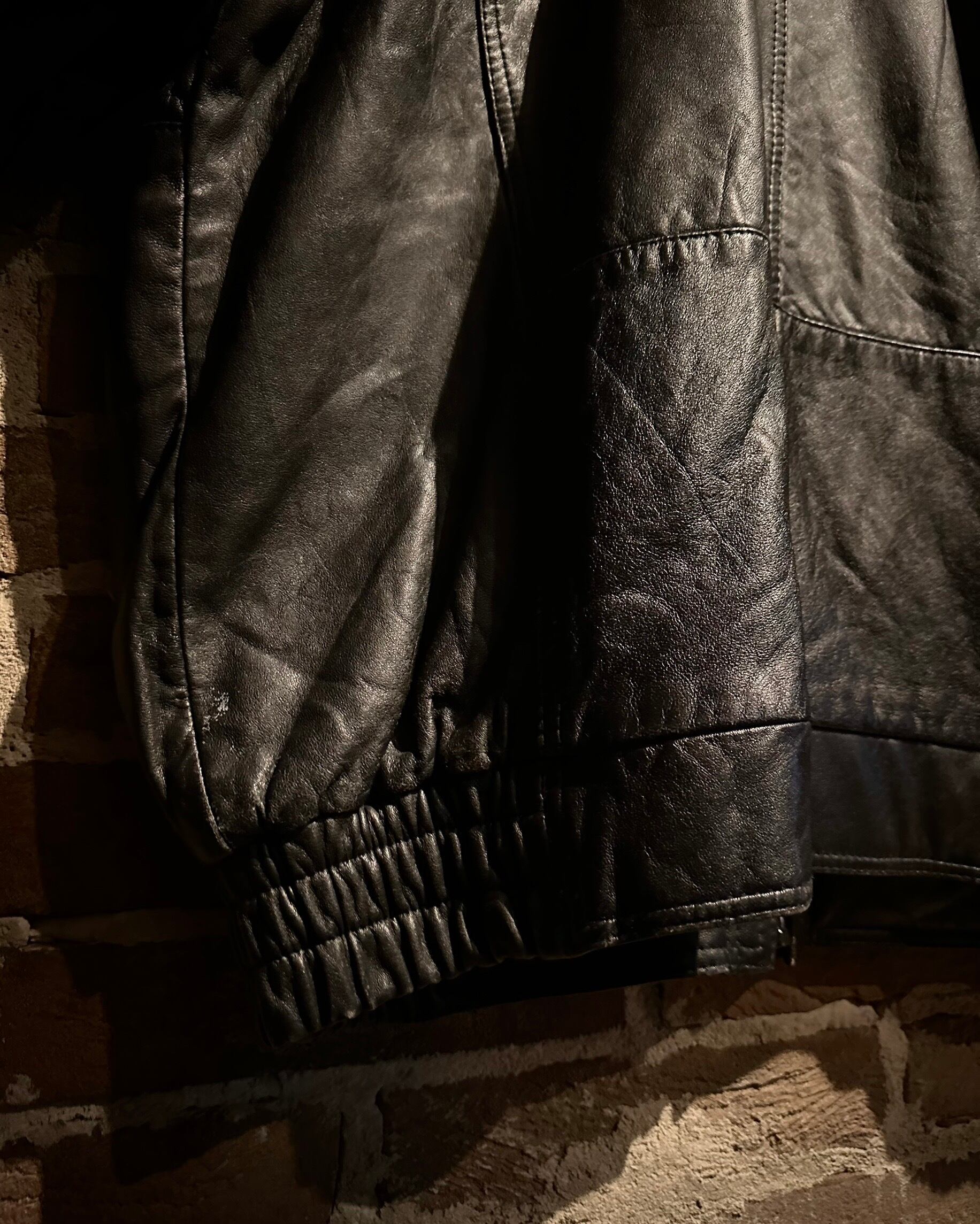 袖・身頃ともに立体的なパターンで構成され、レザー特有のハリを活かした丸みのあるシルエット。裾と袖口はリブ仕様で、着用時のフォルムも抜群です。