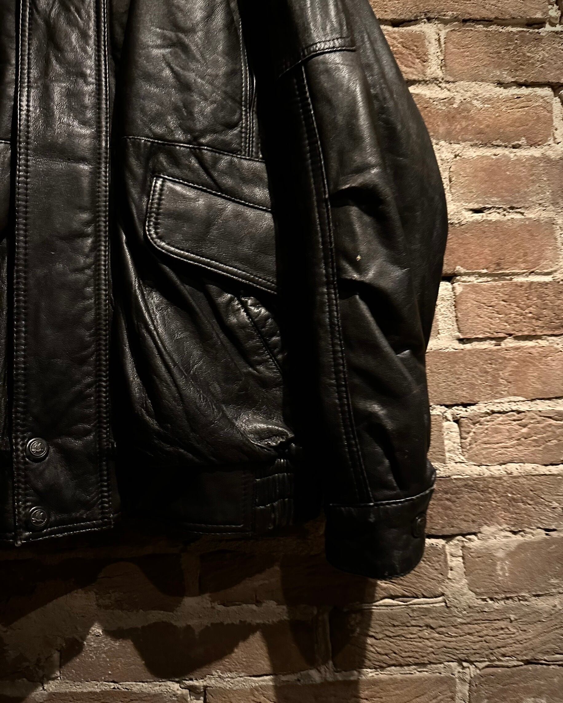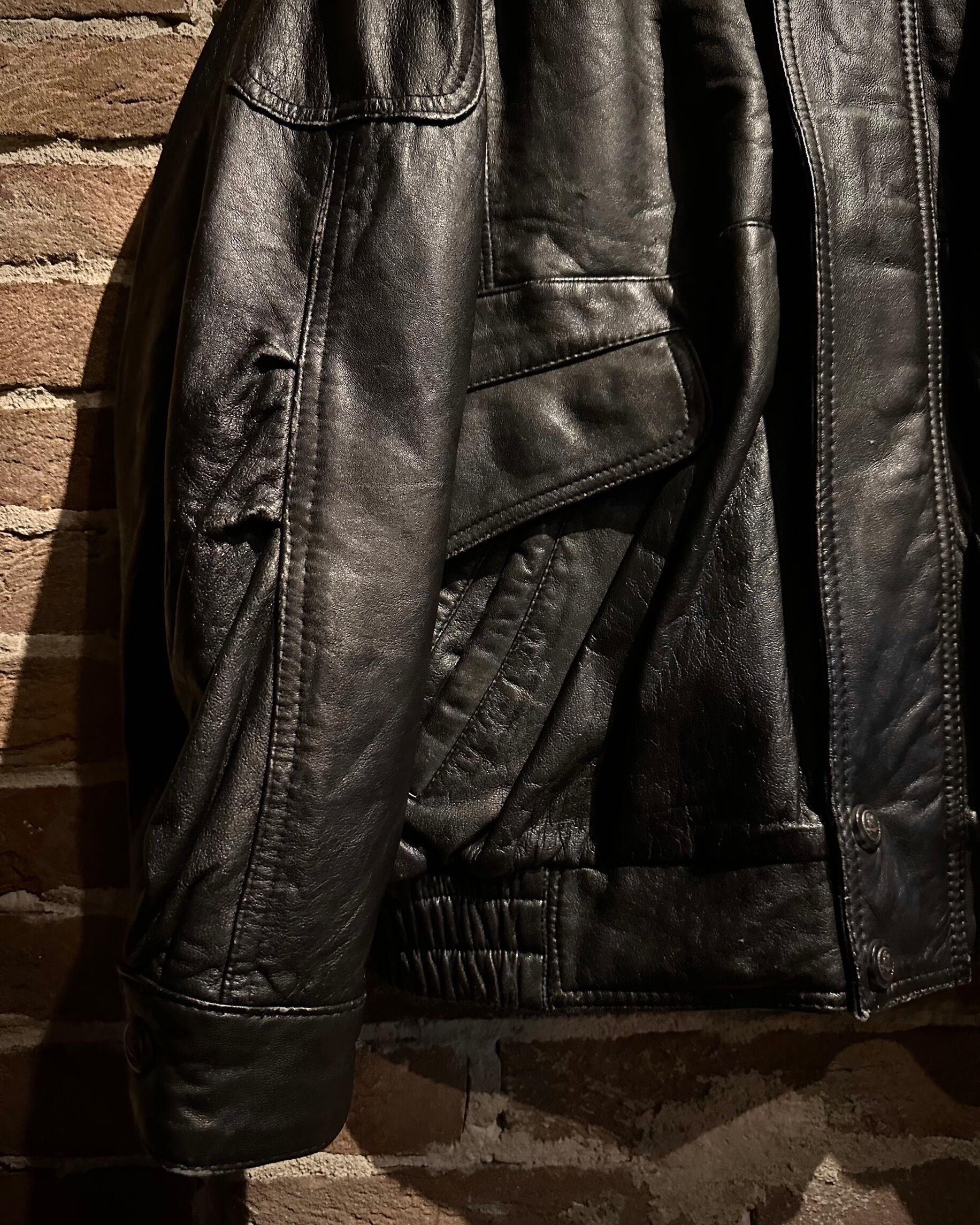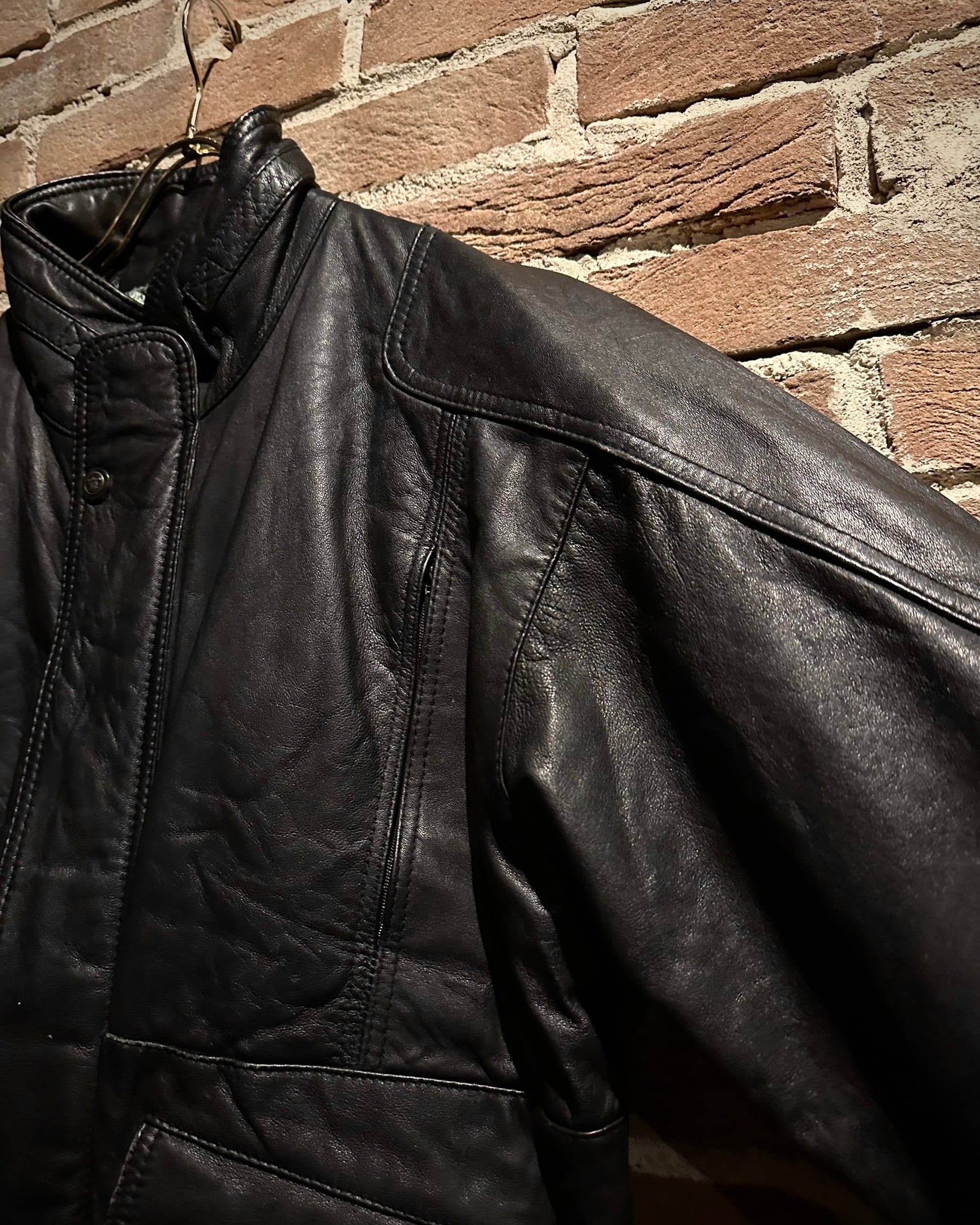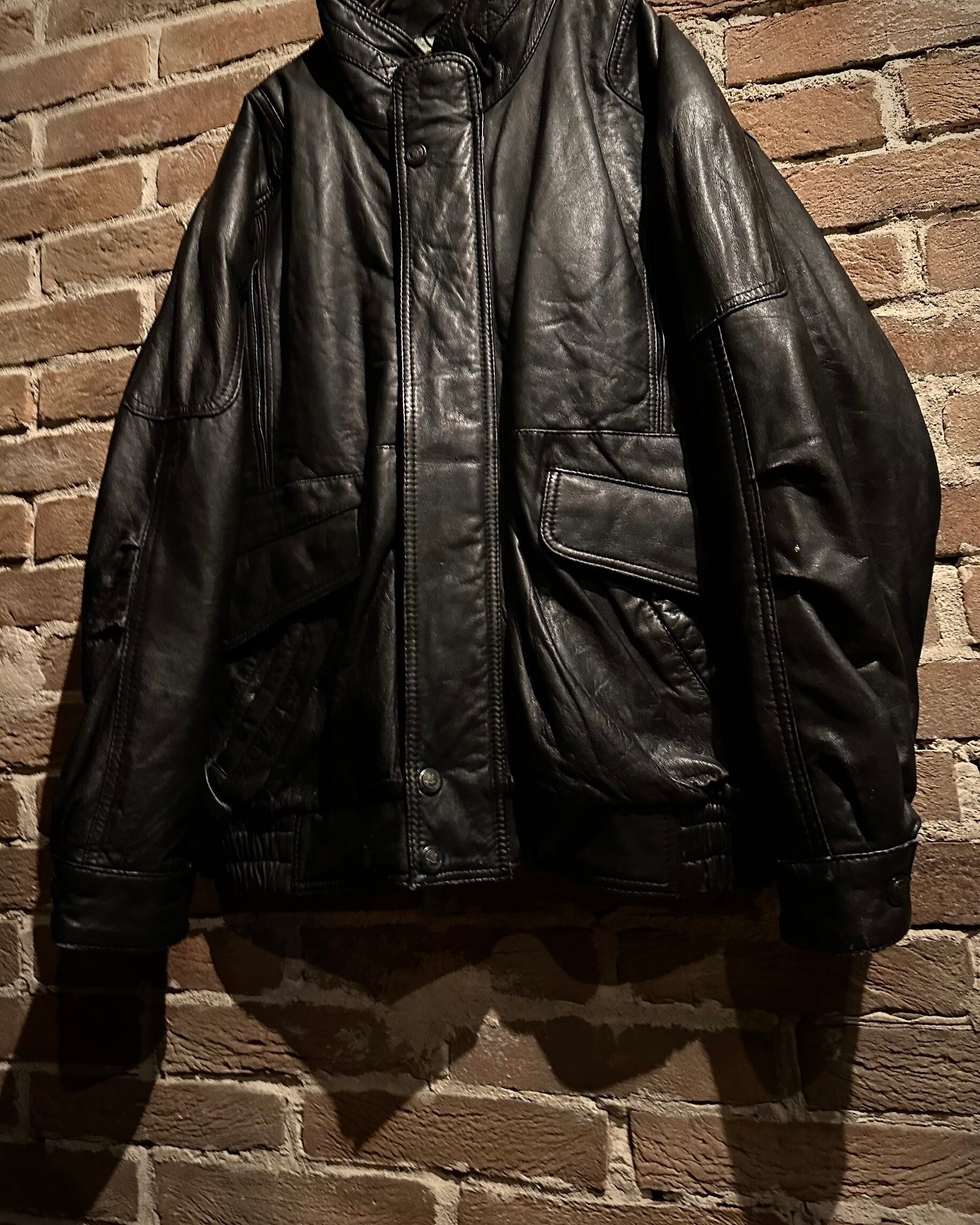 袖・身頃ともに立体的なパターンで構成され、レザー特有のハリを活かした丸みのあるシルエット。裾と袖口はリブ仕様で、着用時のフォルムも抜群です。