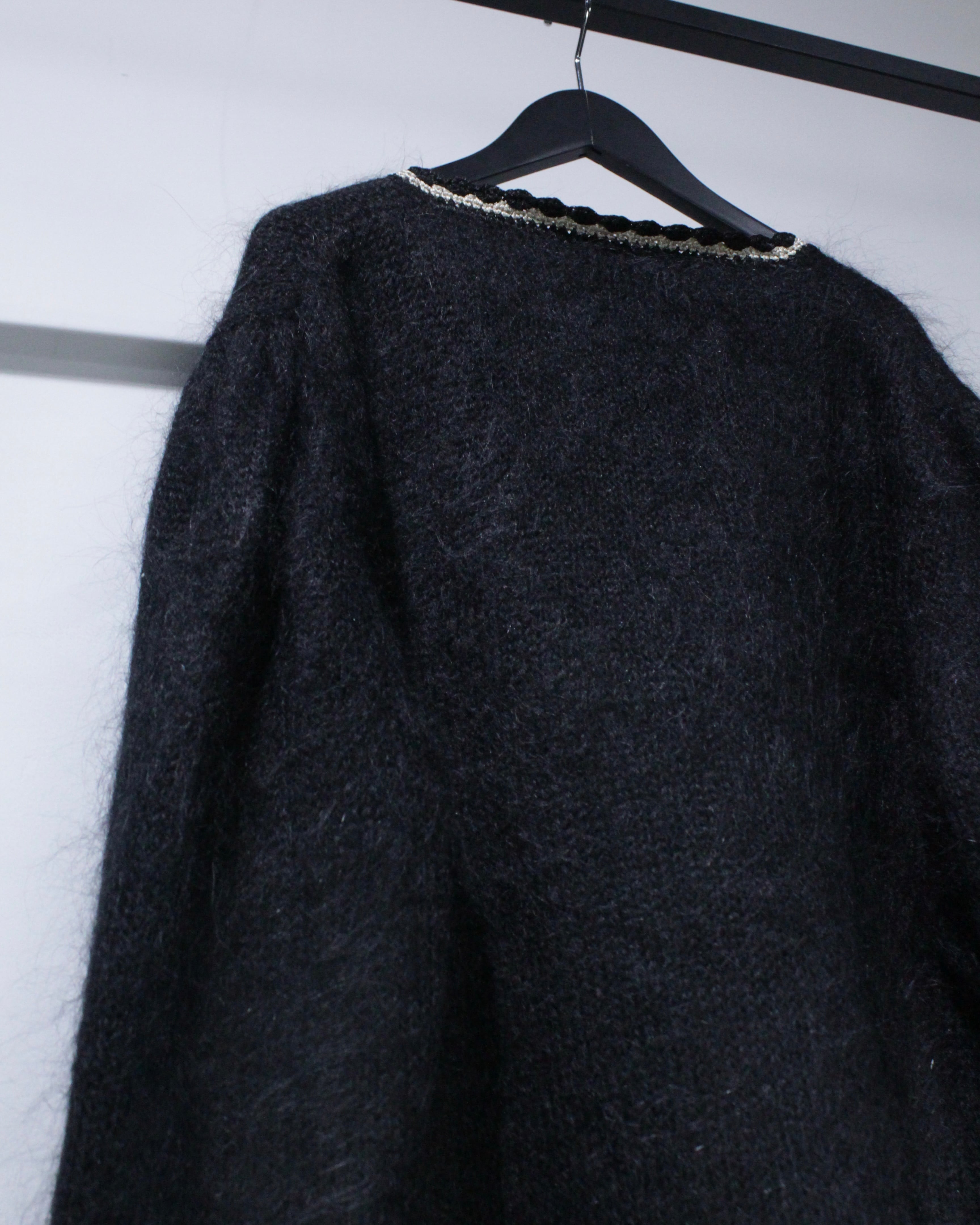 毛足の長いモヘア混素材を使用した、存在感あるニットジャケット。