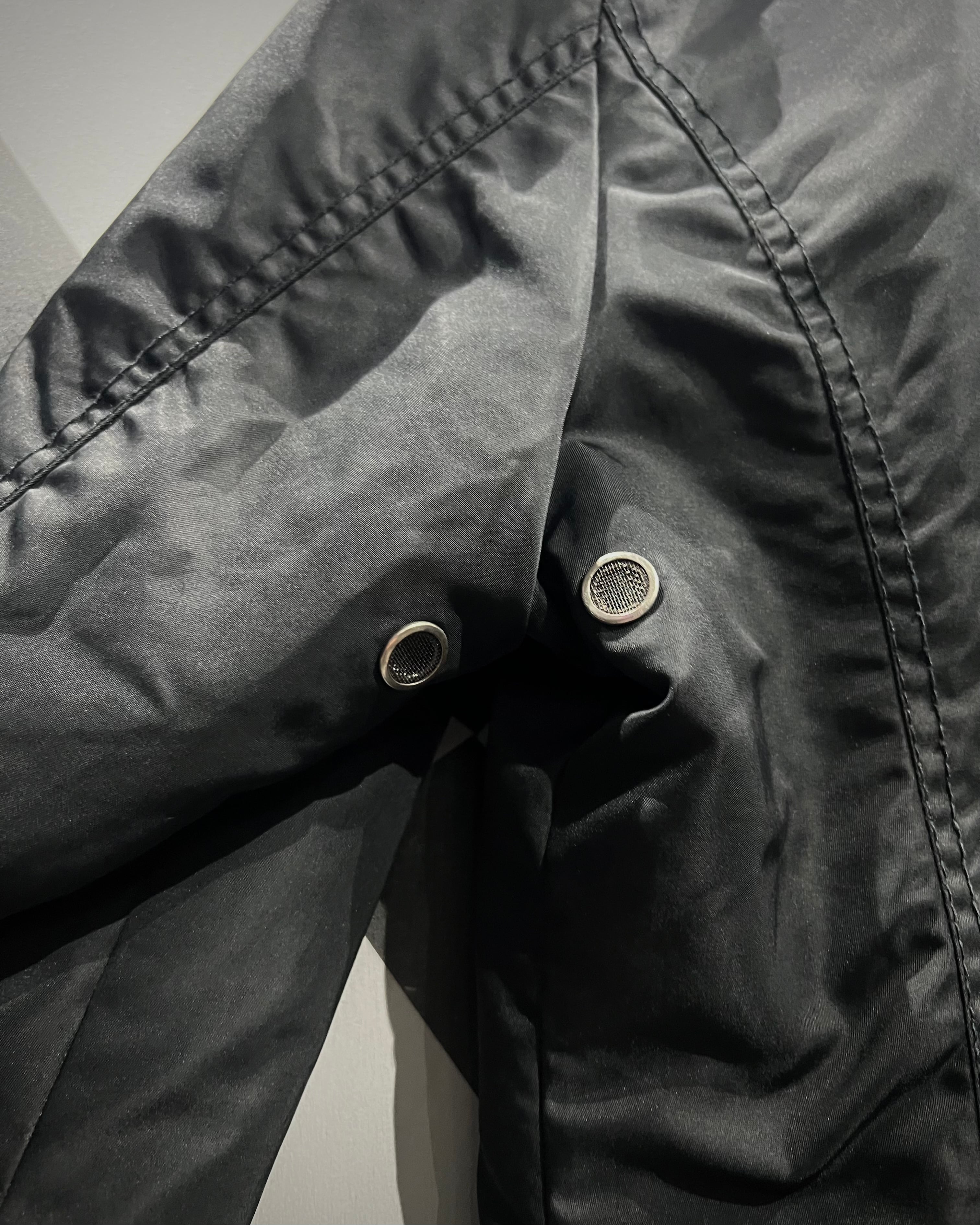 スタンドカラーには収納式フードを備え、脇下にはベンチレーションを搭載。実用性を意識したディテールが随所に見られ、デイリーに着用しやすく、軽量ながらも風をしっかり遮ってくれるためアウターとしての信頼感も◎
