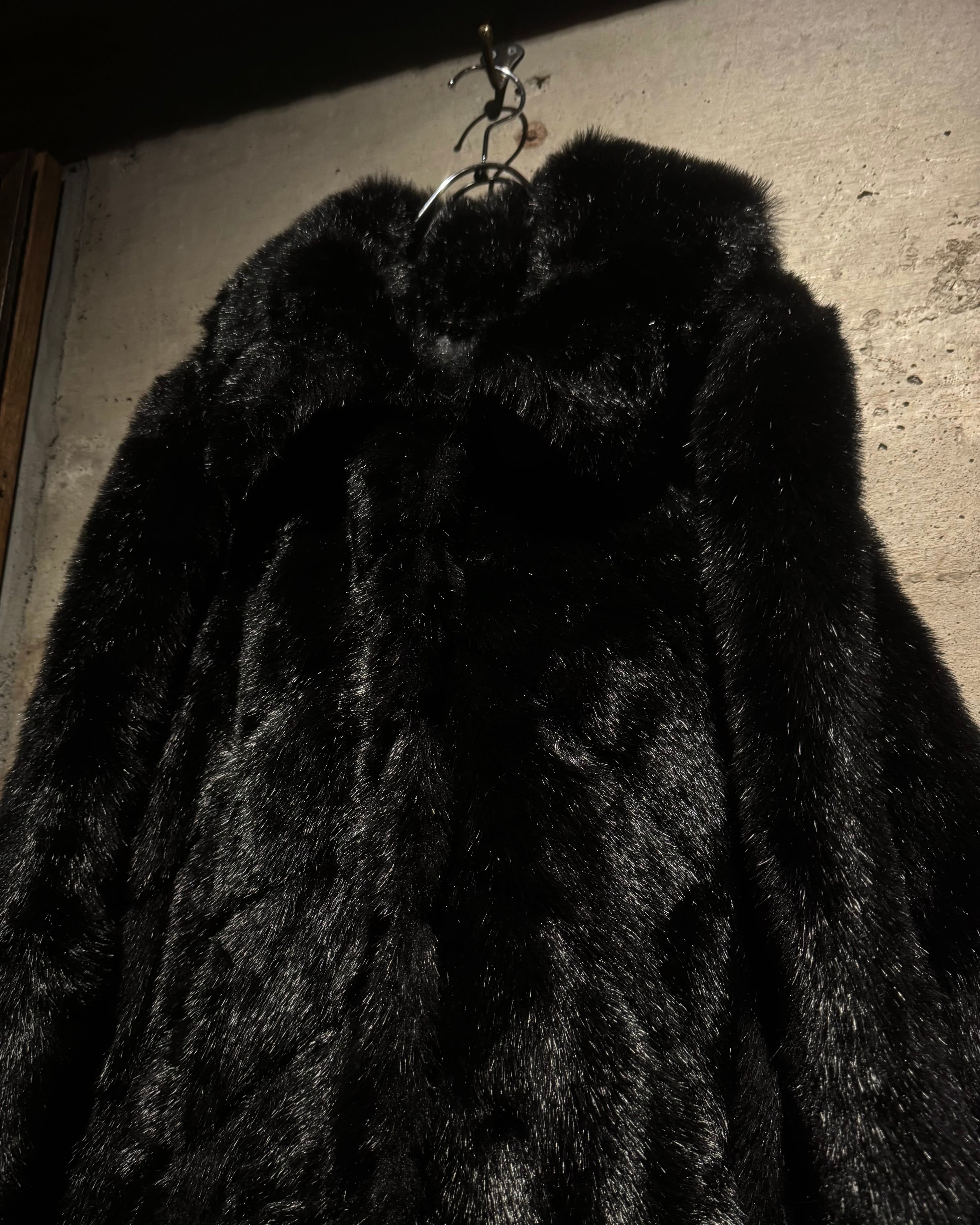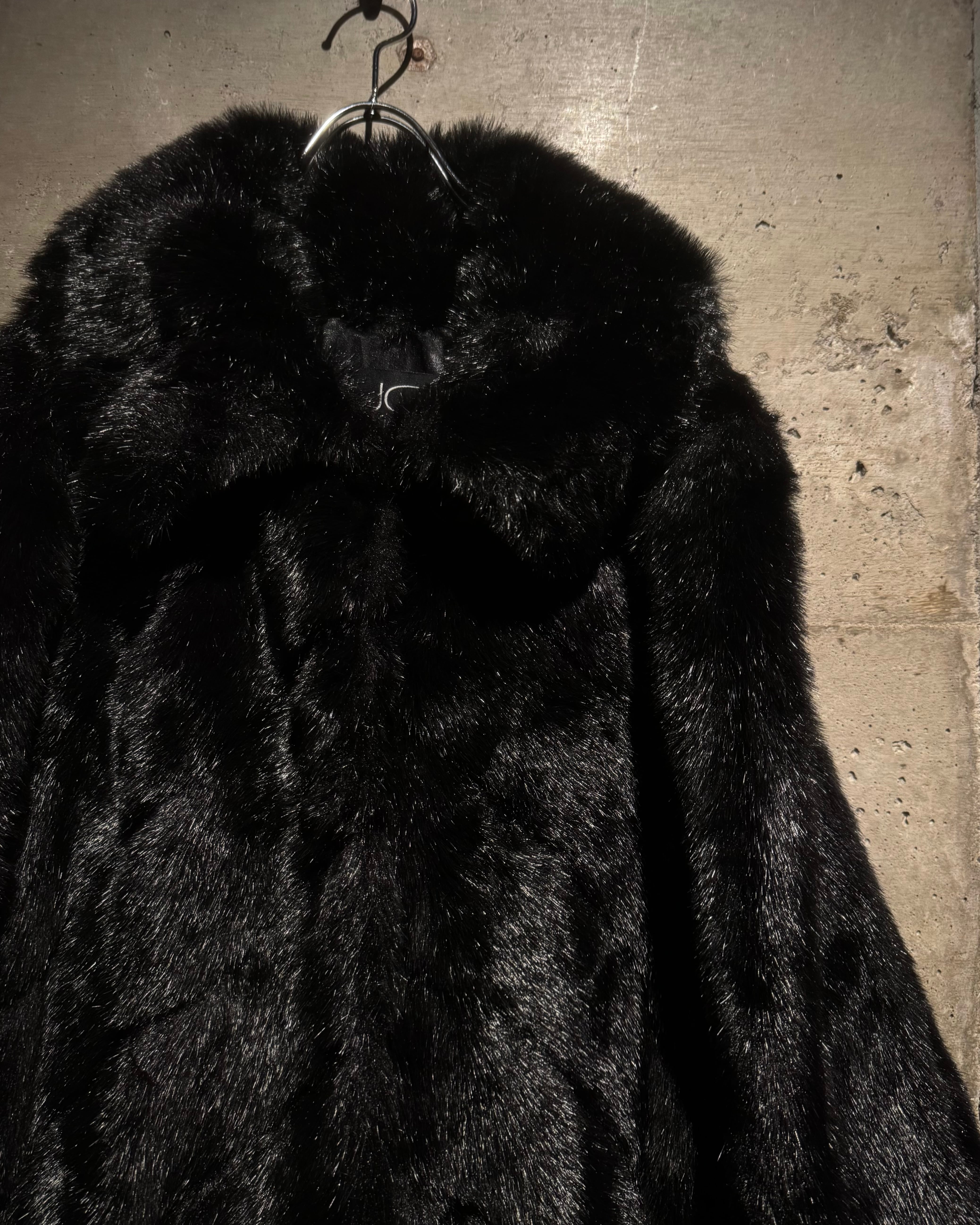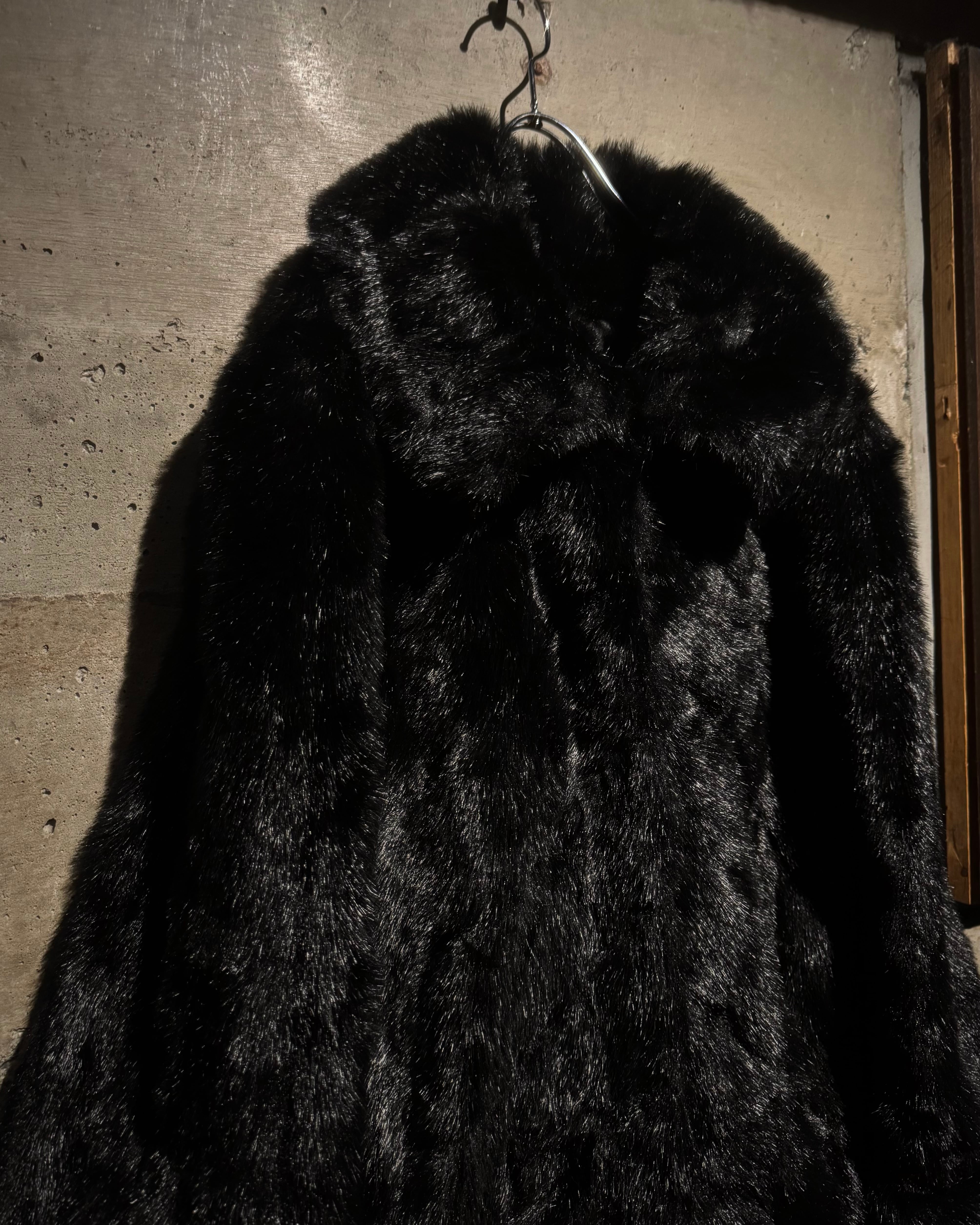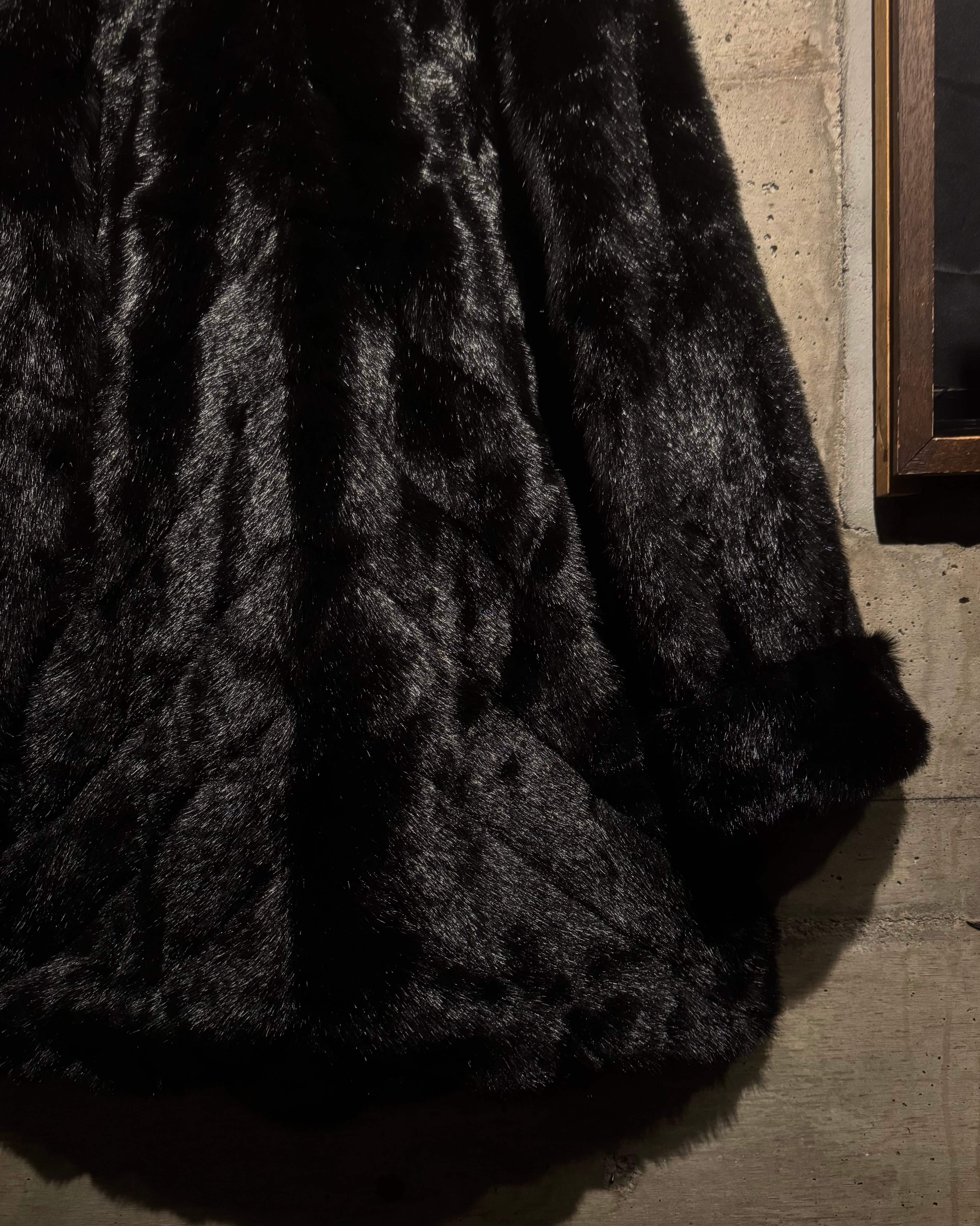 毛足の長いシャギーファーを全面に使用したボディは、光の当たり方によって表情が変わる立体的な質感。ブラックベースながら奥行きがあり、重たく見えないのがこの手のファーでは非常に珍しいポイントです。