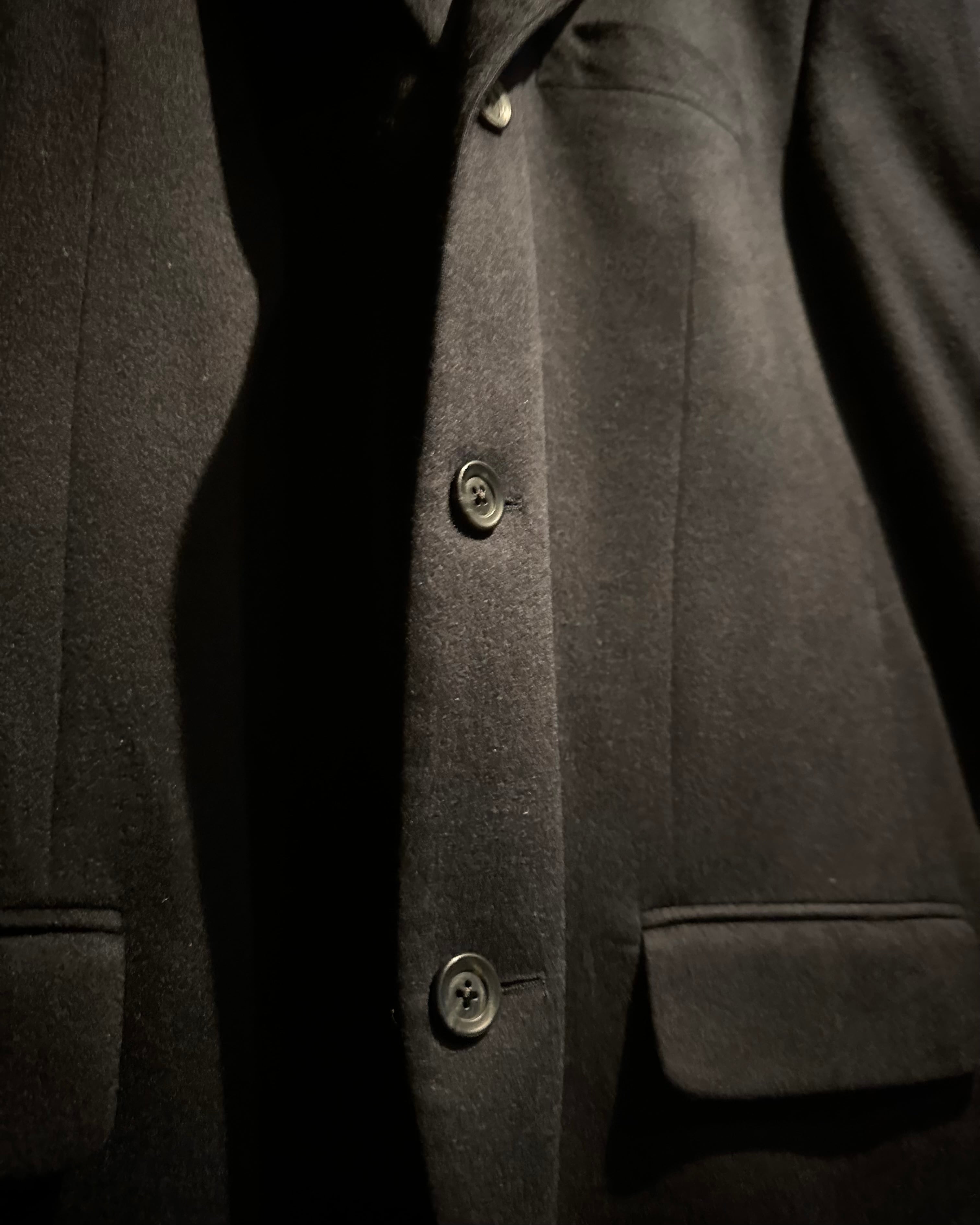 ボディは無駄を削ぎ落としたブラックで、クラシックな3ボタン仕様に、程よく力の抜けたシルエットで、肩肘張らず着られるバランスに仕上げられています。