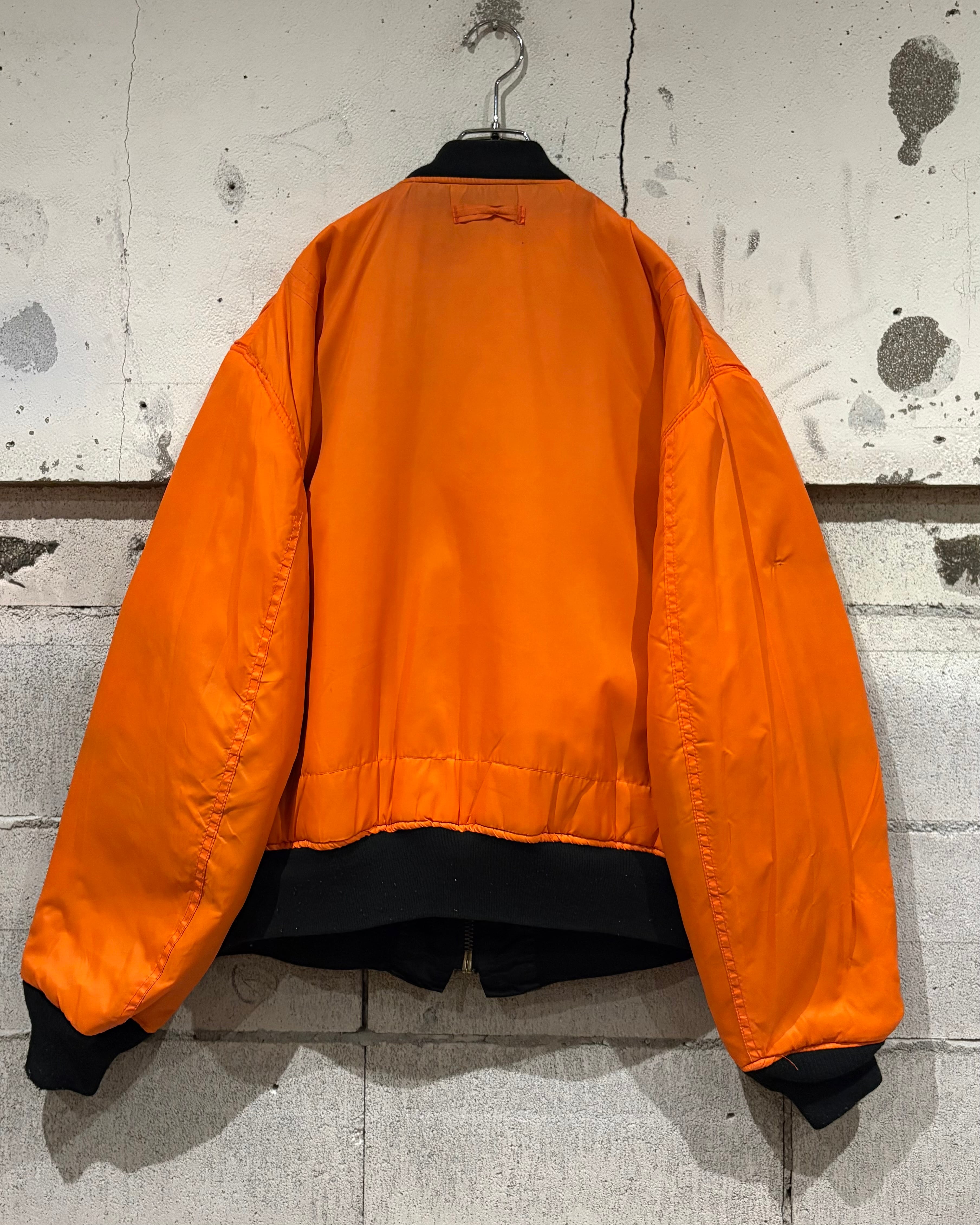 MA-1らしいリバーシブル仕様で、ガバッと裏返すとビビットなオレンジカラーとして着用していただけます。