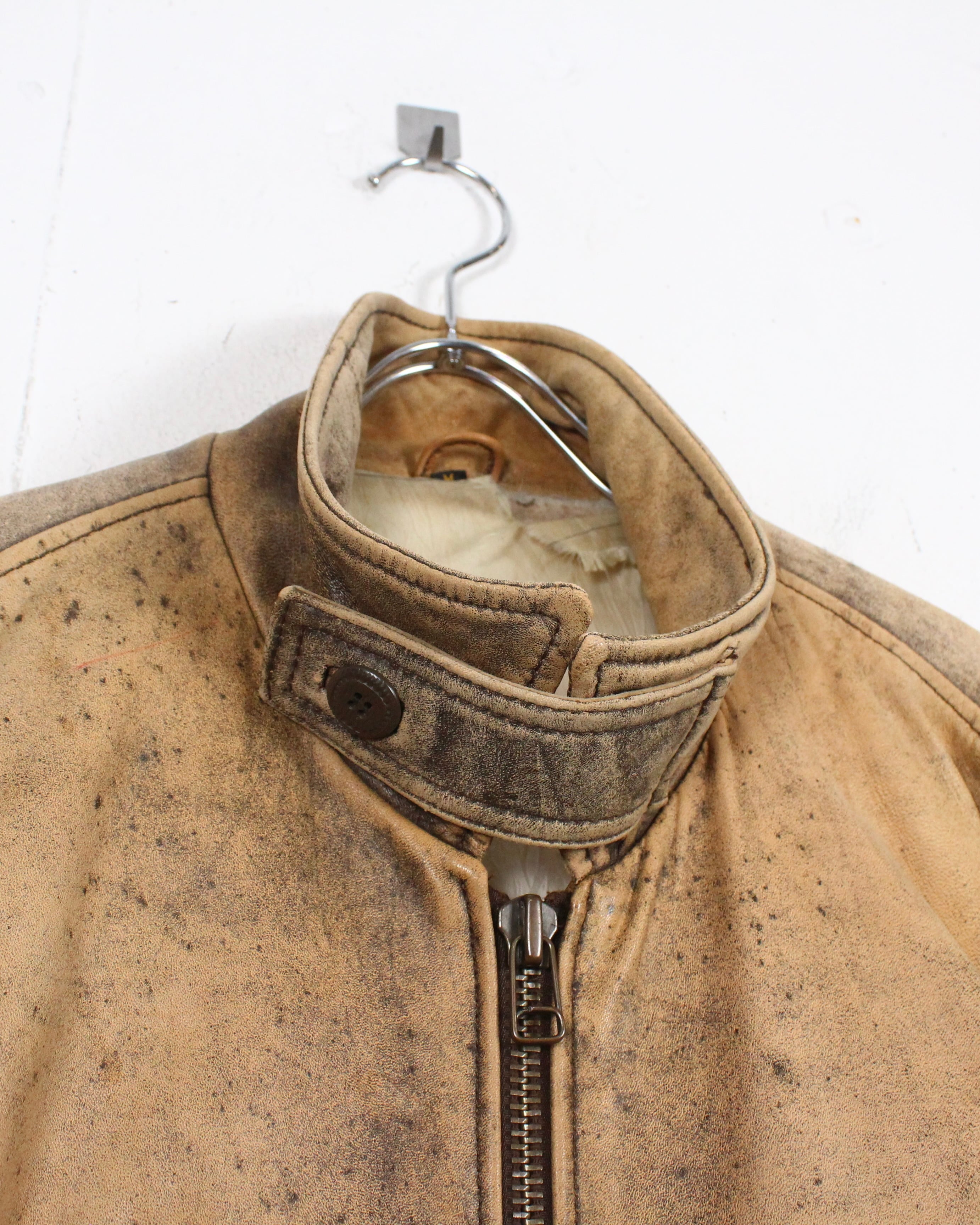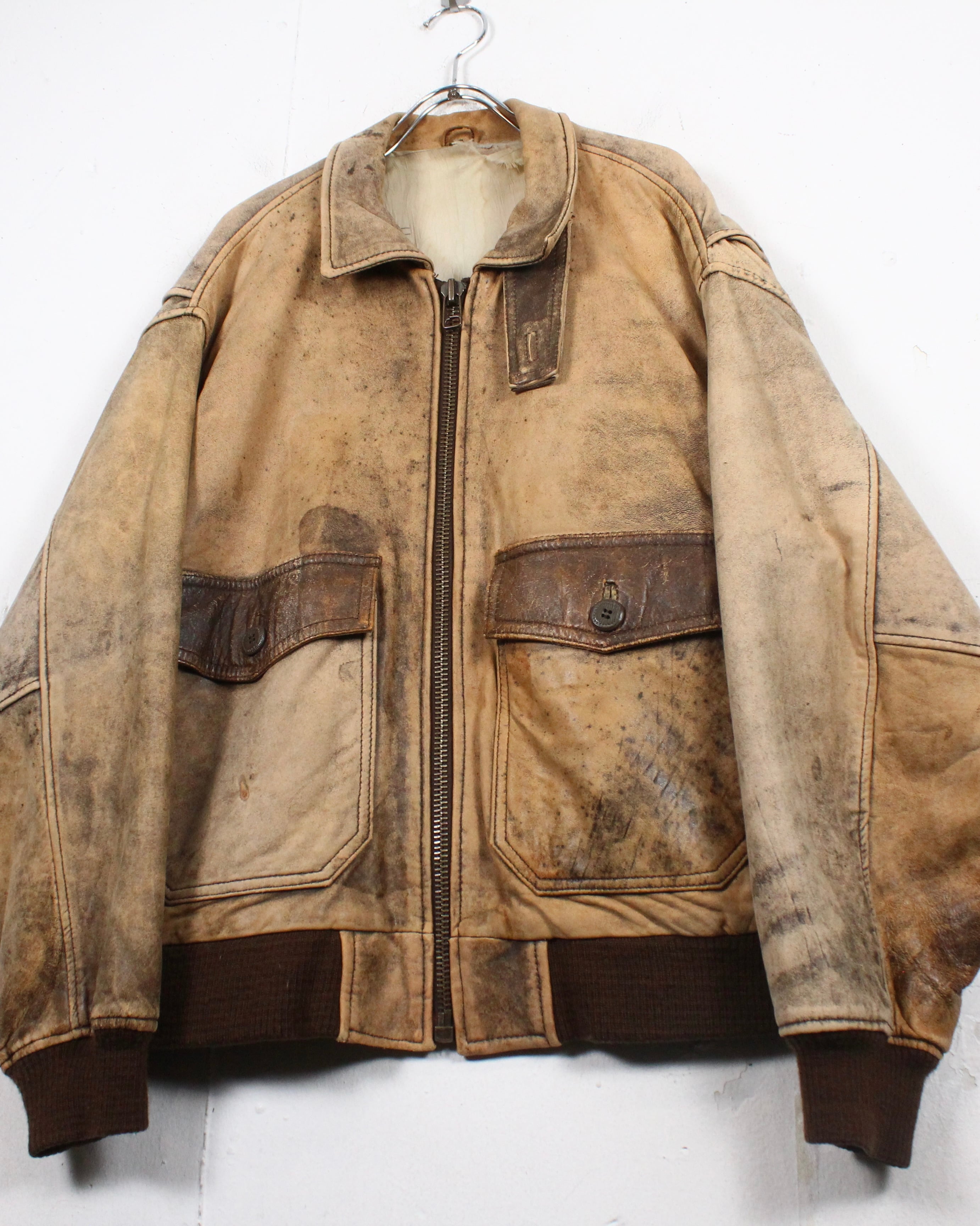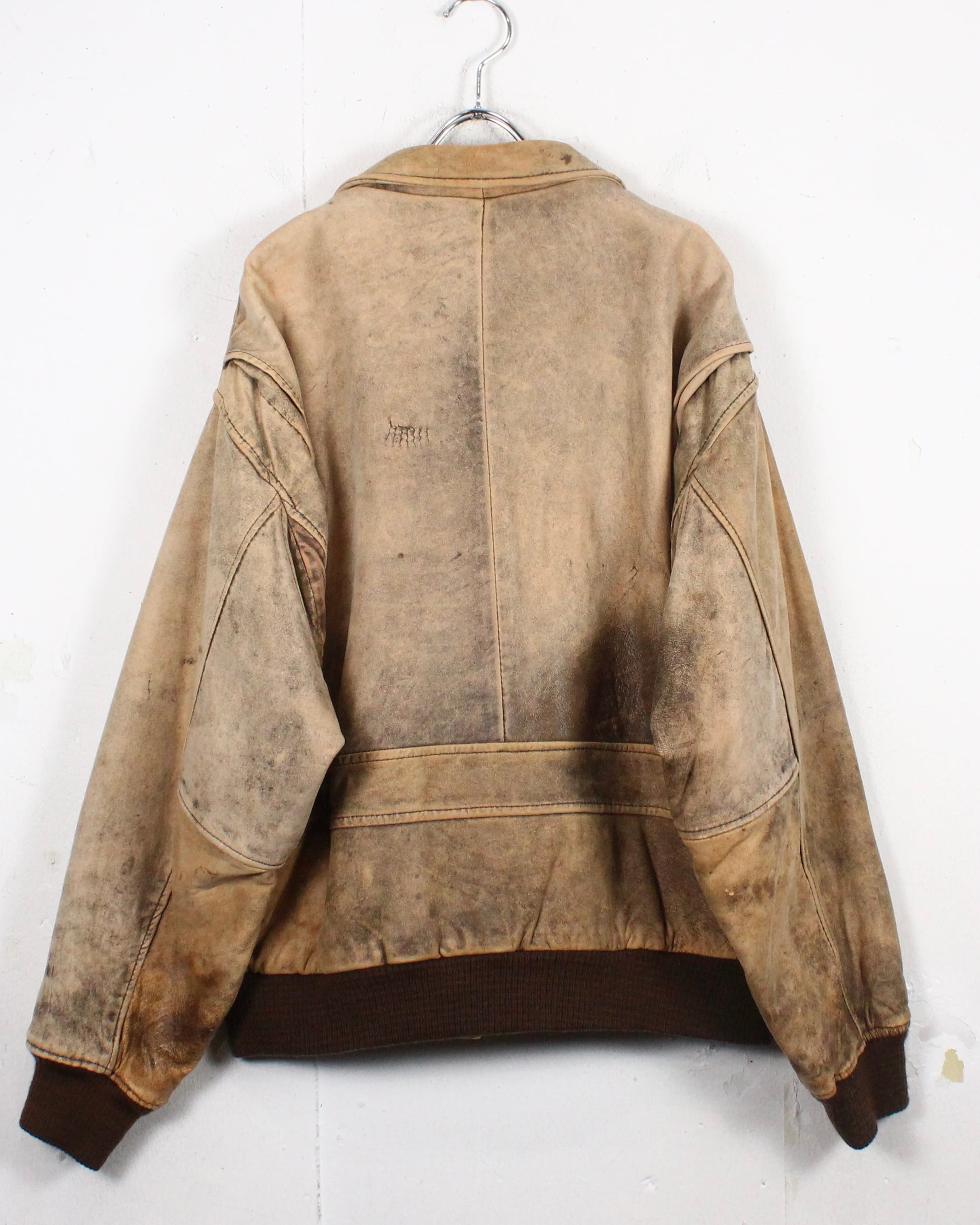 しっとりとした質感のブラウンレザーを用い、フライトジャケットの代表格であるA-2型に落とし込まれたヴィンテージレザージャケット。