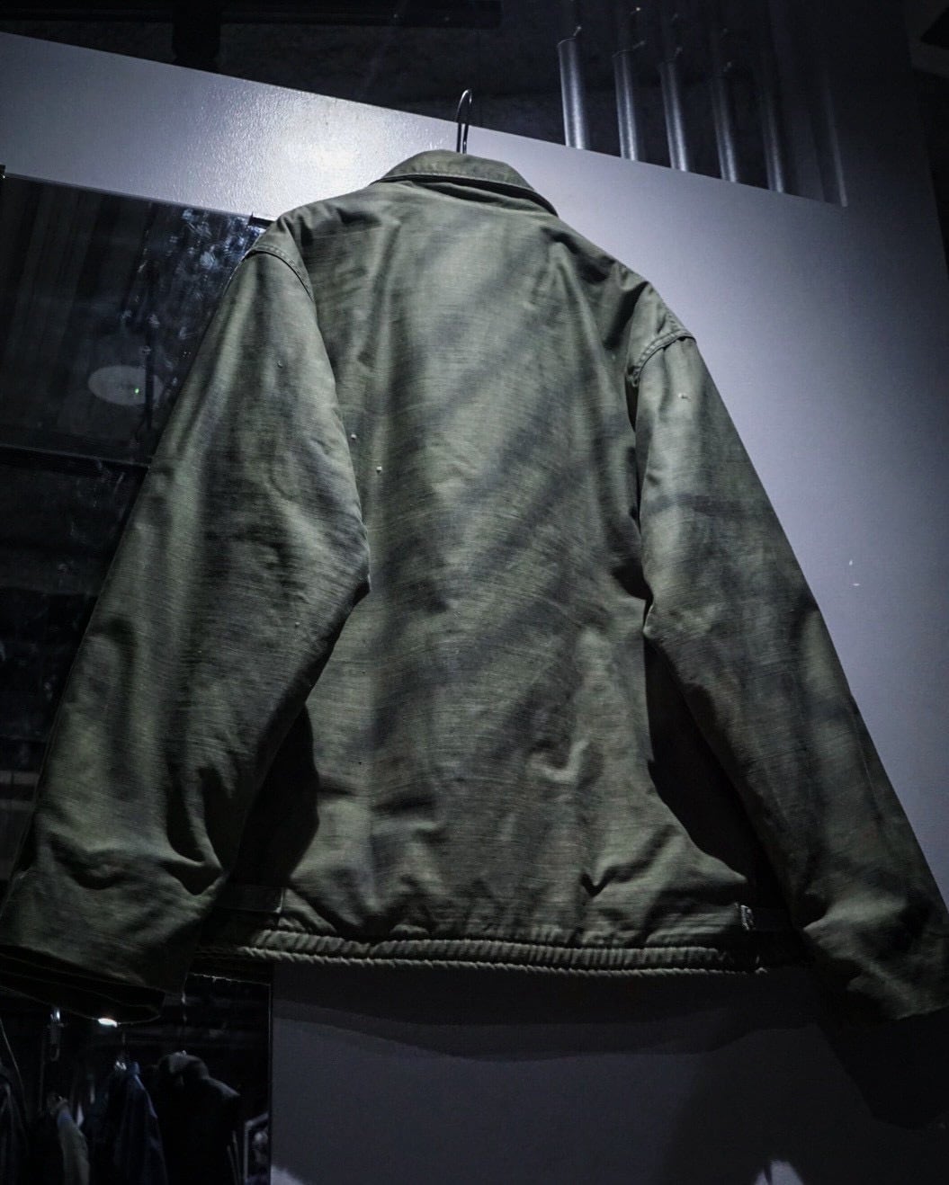 大ぶりなボタン、太めのメタルジップ、裾のアジャスターなど、A-2ならではのディテールも健在。使い込まれたことで生まれたフェードや色ムラが、無機質になりすぎない表情を与えており、ヴィンテージならではの雰囲気もムンムン。