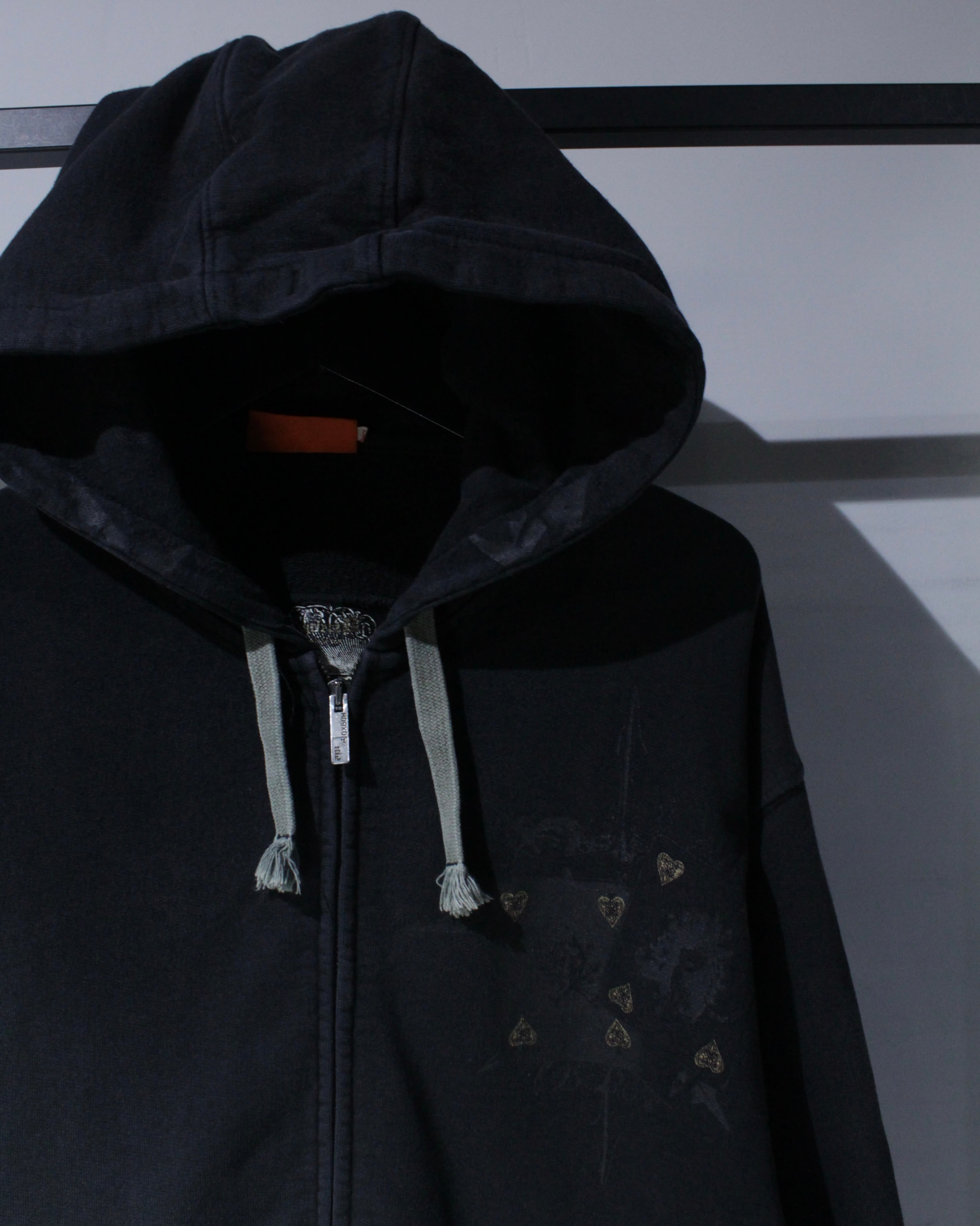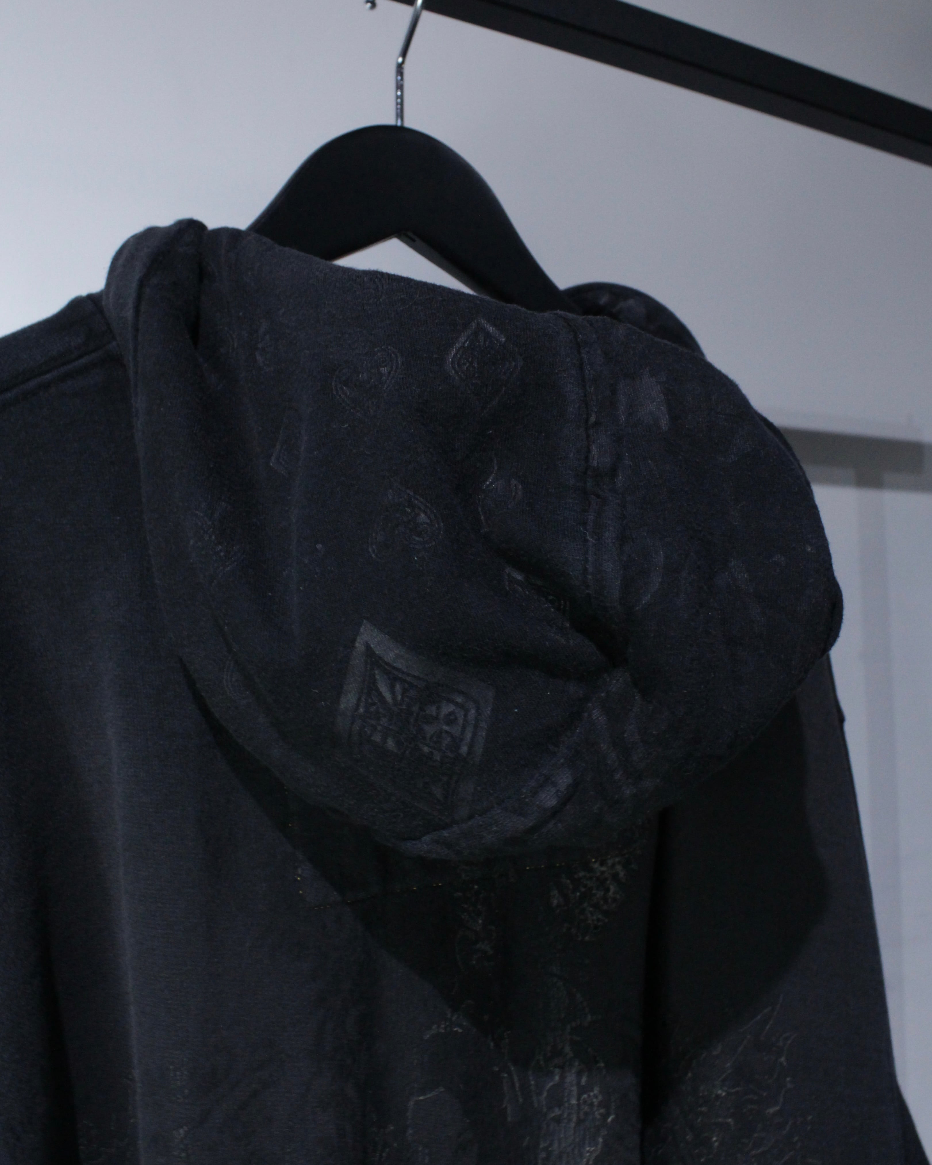 フロントはジップ仕様、程よくボリュームのあるフードと太めのドローコードがラフなムードを演出。ゆとりのあるサイジングで、アウターとして、今時期はインナー使いで活躍必至かと。
