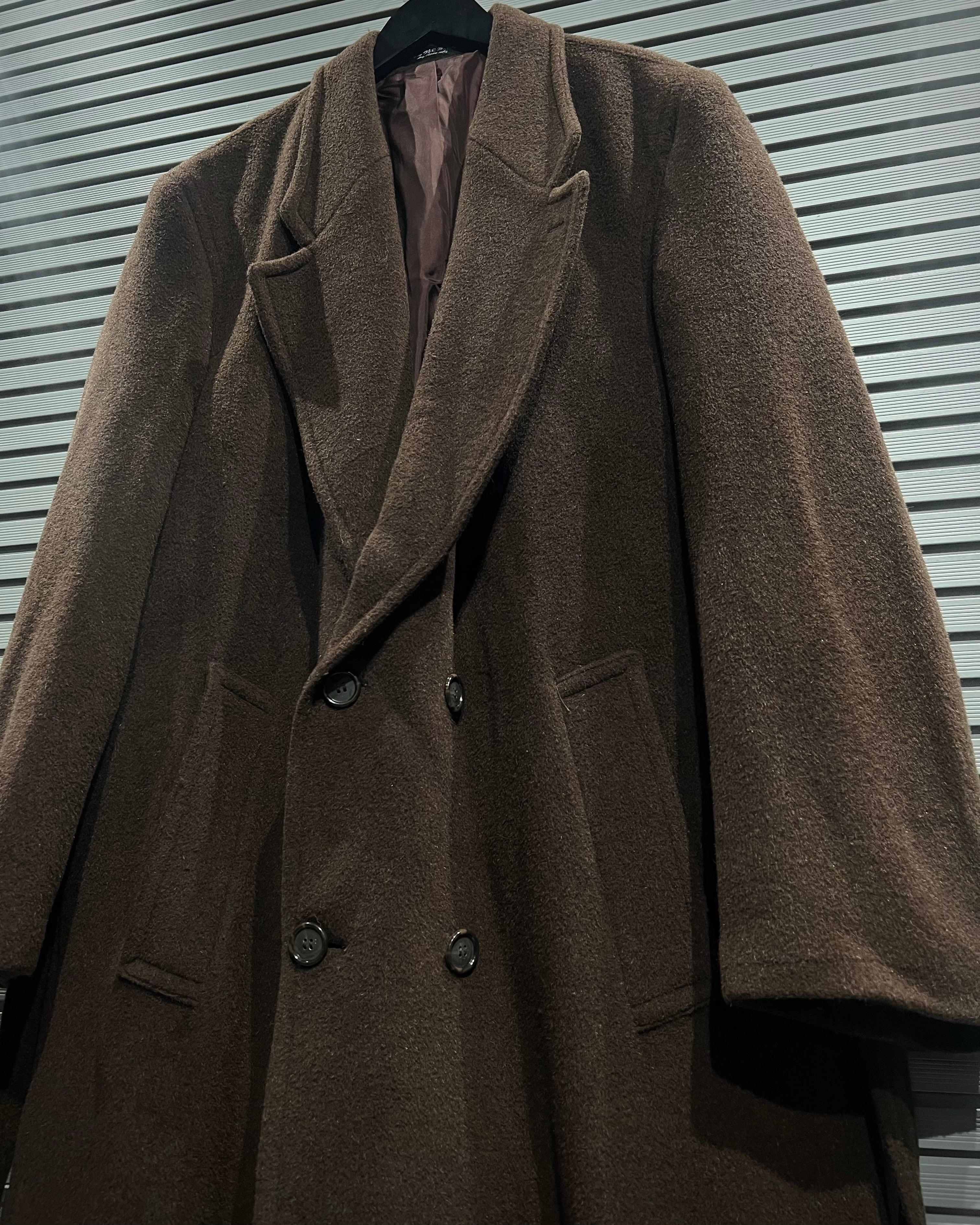 市場でもなかなか出会えない、ブラウン×ダブルブレストのウールコート。スタイルを選ばず、それでいてしっかりと存在感を残す上質な1着です。