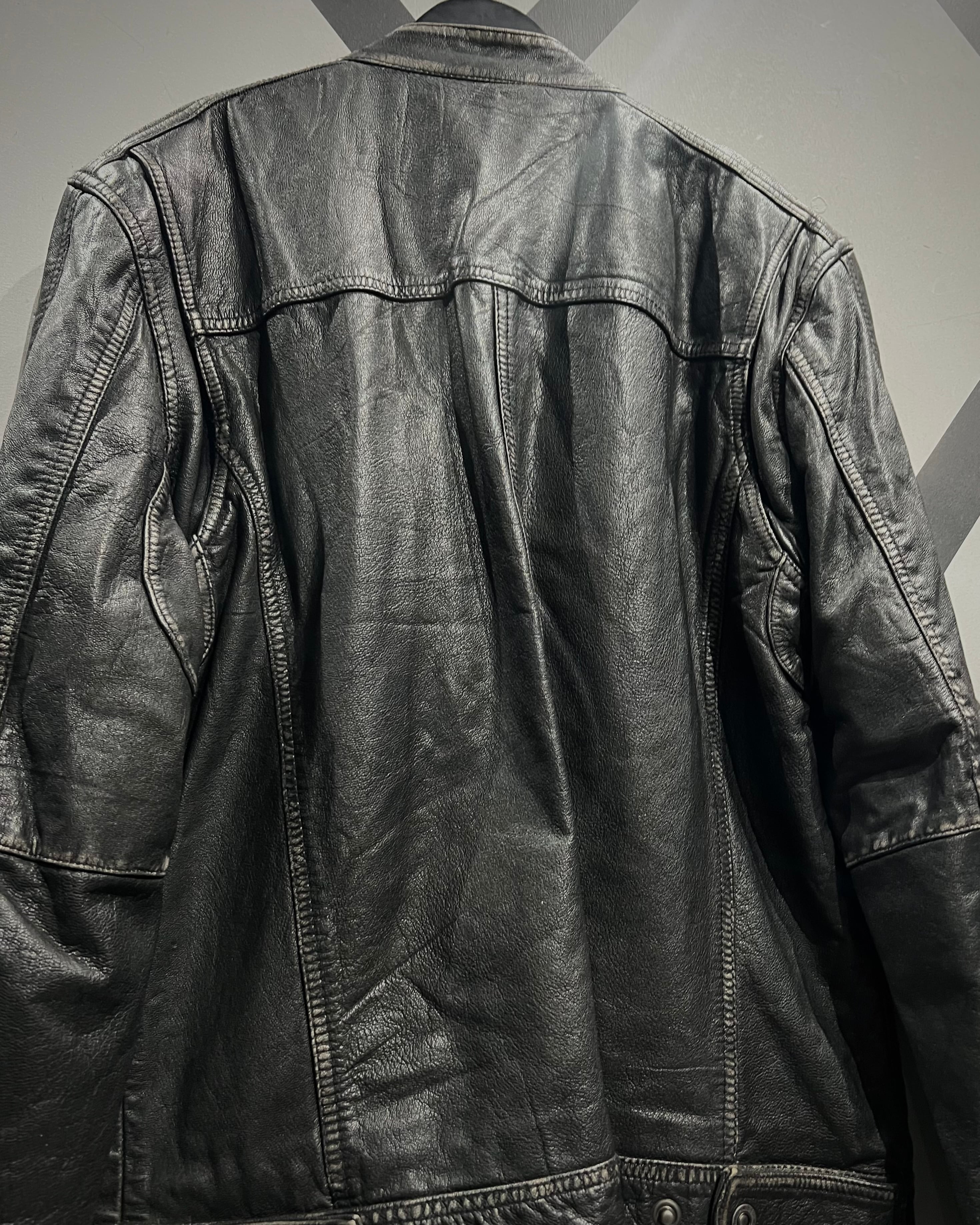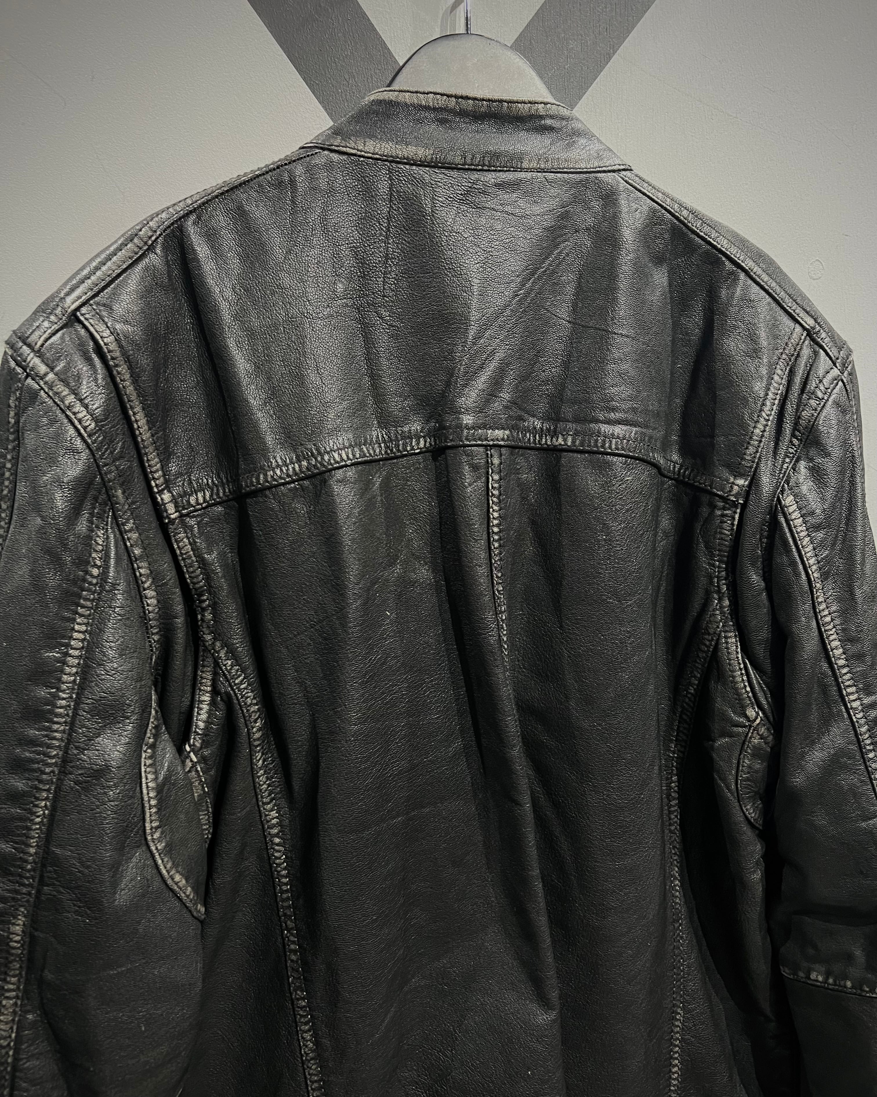 シェルにはゴートスキンを使用。着込まれることで刻まれたシワや擦れが、均一ではない奥行きのあるエイジングとして表情に現れ、ブラックレザーながらも単調にならない存在感を放っています。