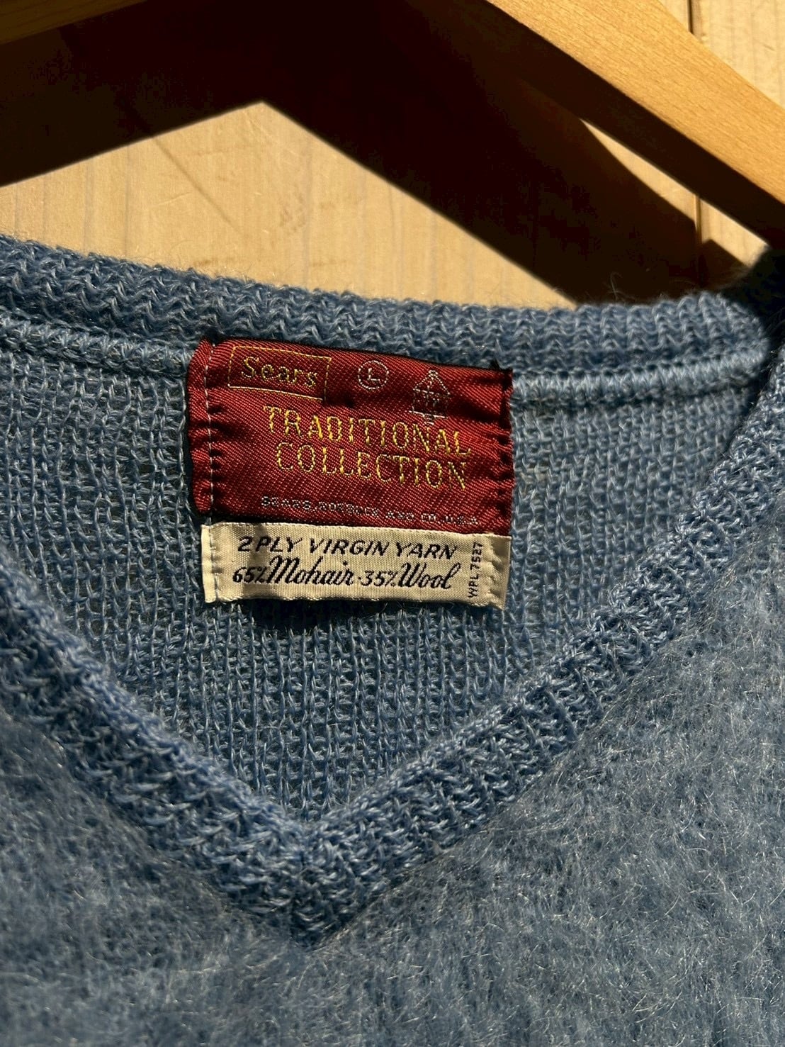 当時のSearsらしいクオリティで、しっかりとモヘアを含んだ毛足の長い素材感が印象的な1着。触れた瞬間に分かるふわりとした軽さと、奥行きのある起毛感は、ヴィンテージならではの表情です。
