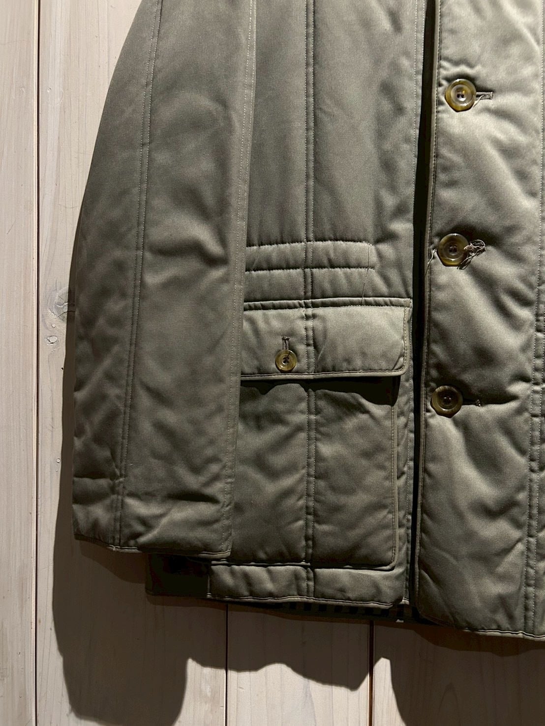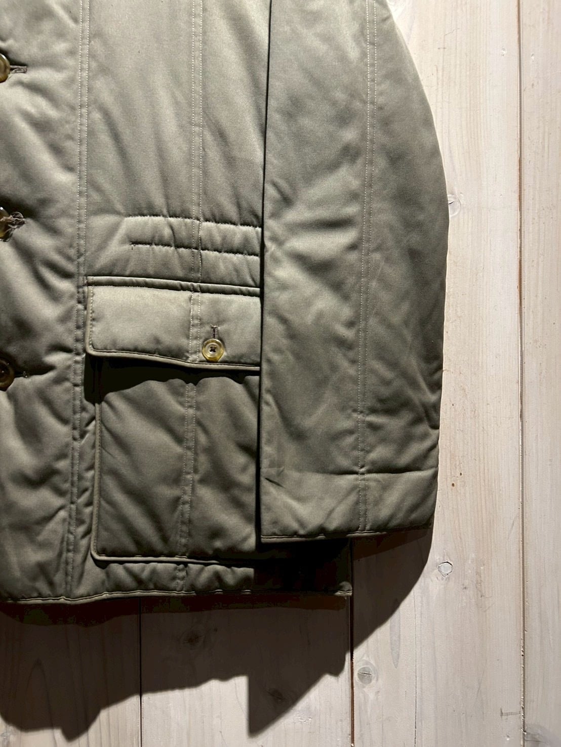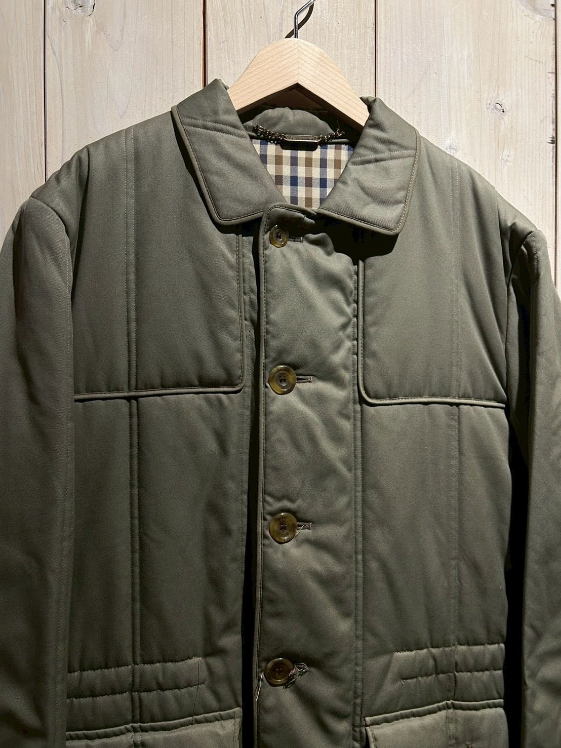 ガンパッチのような肩周りの立体感、大きめのフラップポケット、そして内側にはAquascutumを象徴するチェックライニングを採用。袖を通した瞬間に分かる英国ブランドらしい美意識が詰まったディテールで、見えない部分まで抜かりのない作りが素晴らしい、、、