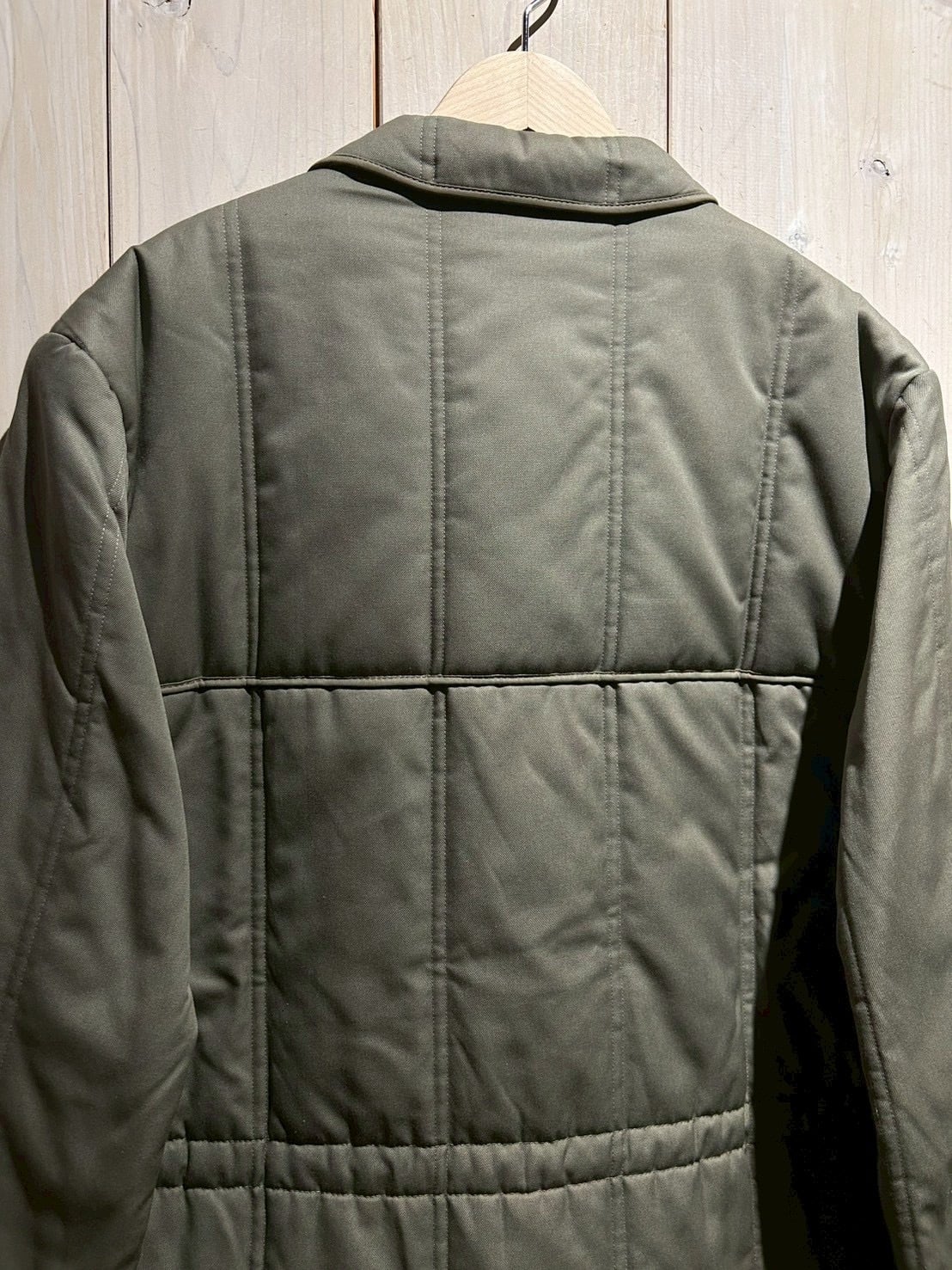 落ち着いたグレーで仕上げられたキルティングジャケット。中綿入りで、見た目以上にしっかりとした保温性を備えつつ、着用時は過度に重たくならない絶妙なバランスに仕上がっています。