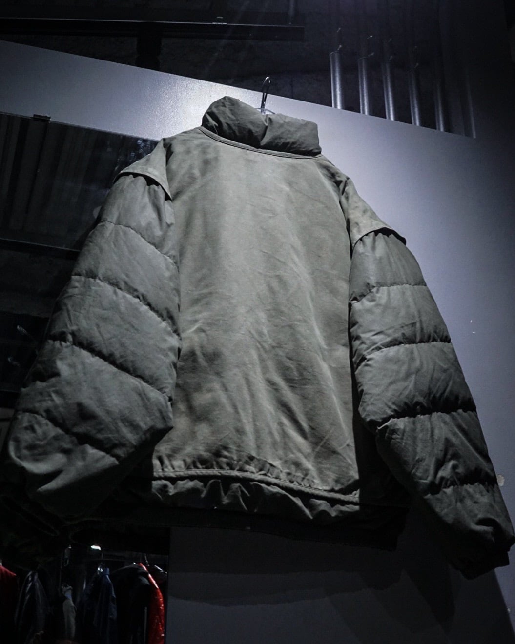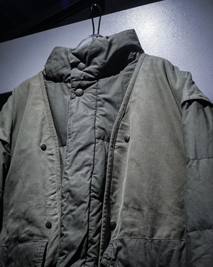 ベストを重ねたようなレイヤードデザインが目を引く、存在感のあるダウンジャケット。