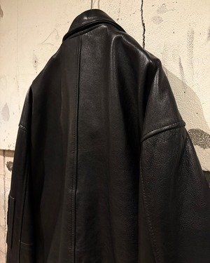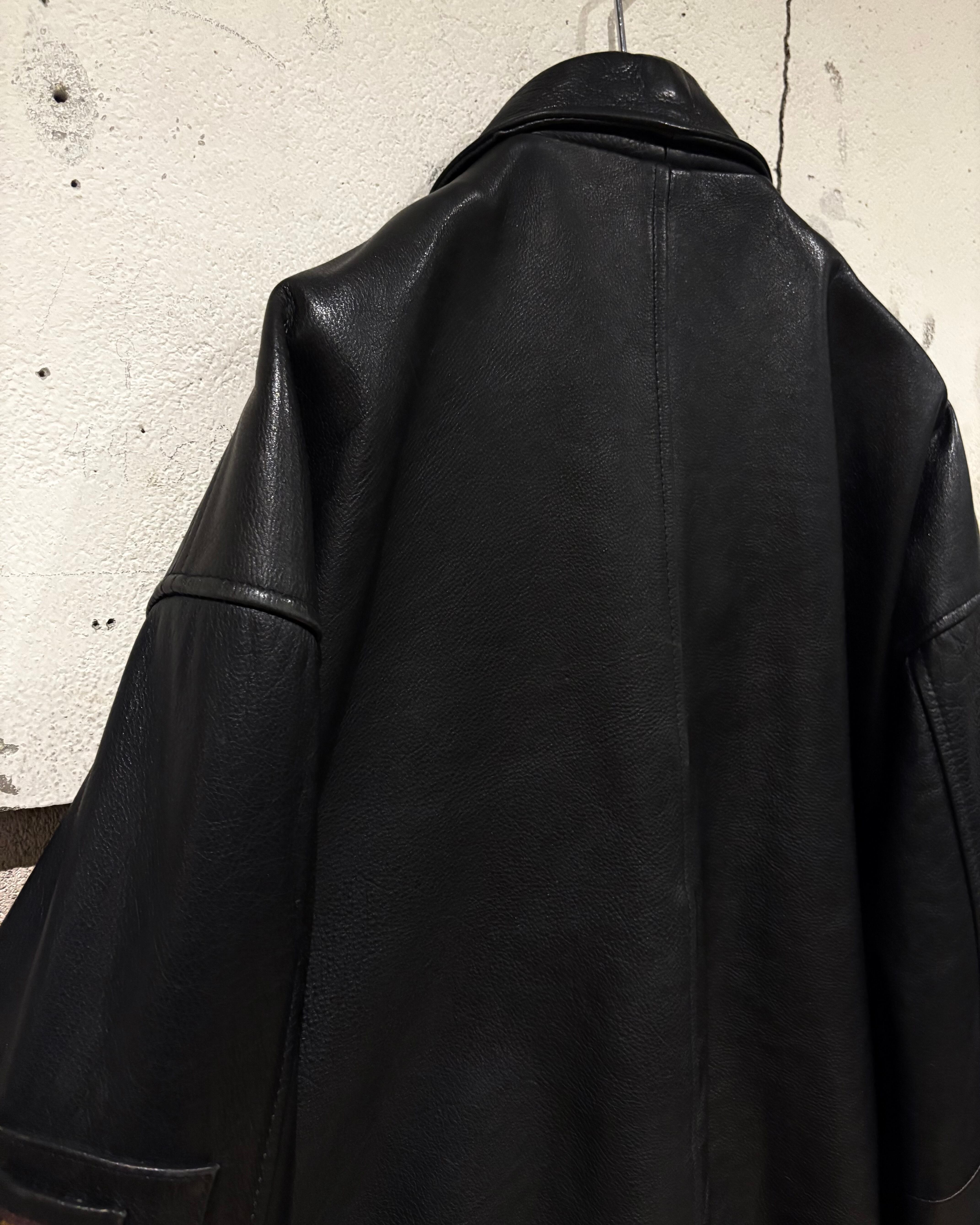 肉厚でしなやかなブラックレザーを贅沢に使用し、着込むほどに表情を深めていく素材感が魅力。鈍い光沢を帯びたレザーは無骨さの中にもどこか上品さを感じさせ、スタイリング全体を引き締めてくれるかと。