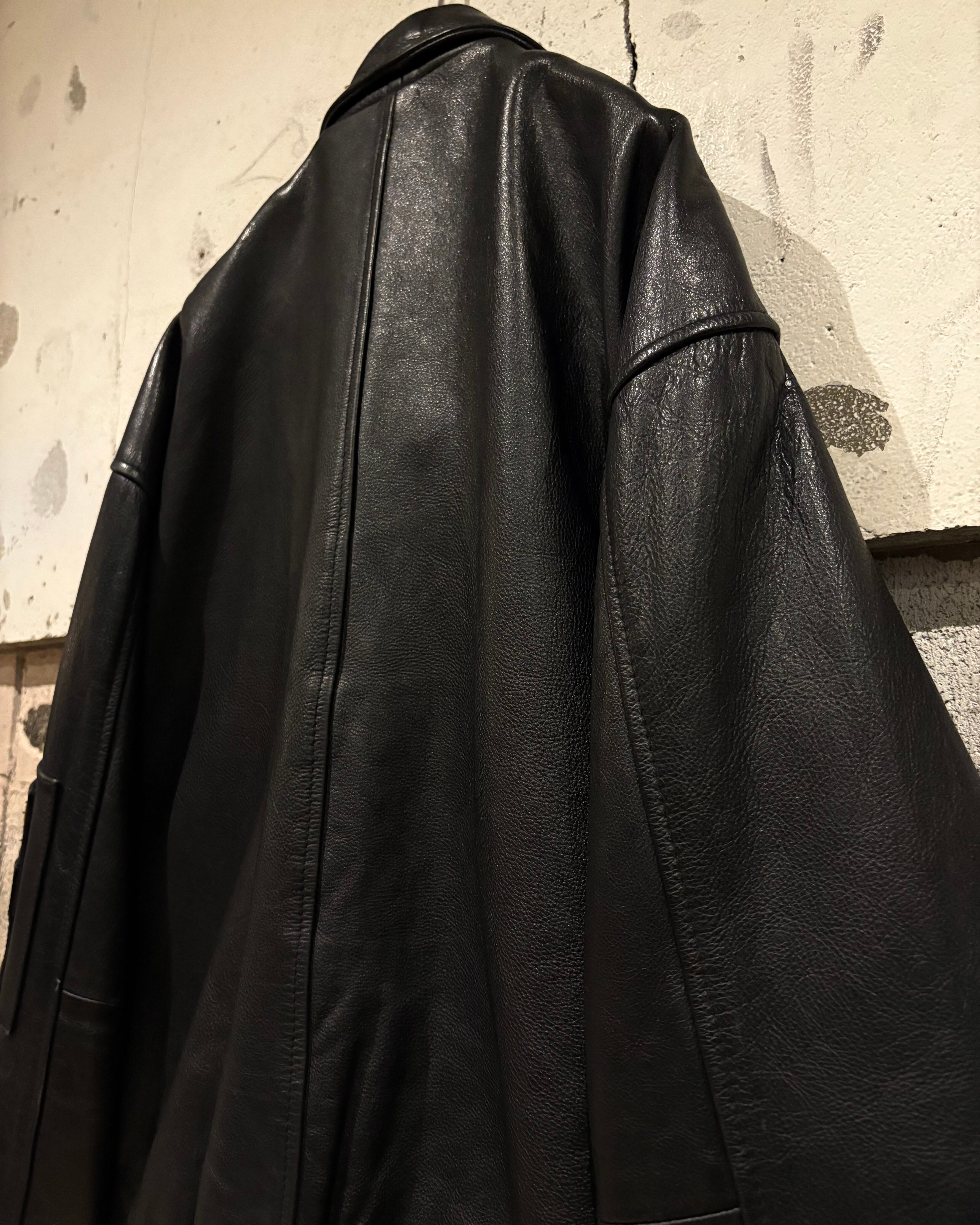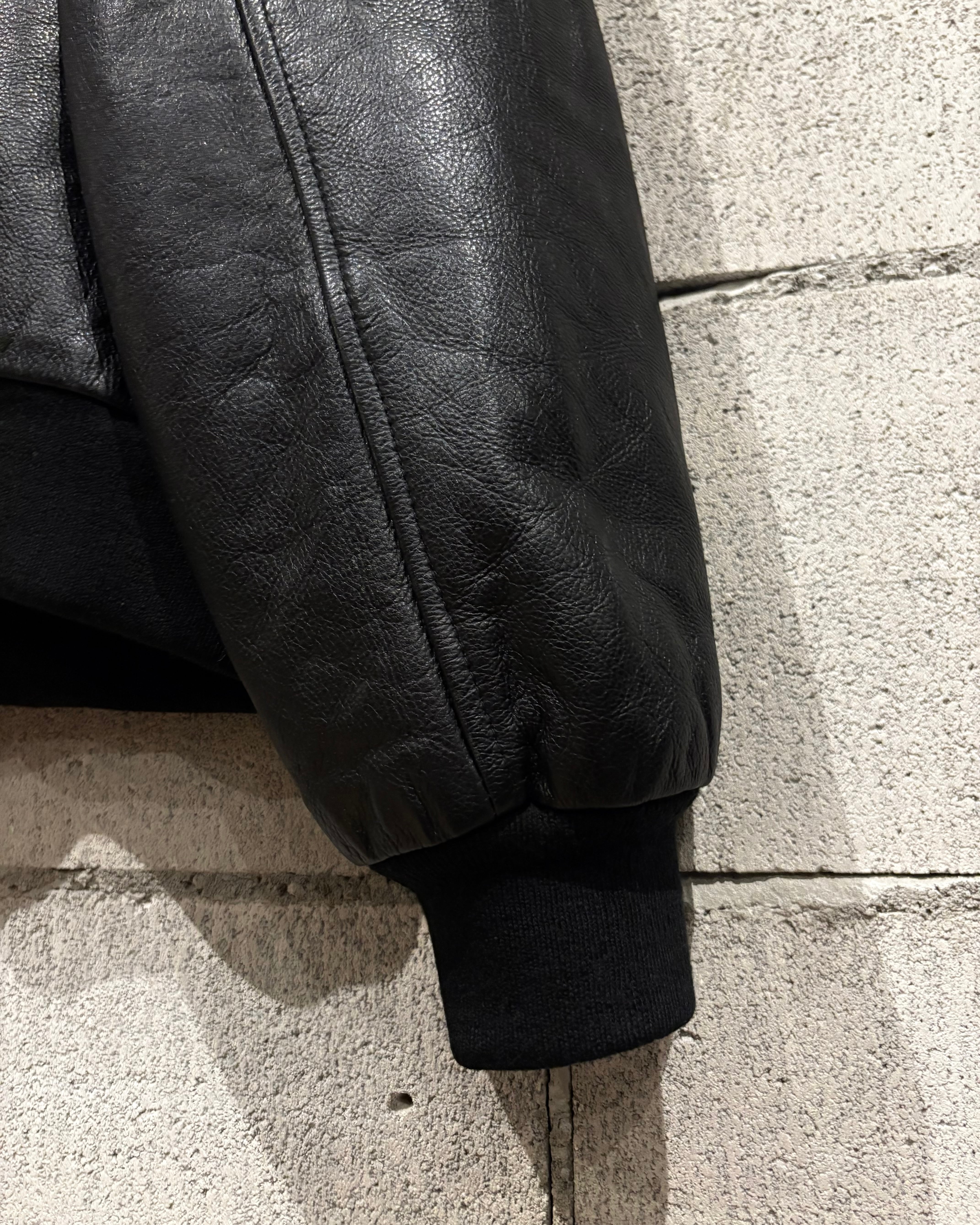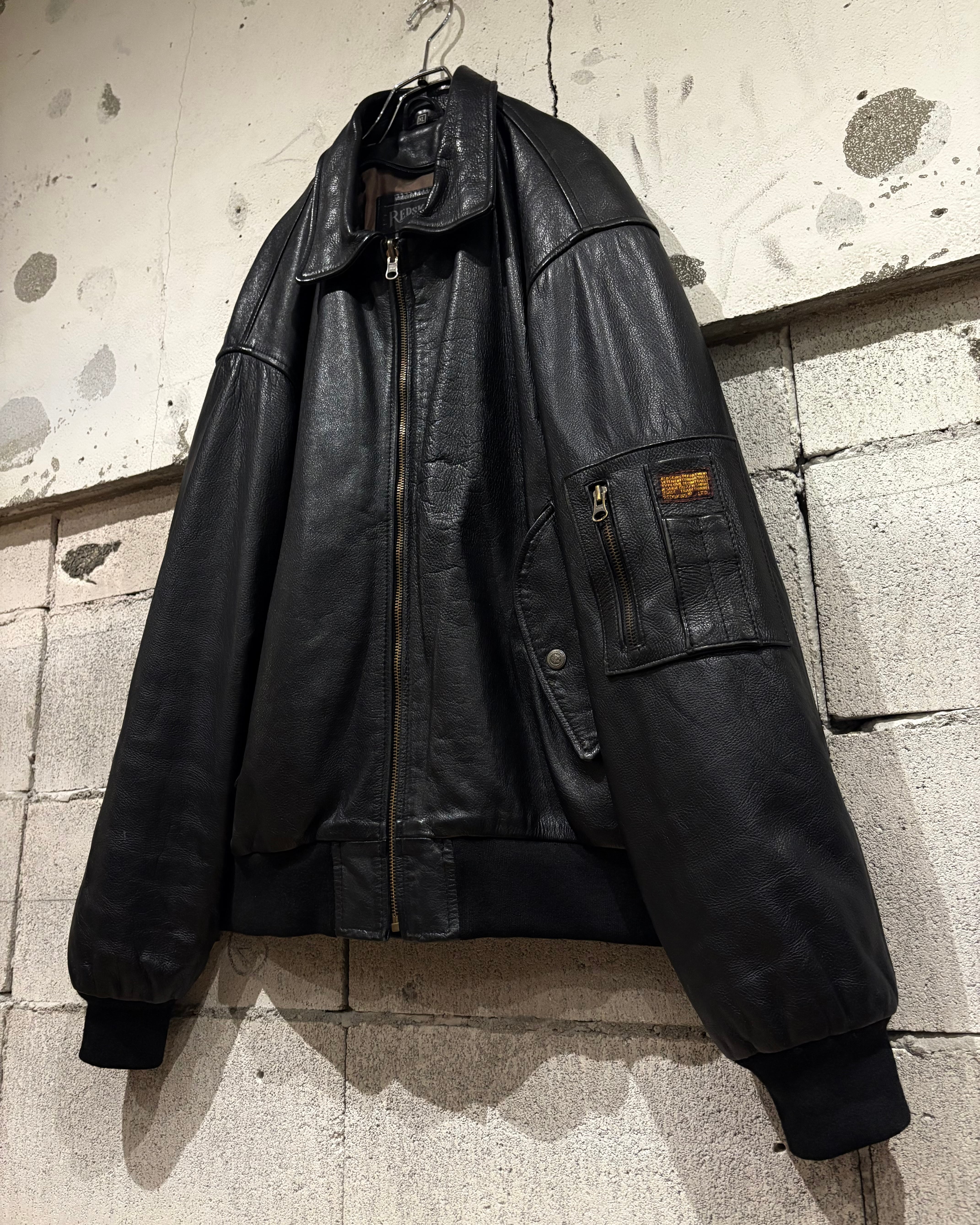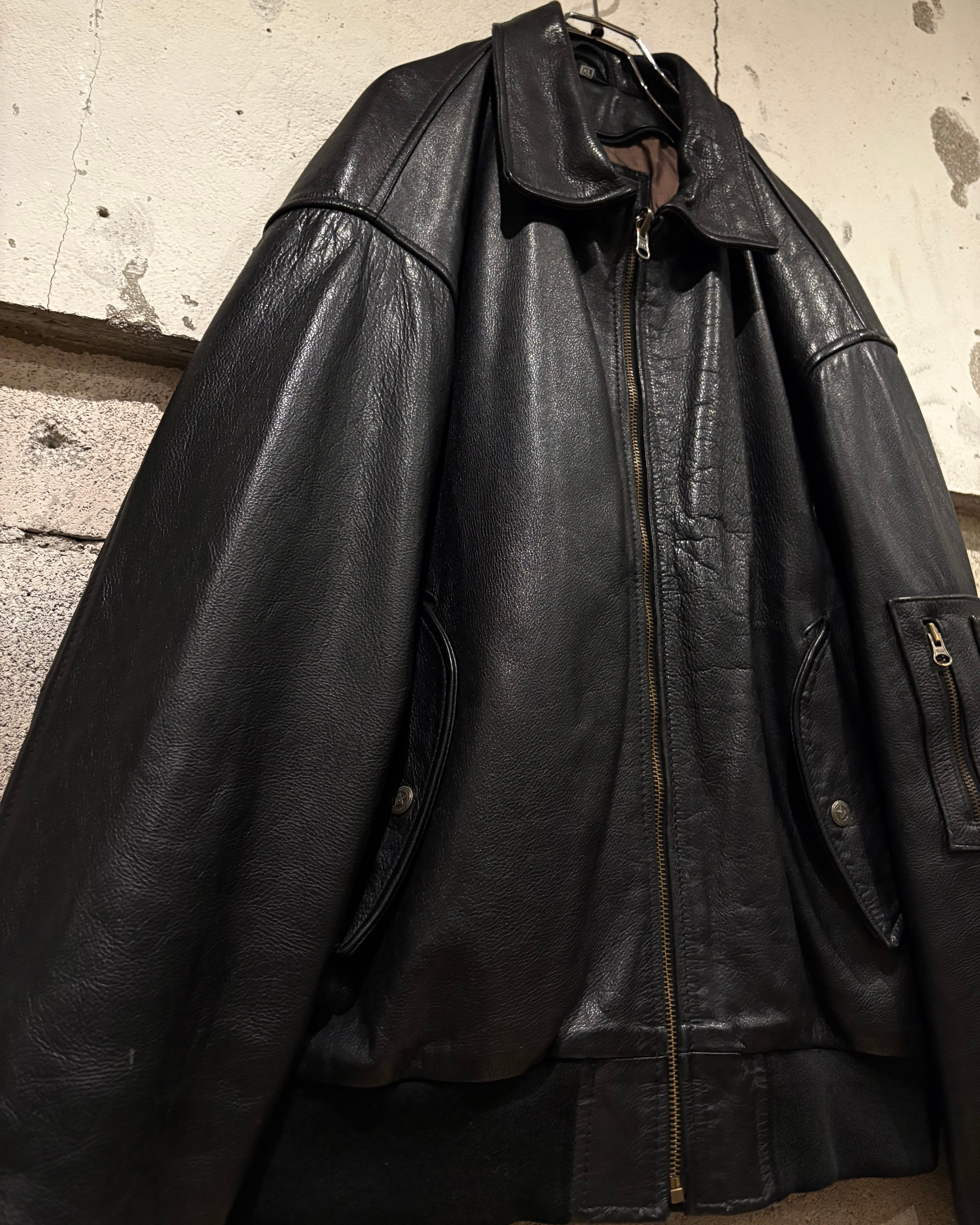 フライトジャケットをデザインソースに構築された、重厚感のあるレザージャケット。