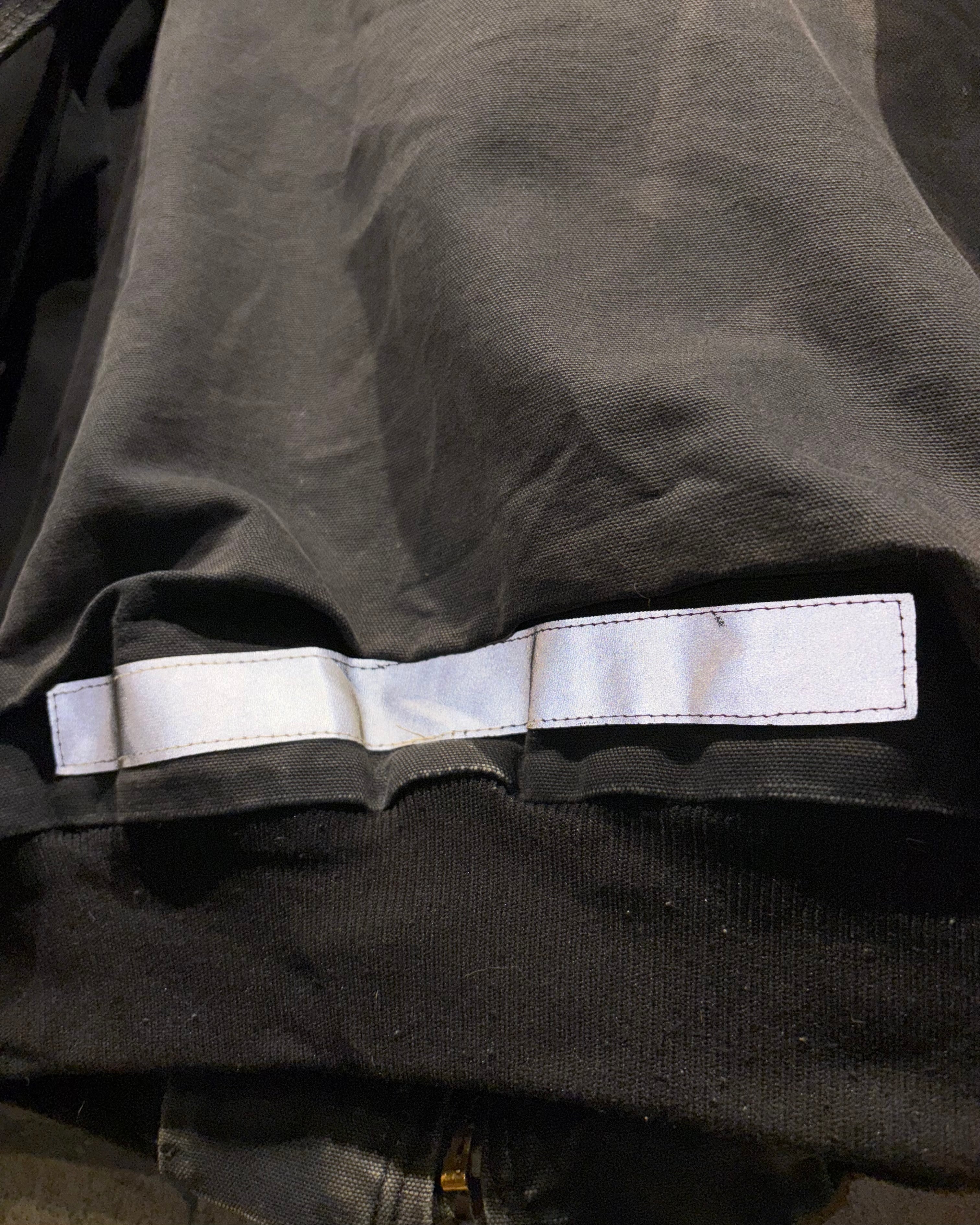 フロント、背面裾部分にはリフレクターを後付けしたカスタム仕様。実用性を高めつつ、夜間や暗所での視認性とデザイン性を両立。無地のアクティブジャケットとは一線を画す、エッジの効いた仕上がりが◎