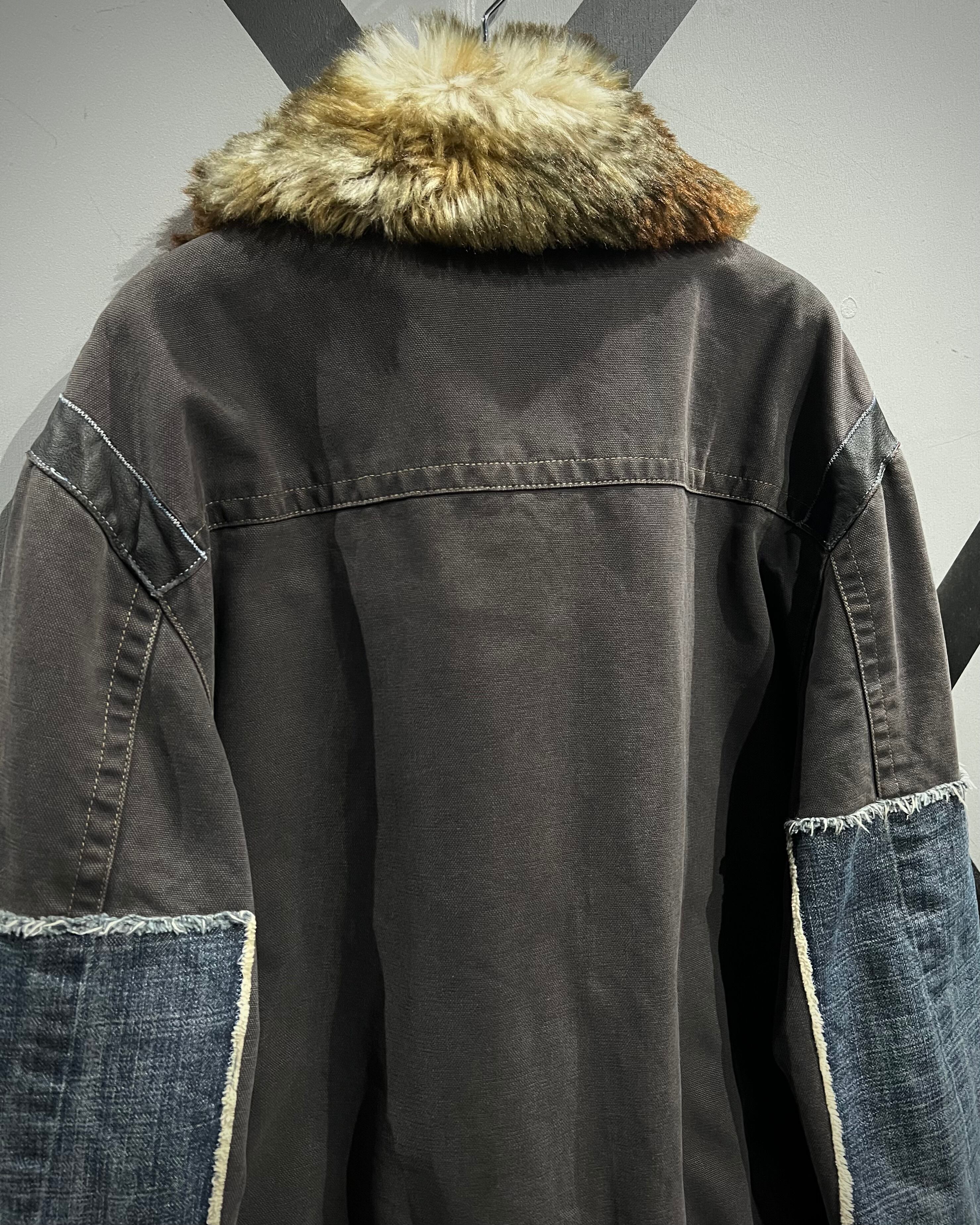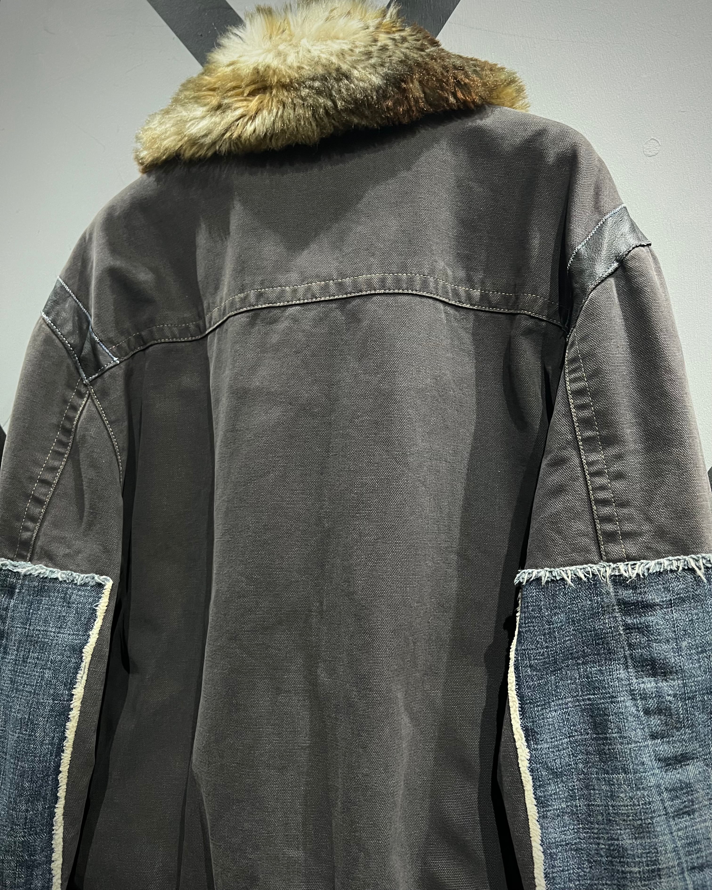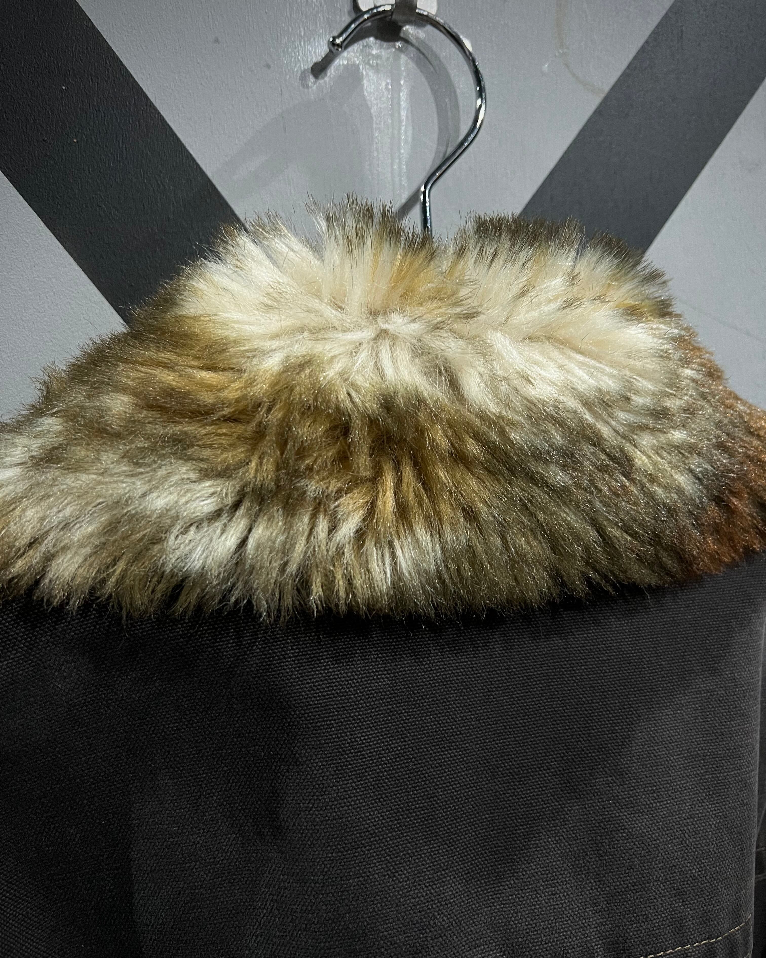 襟元にはボリュームのあるファーを採用し、視覚的なインパクトと防寒性を両立。