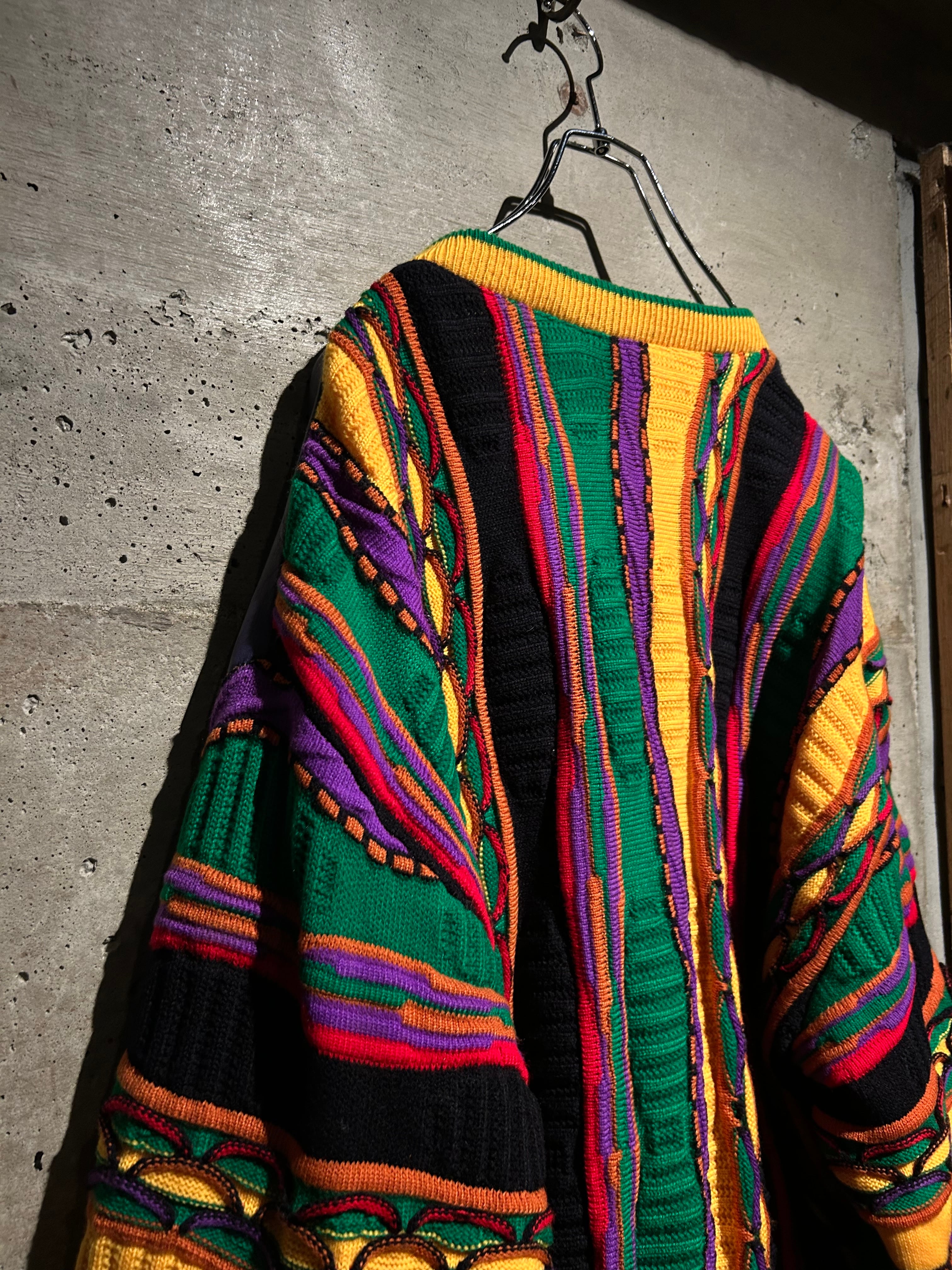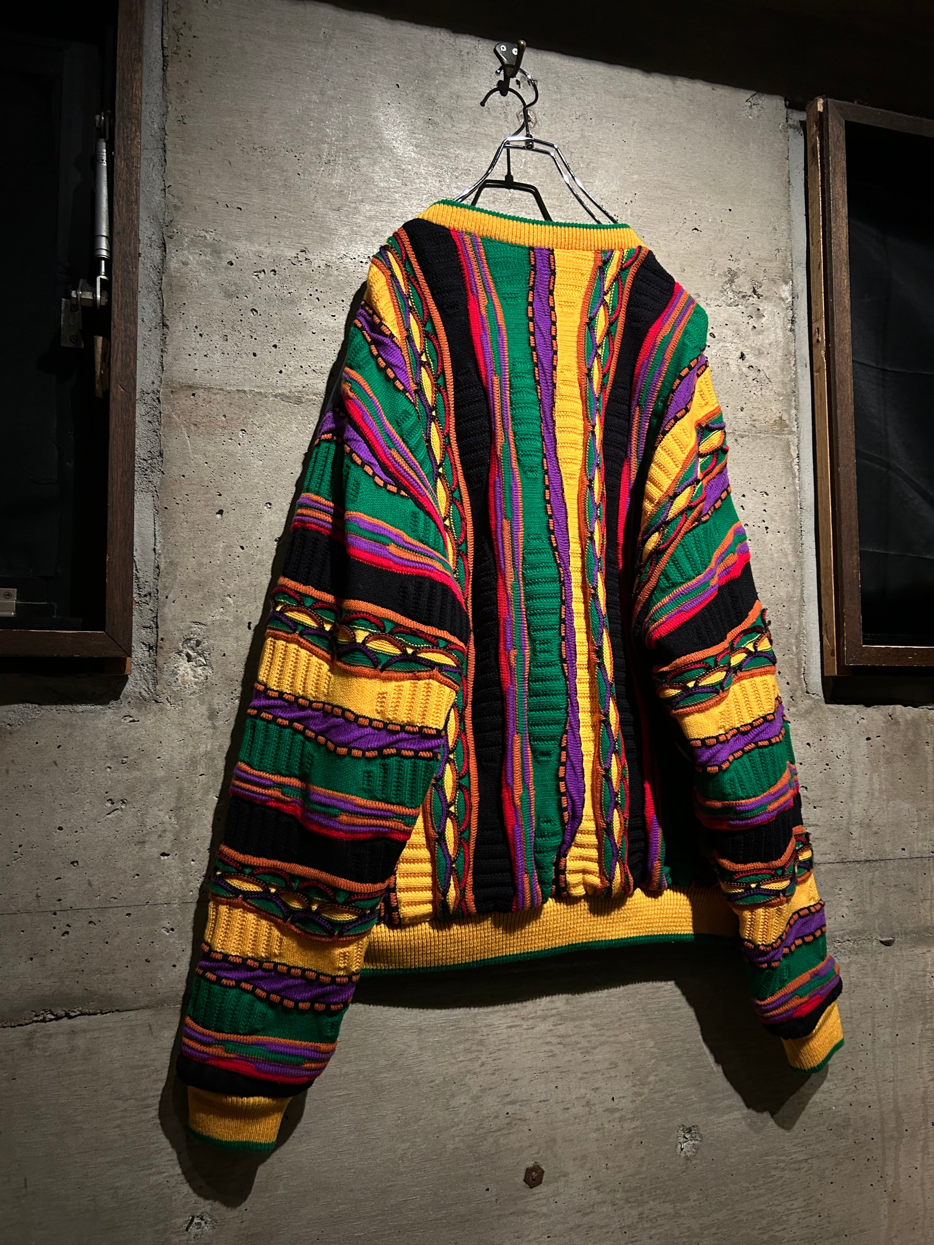 立体的に編み立てられたマルチカラーのニットボディをベースに、フロントをレザーで切り替えた、唯一無二の存在感を放つ3Dニット。
