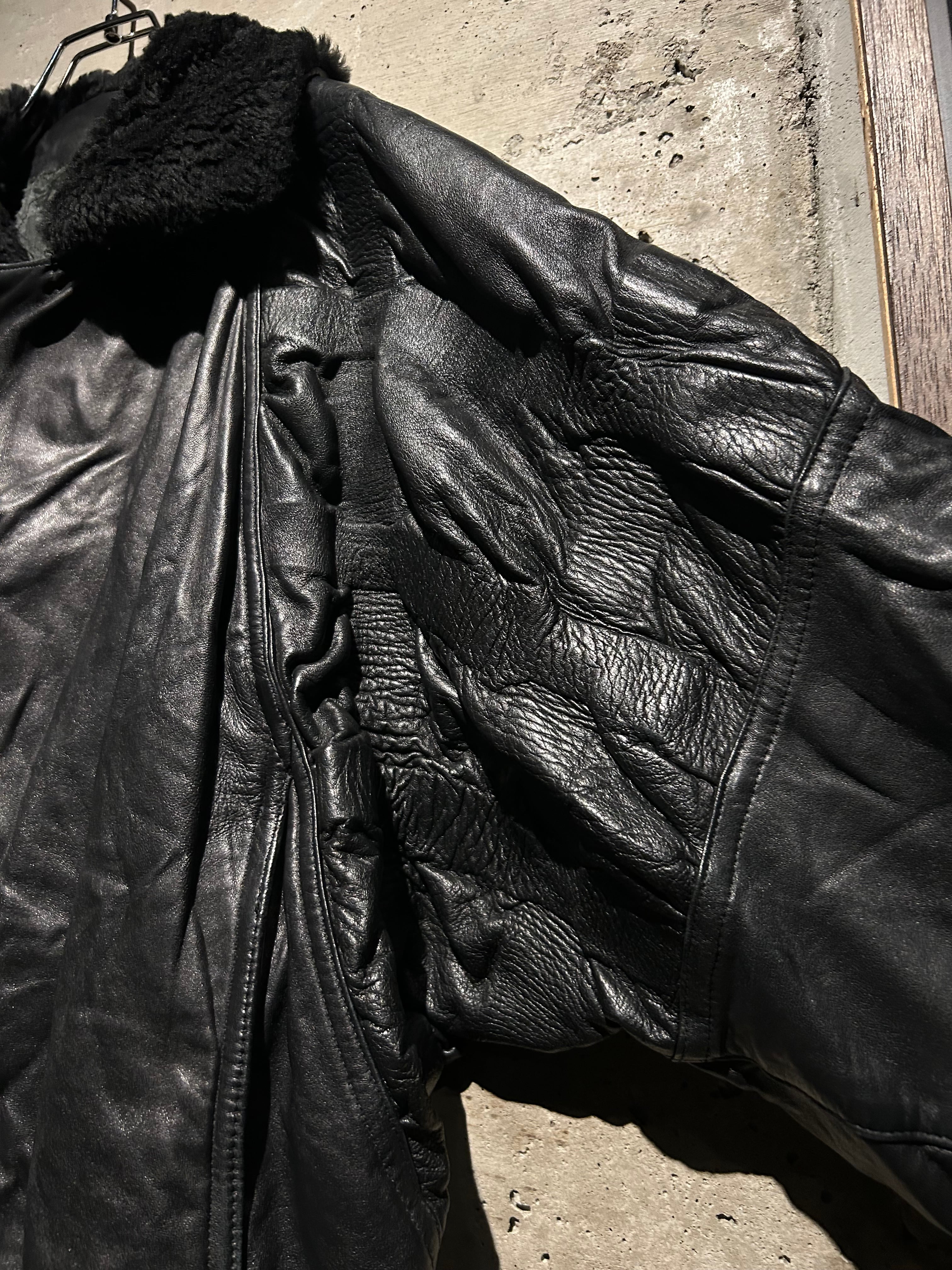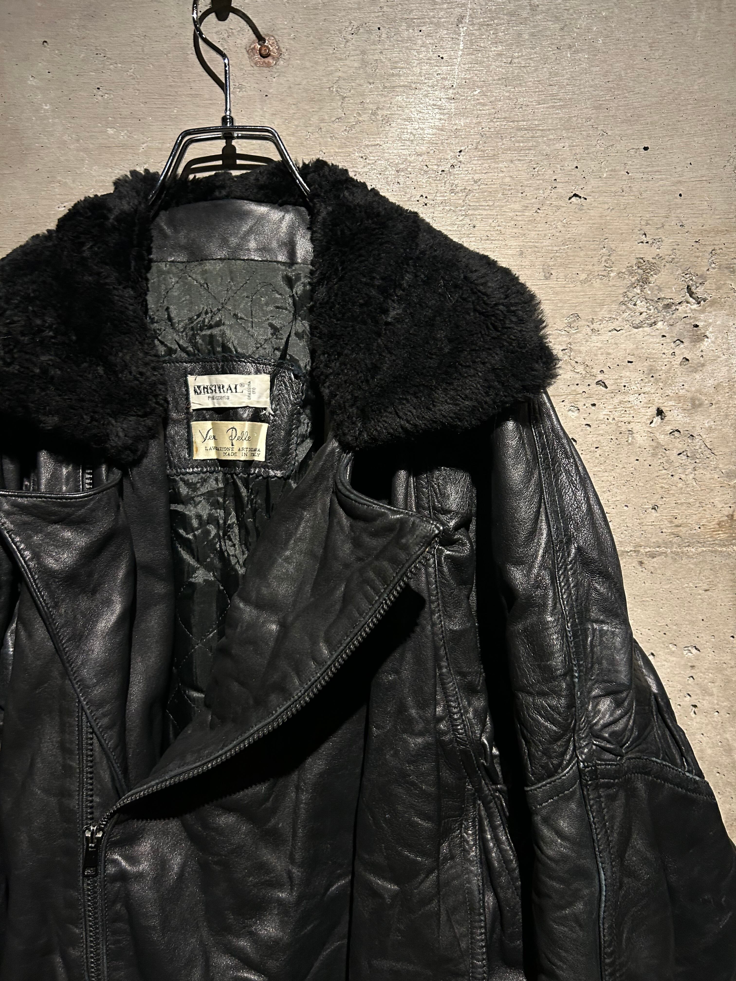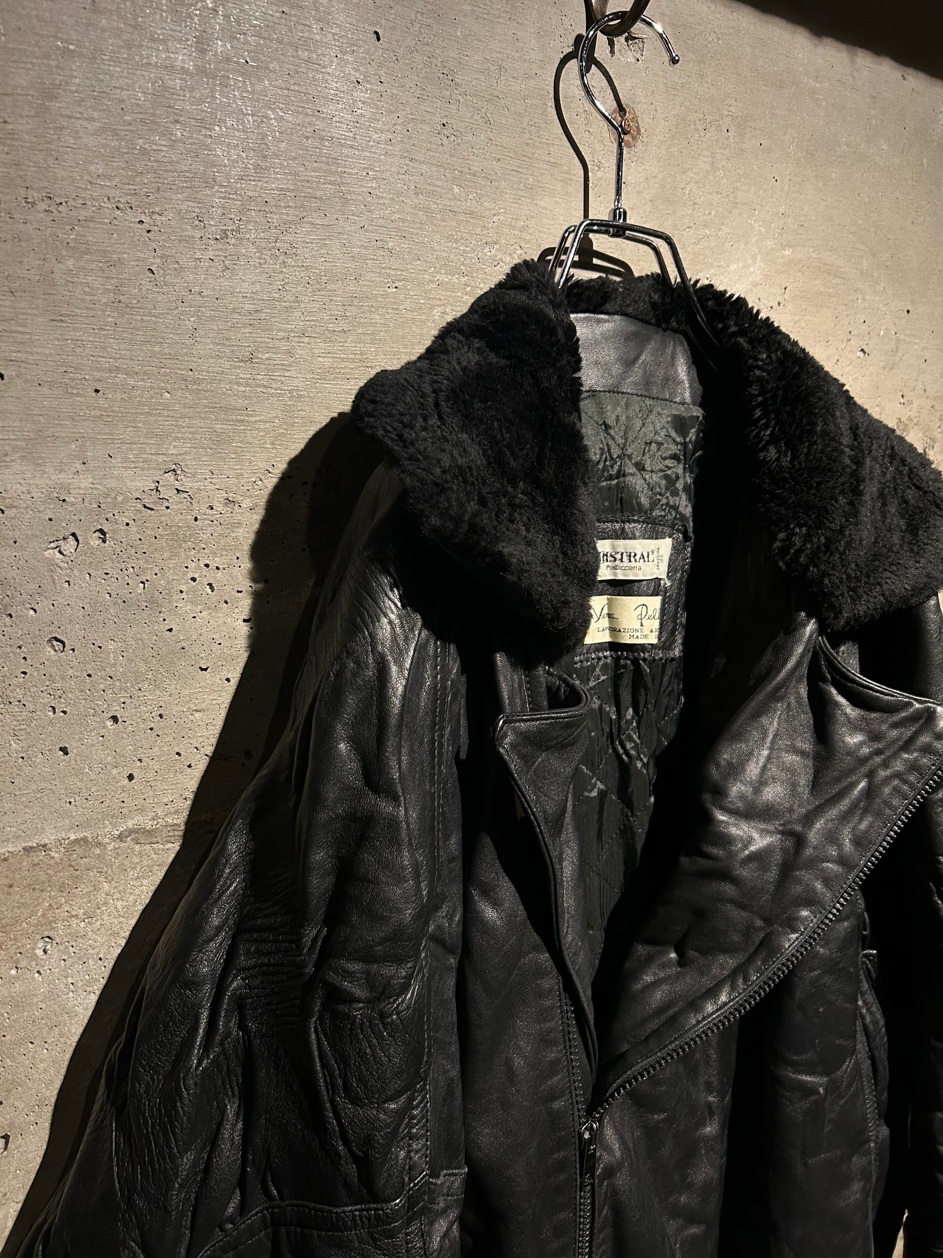 柔らかくコシのある上質なレザーをボディに用い、襟にボアを切り替えたイタリア製のレザージャケット。