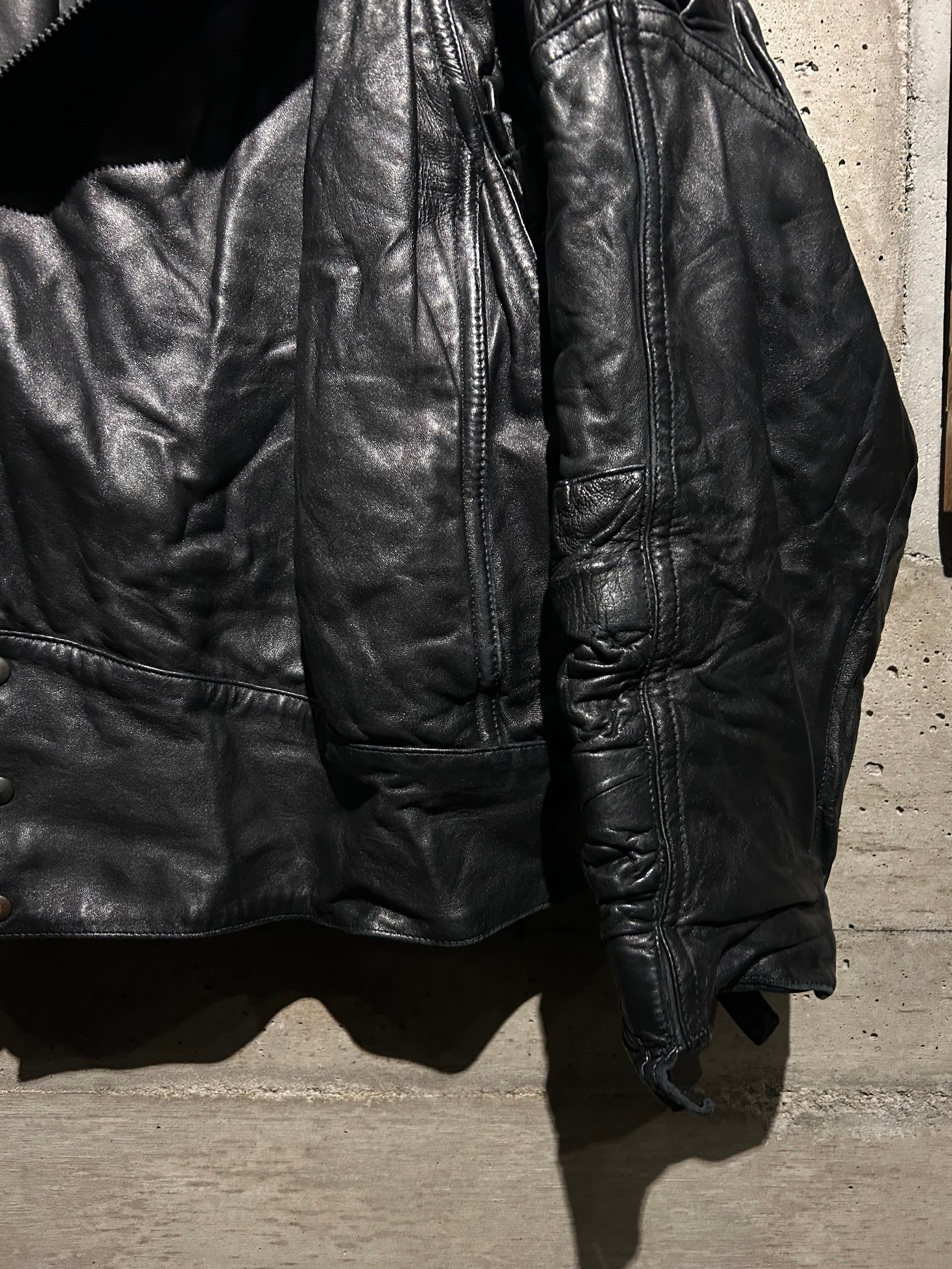 ヴィンテージレザー特有のマニッシュな雰囲気を見せながら、ハードになりすぎないバランス感が素晴らしい、、、