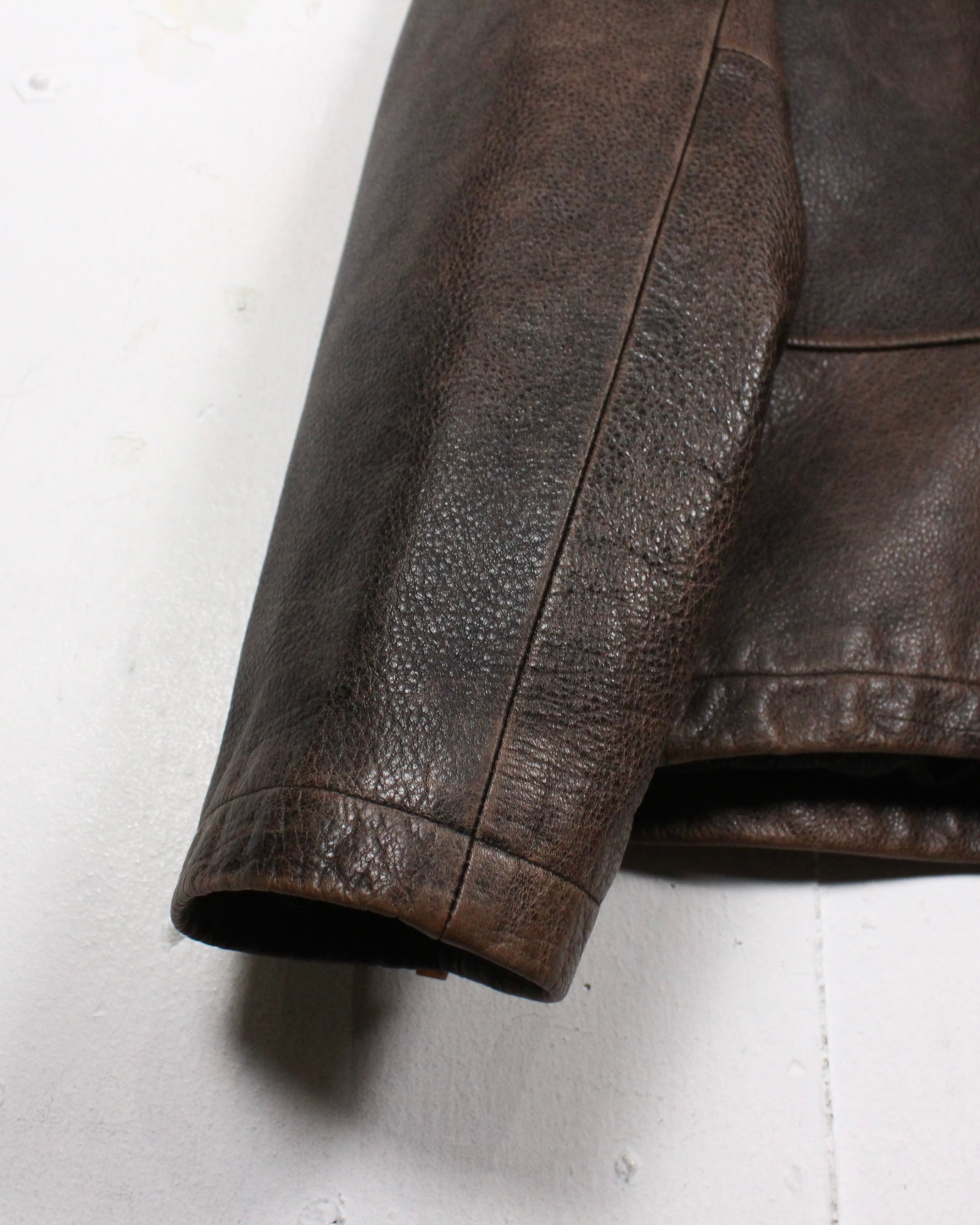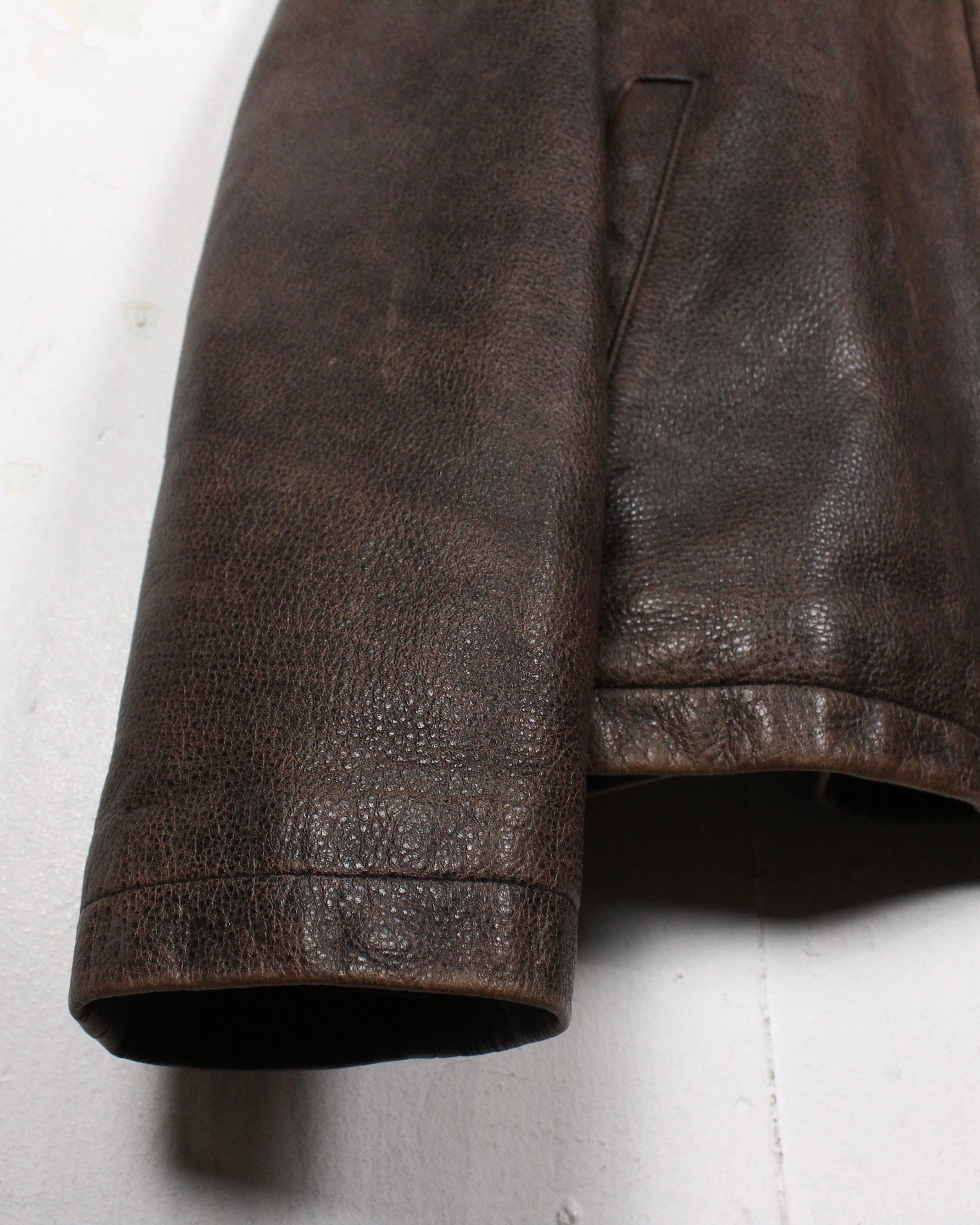 この渋い表情に、古着好きの心をグッと鷲掴みにされますね、、、レザーなのでさらに着用を重ねることで表情に深みがさらに増していきます。