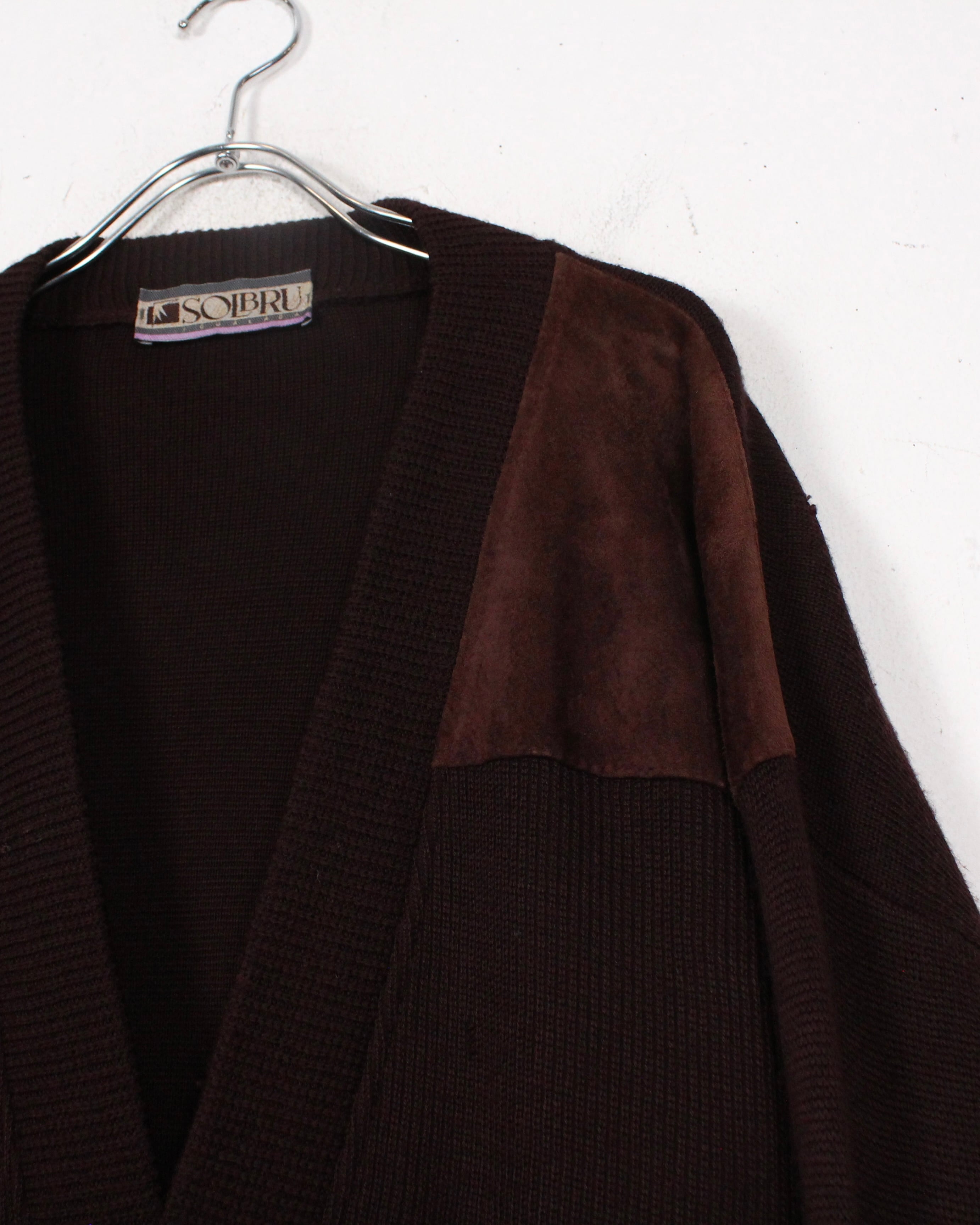 ユーロヴィンテージならではのクラフト感と素材使いが際立つ、レザー切り替えカーディガン。