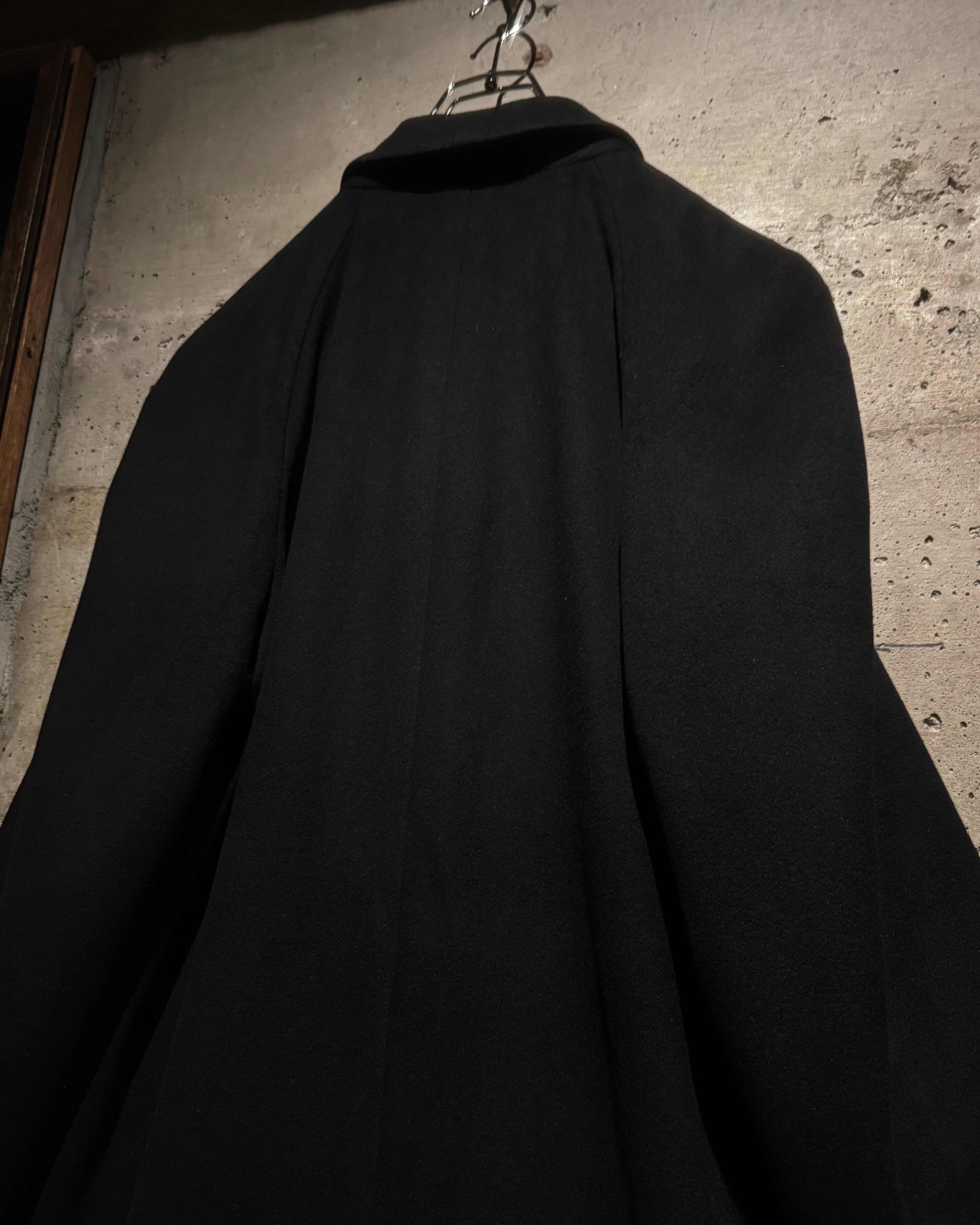 ラグランスリーブの作り。身幅をしっかり取ったシルエットにより、羽織った際のドレープ感も非常に美しい、、、長い着丈を活かす背面のスリットのディテールも◎