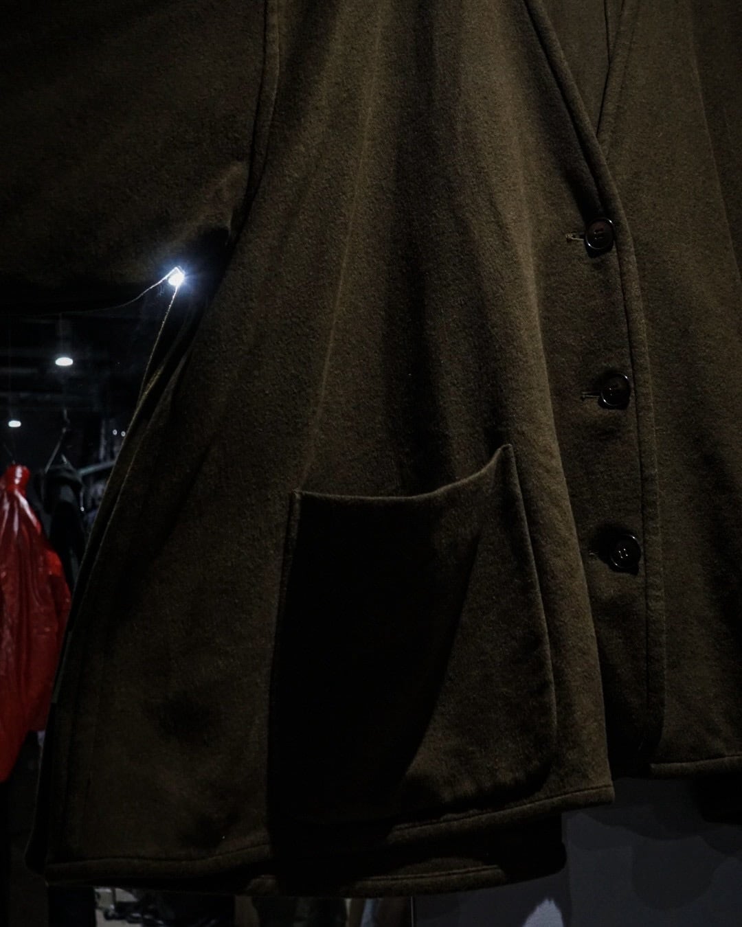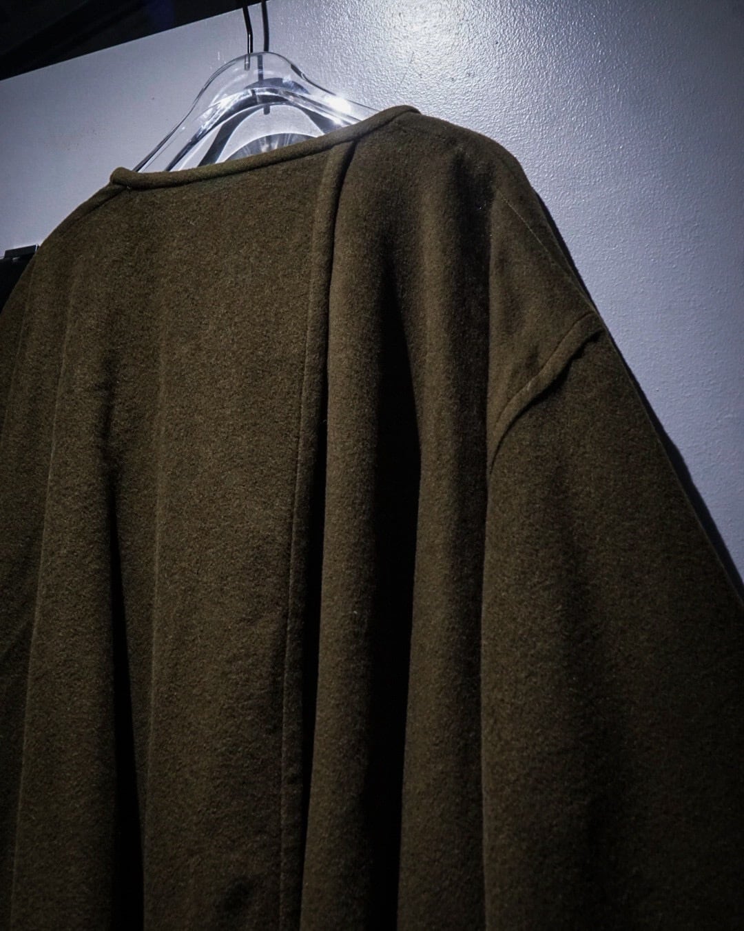 ゆったりと羽織るマントのようなジャケットなのでレイヤードもしやすく、今時期から春先までしっかりと活躍してくれるかと。