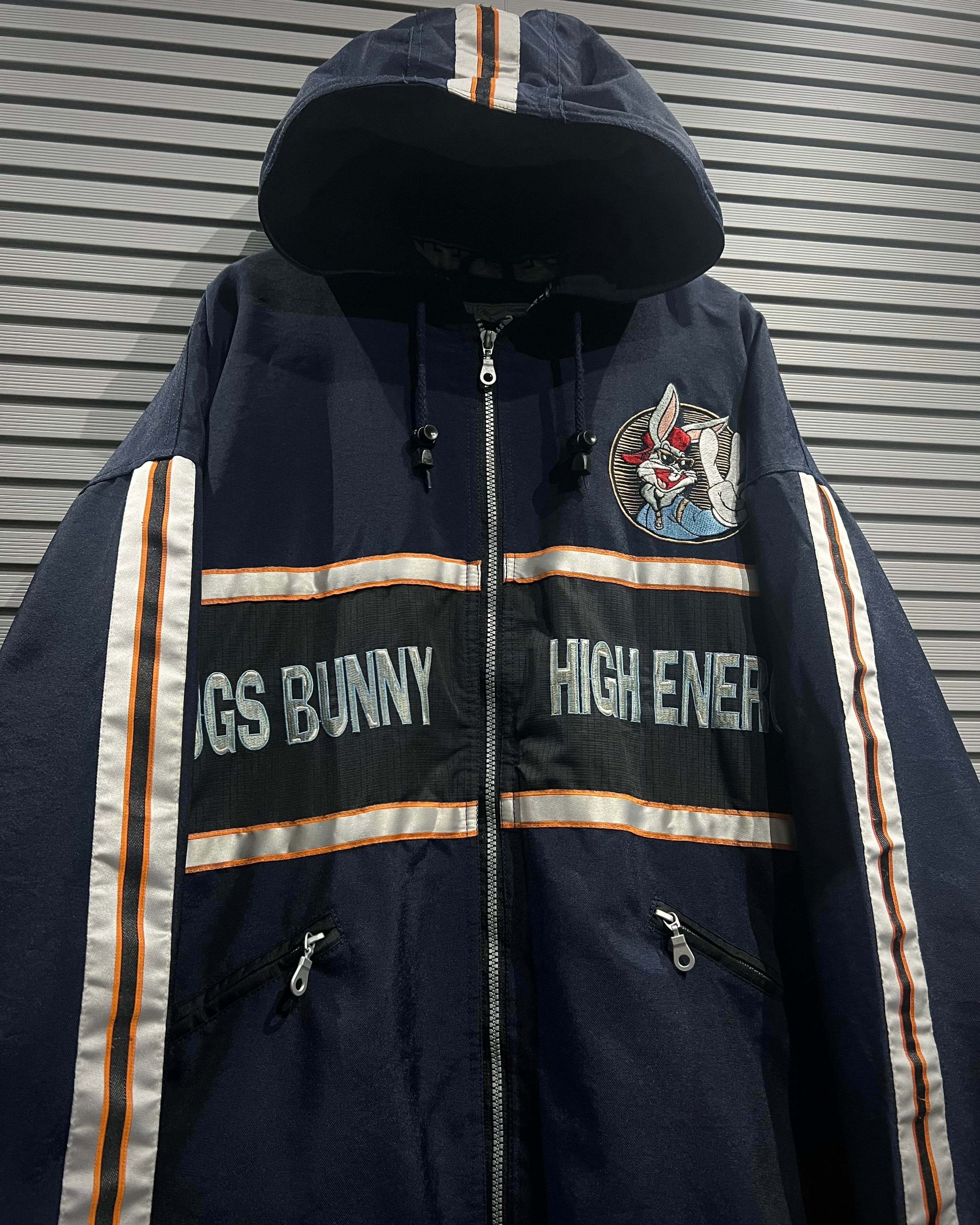 最大のポイントは、フロント、背面双方に施されたBugs Bunnyの刺繍。“HIGH ENERGY”の文字と共に配されたグラフィックは、プリントではなく刺繍ならではの立体感と存在感を演出しつつ、サングラスをかけたバッグス・バニーの姿がパワフルですね。