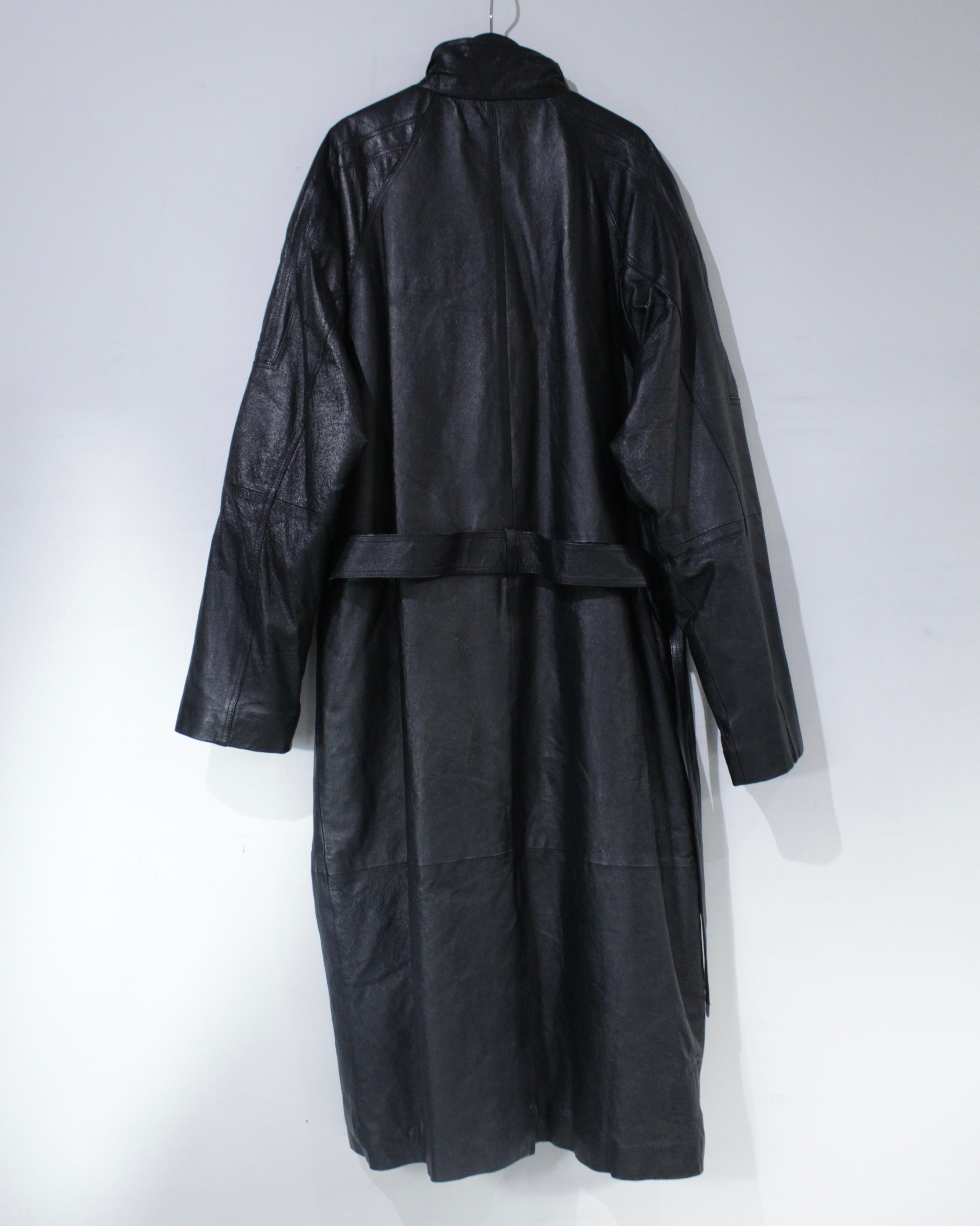 柔らかく上質なレザーをたっぷりと用いた、贅沢なレザーロングコート。