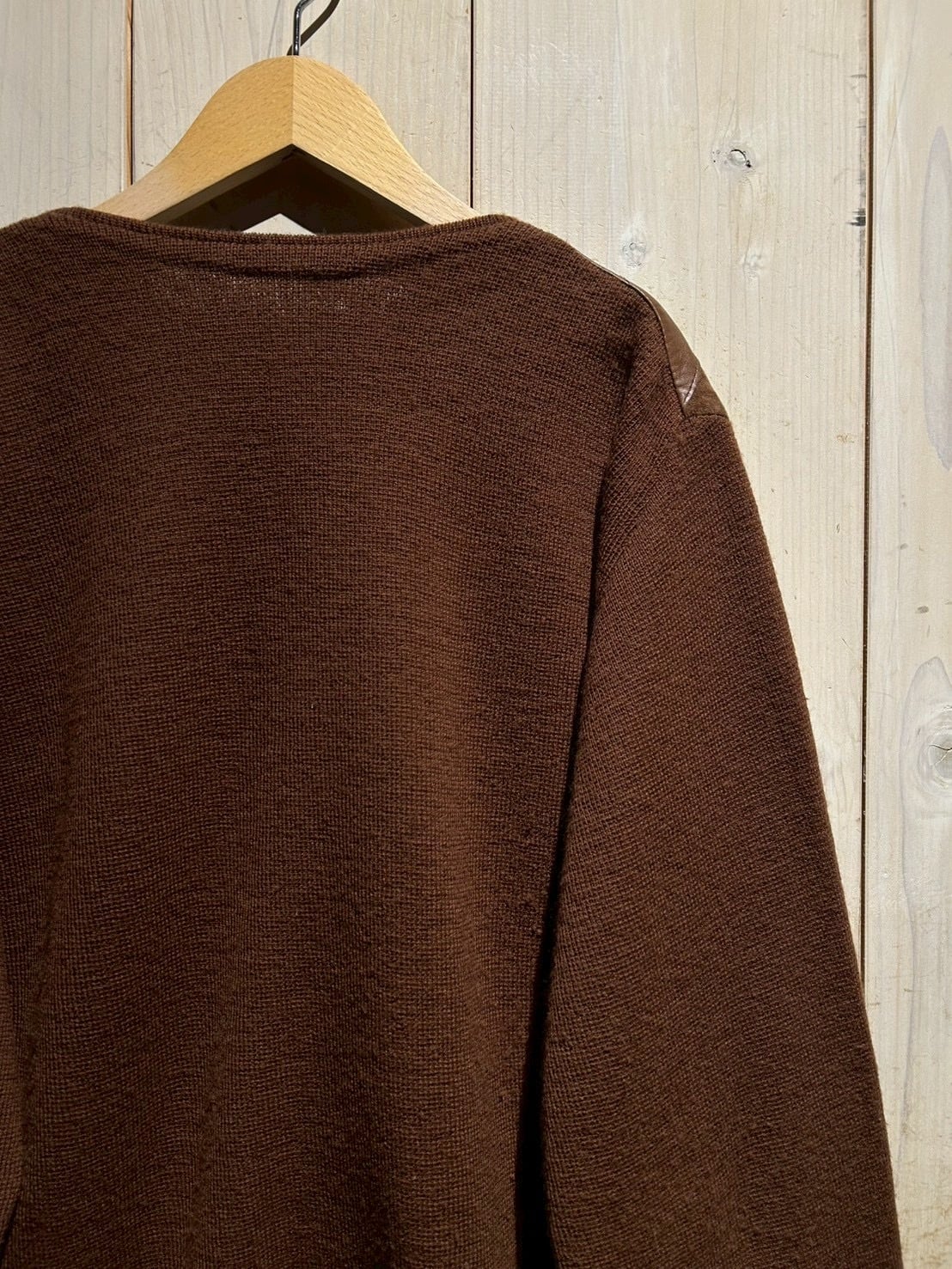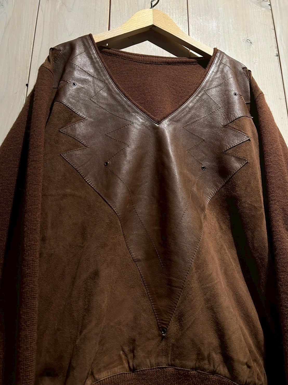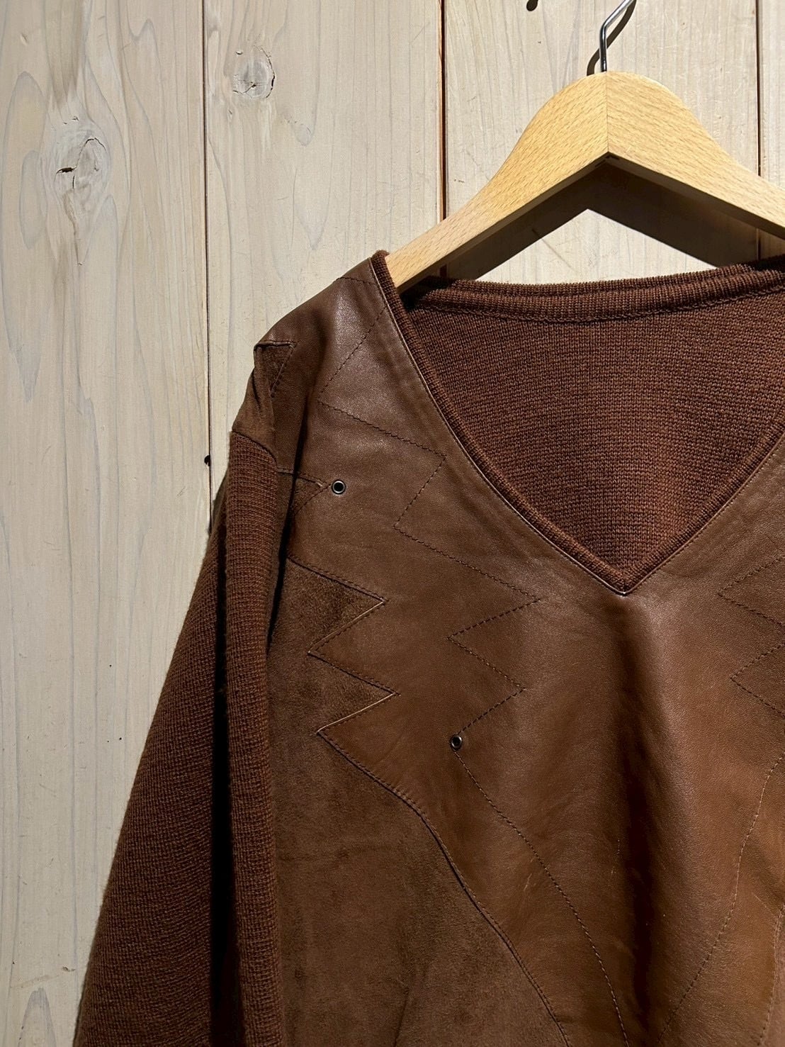 レザー×ニットという異素材の組み合わせが素晴らしい、スペシャルなニットです。