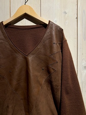 フロントにスエードレザーとスムースレザーを切り替えた、存在感のあるVネックニット。
