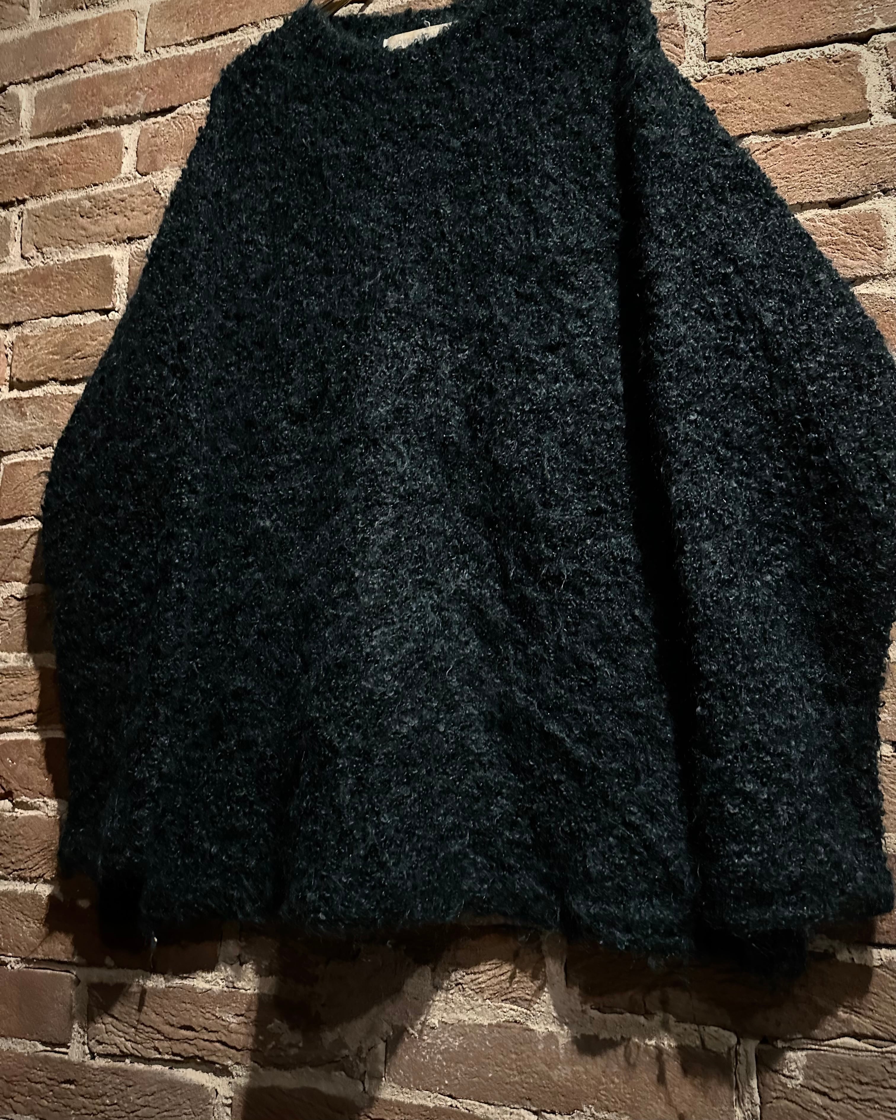 モヘア混素材を贅沢に使用した、カーリーヘア調のニット。細かく立ち上がる毛足が奥行きのある表情を生み、シンプルながらも確かな存在感を放ちます。