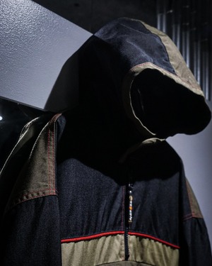 ブラックをベースに、ベージュトーンの切り替えを組み合わせた、配色バランスが秀逸なアノラックパーカー。ベーシックなカラーリングの中に、赤のパイピングやステッチが全体を引き締めるアクセントに。