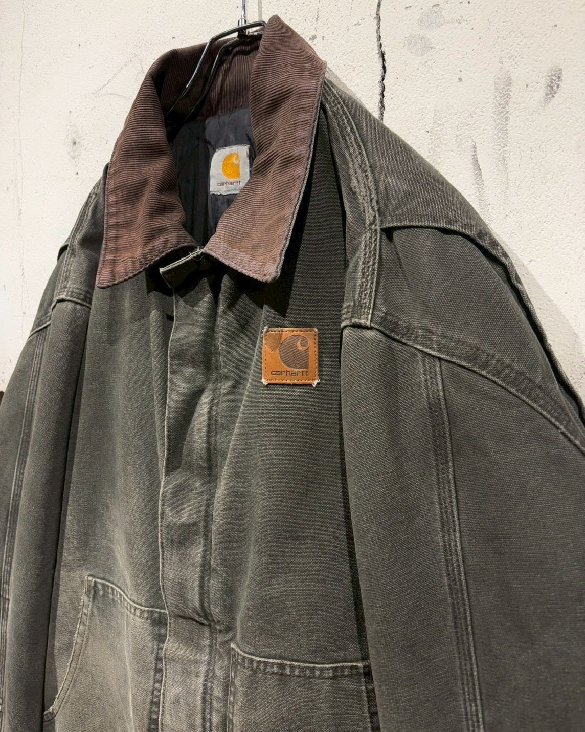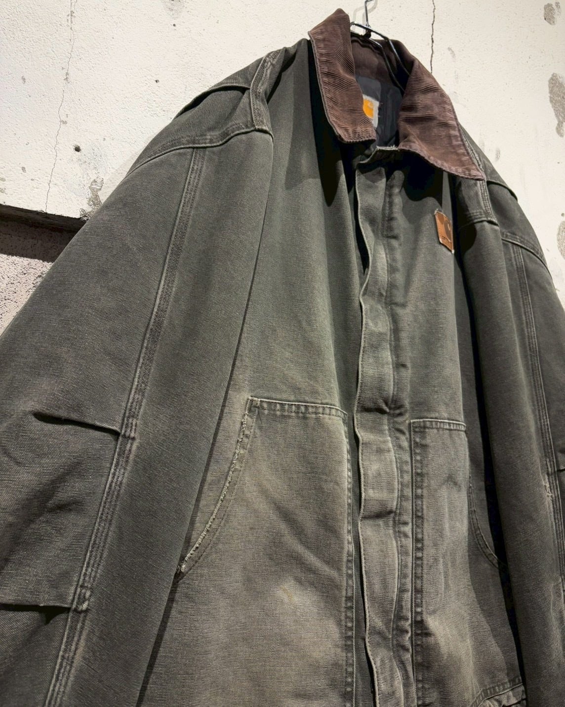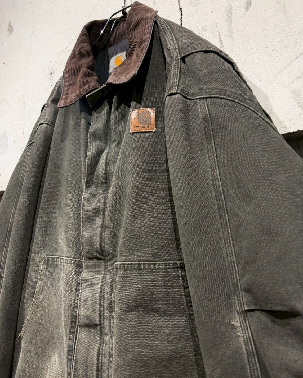 経年の変化による美しいフェードの効いたブラックのトラディショナルジャケット。昨今のCarharttの高騰化と共にバイイングしづらくなった個体、スペシャルです。