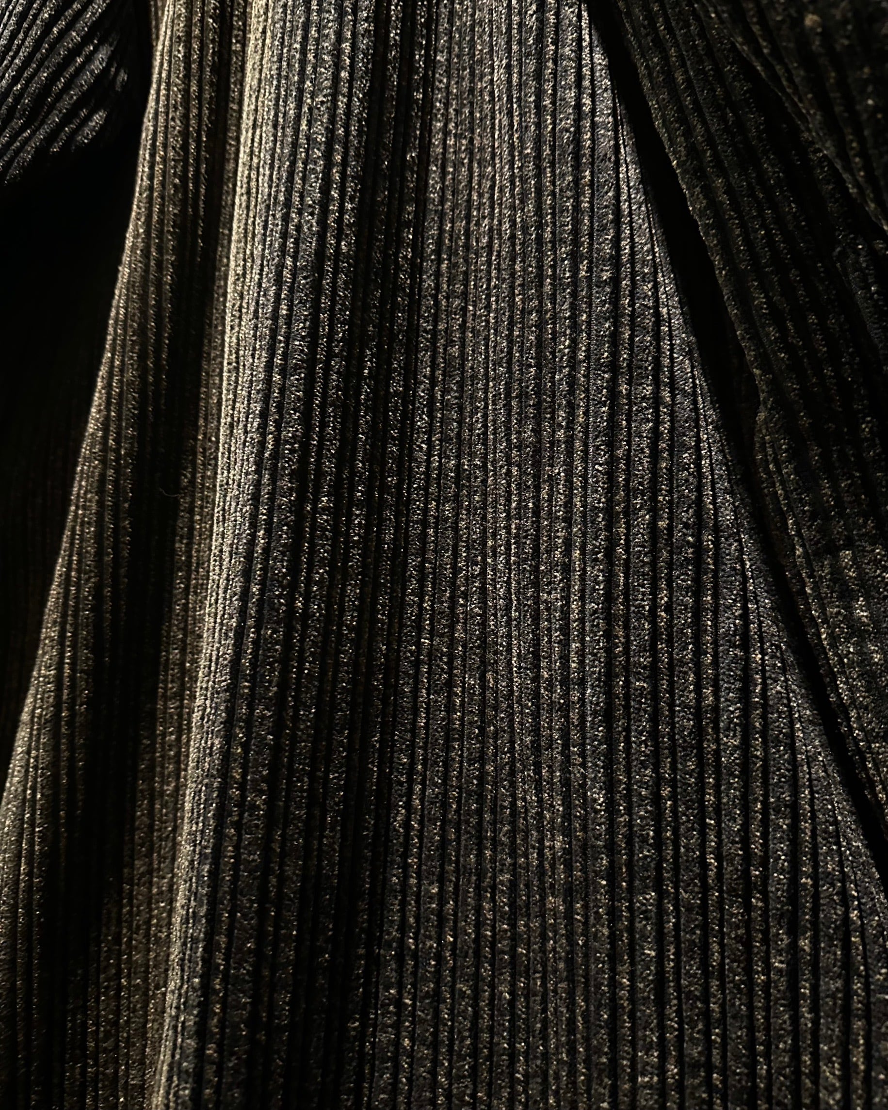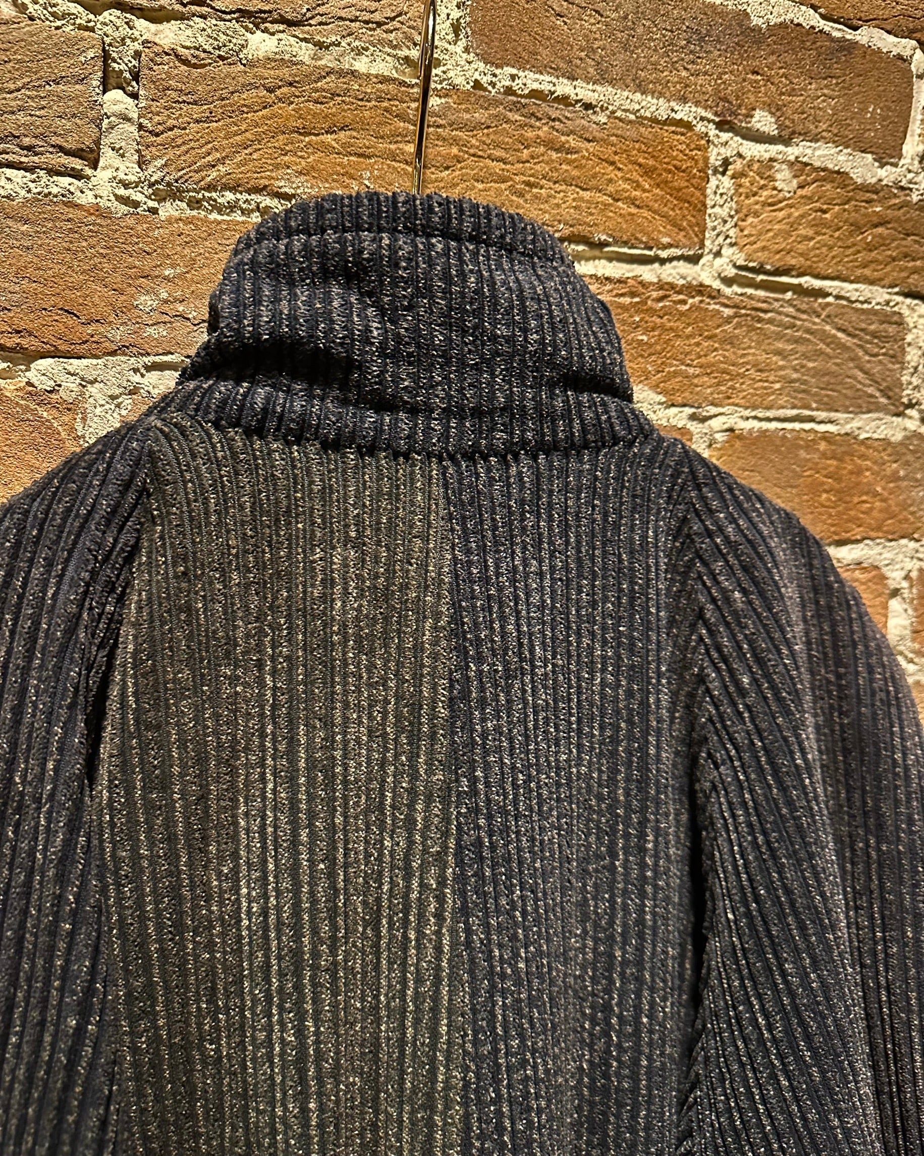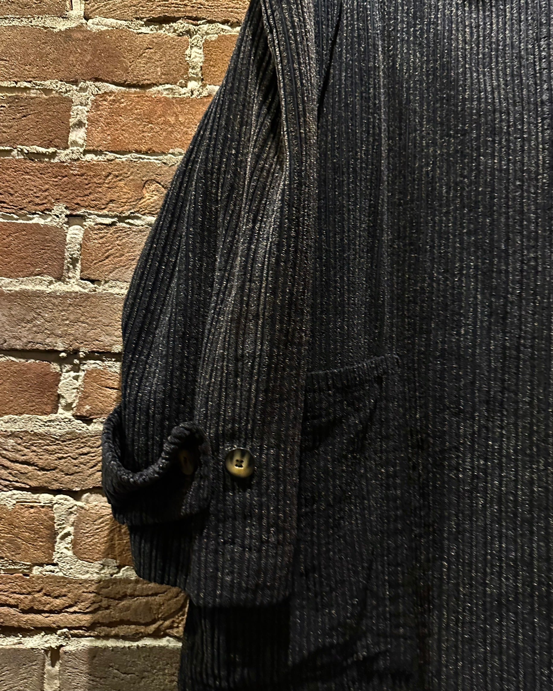 縦畝がはっきりと立った、肉感のあるファブリックを使用した1着。