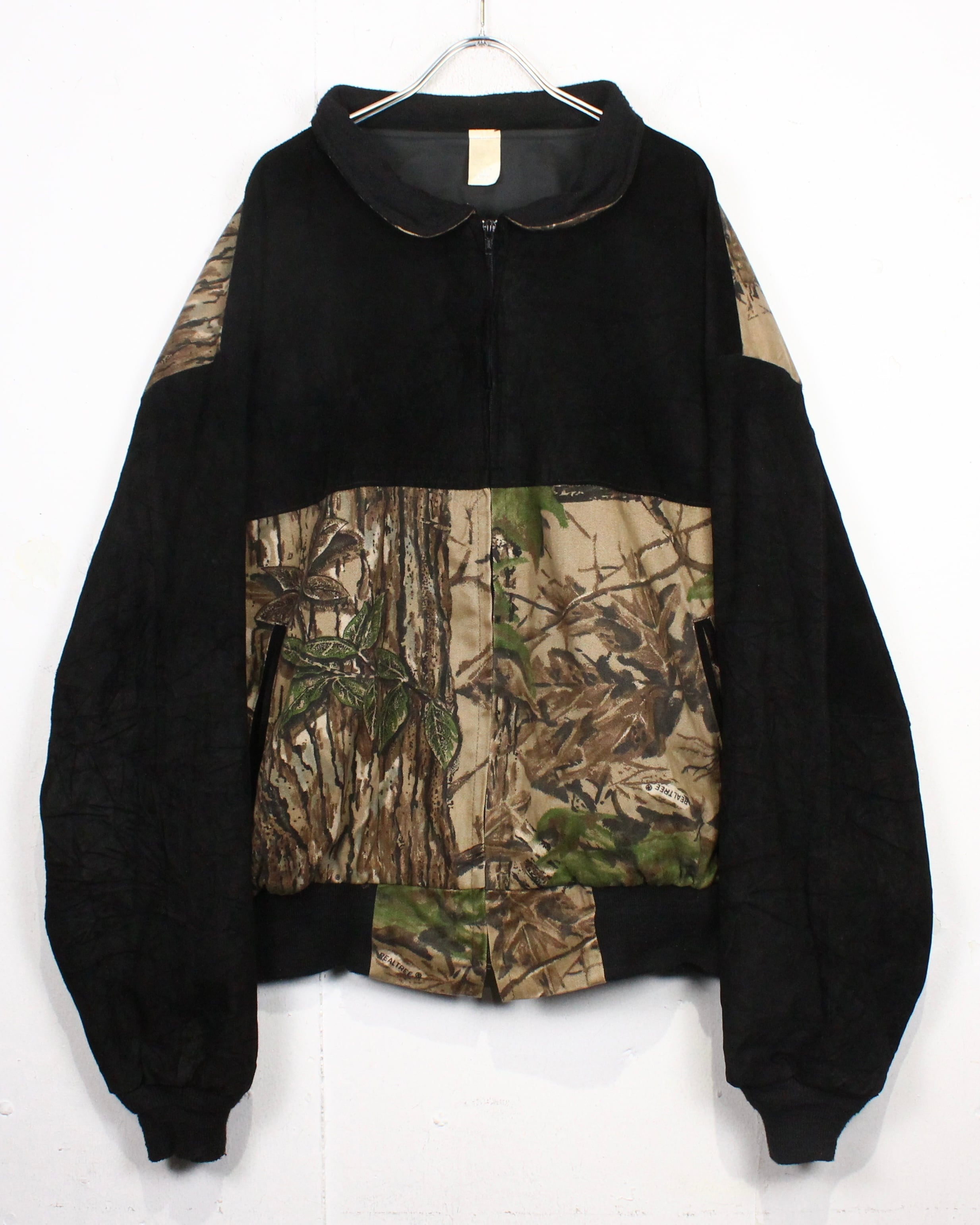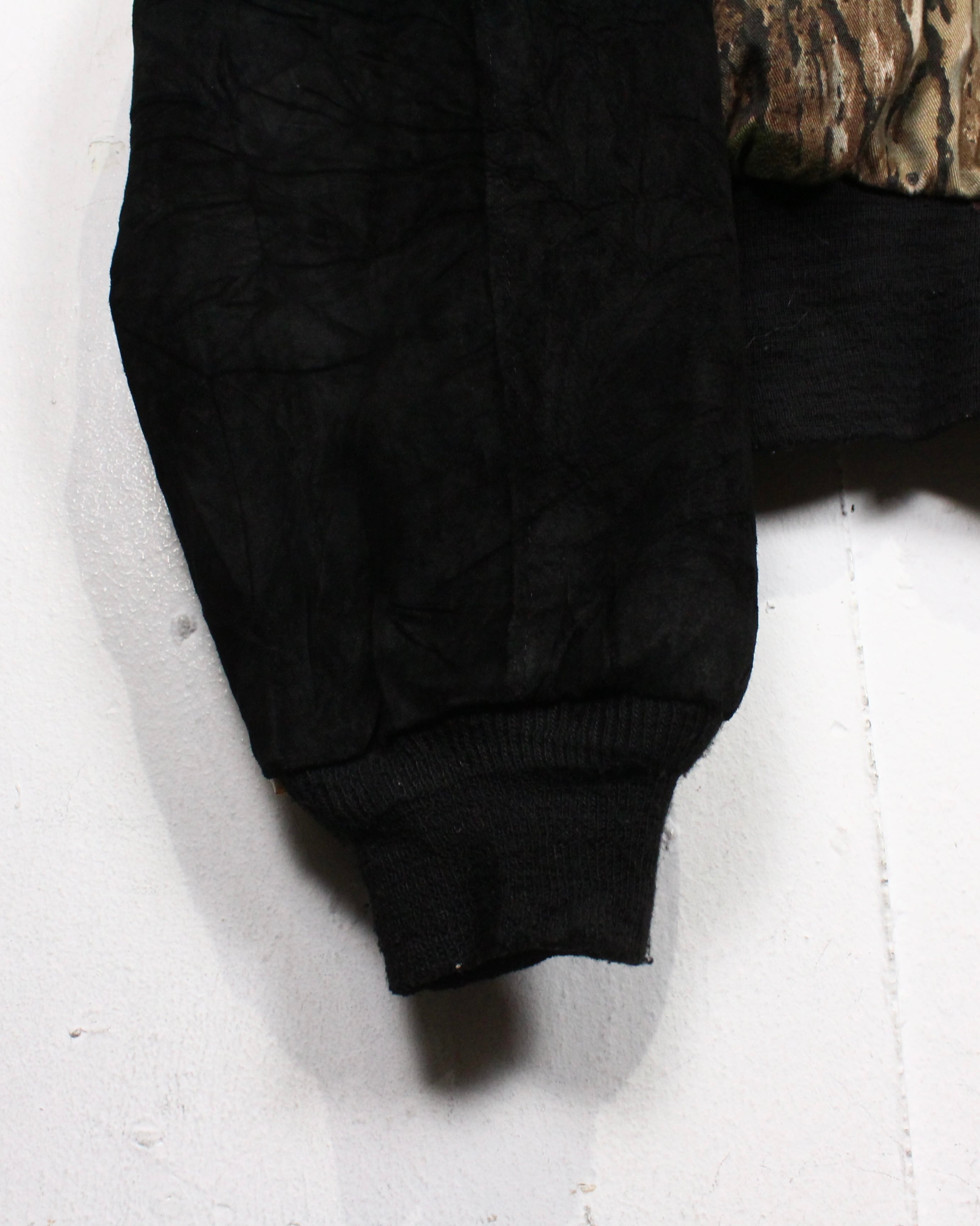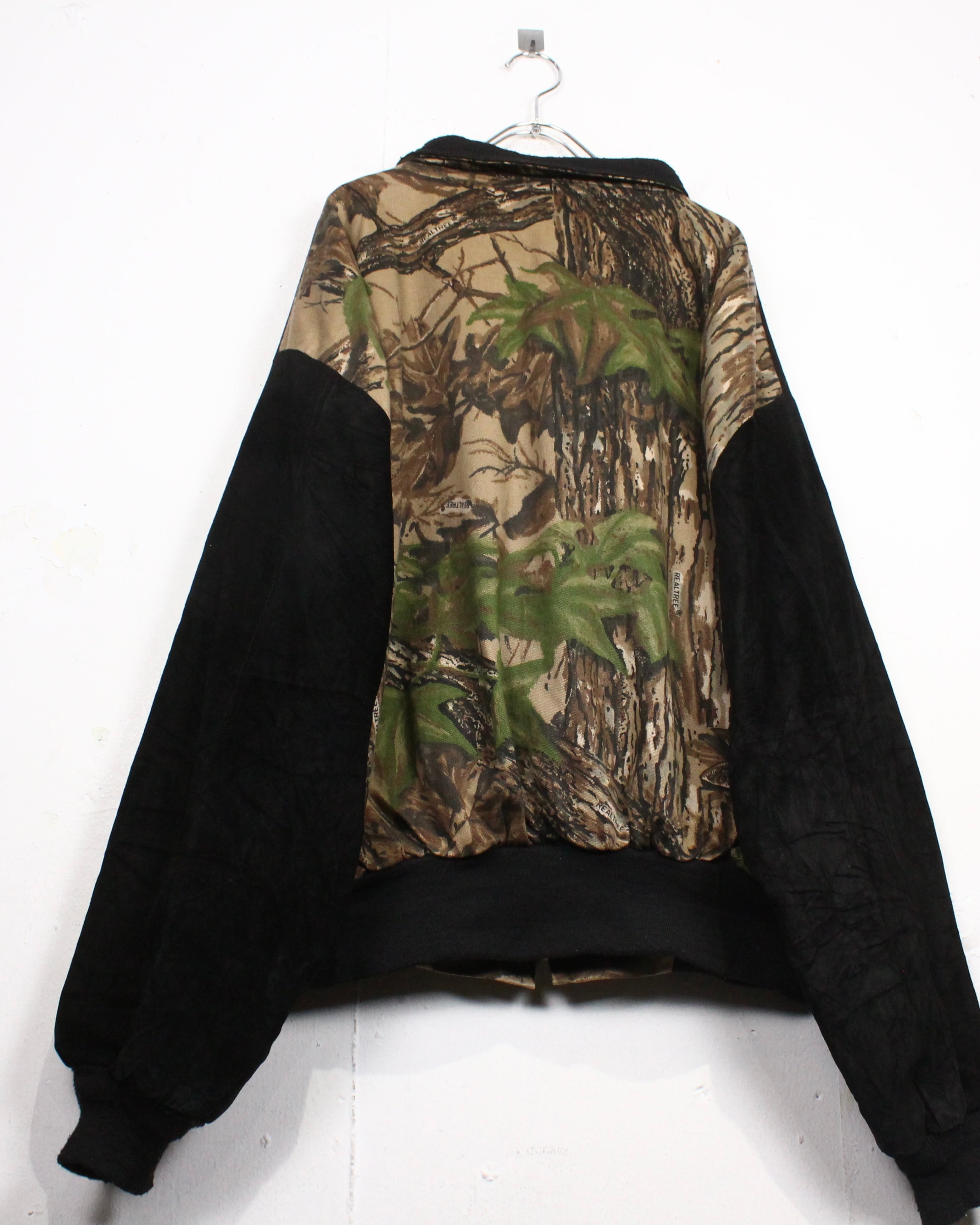ブラックのフェイクスエードのボディをベースに、昨今のトレンドでもあるリアルツリーカモ柄を切り替えた80'sヴィンテージのジャケット。