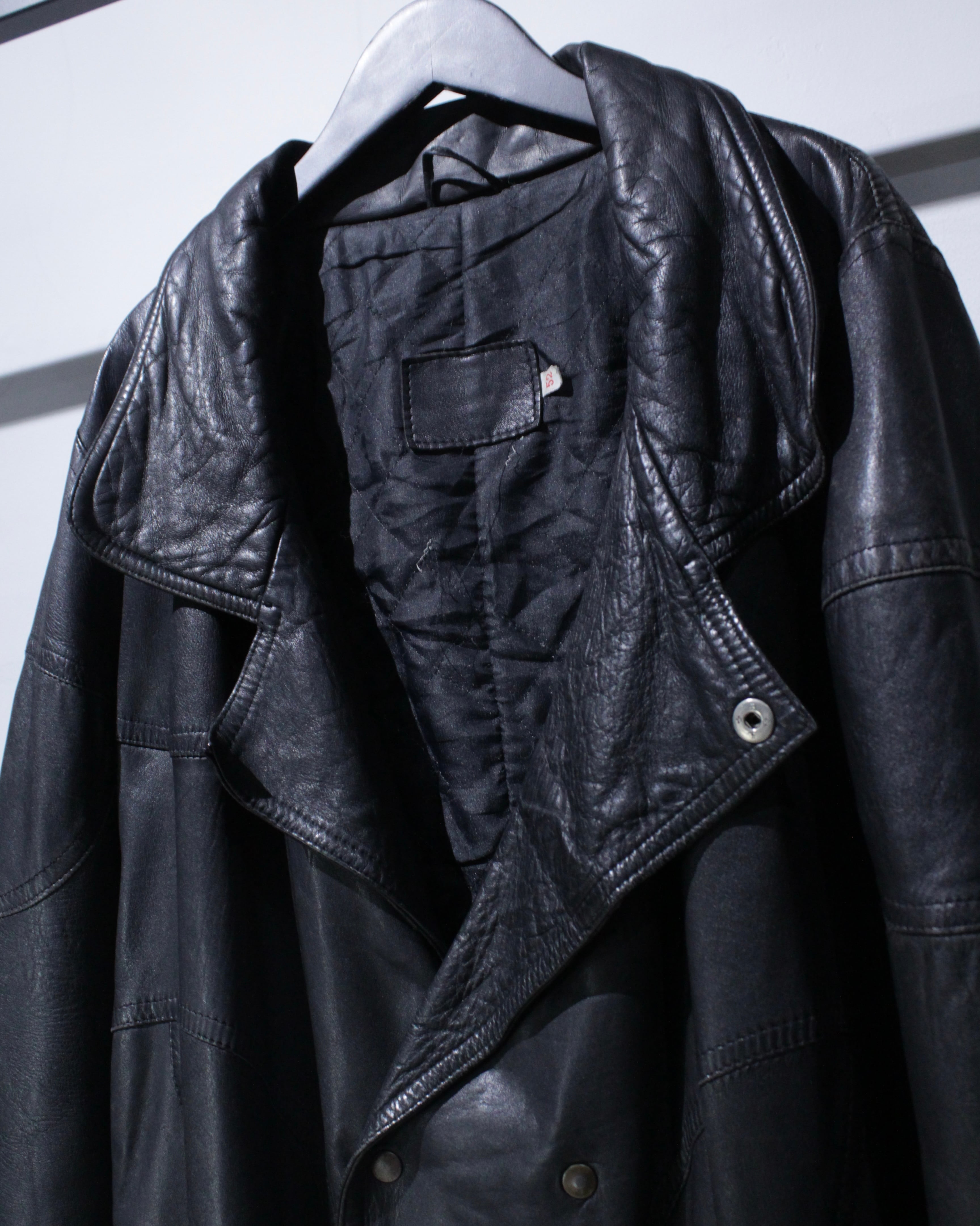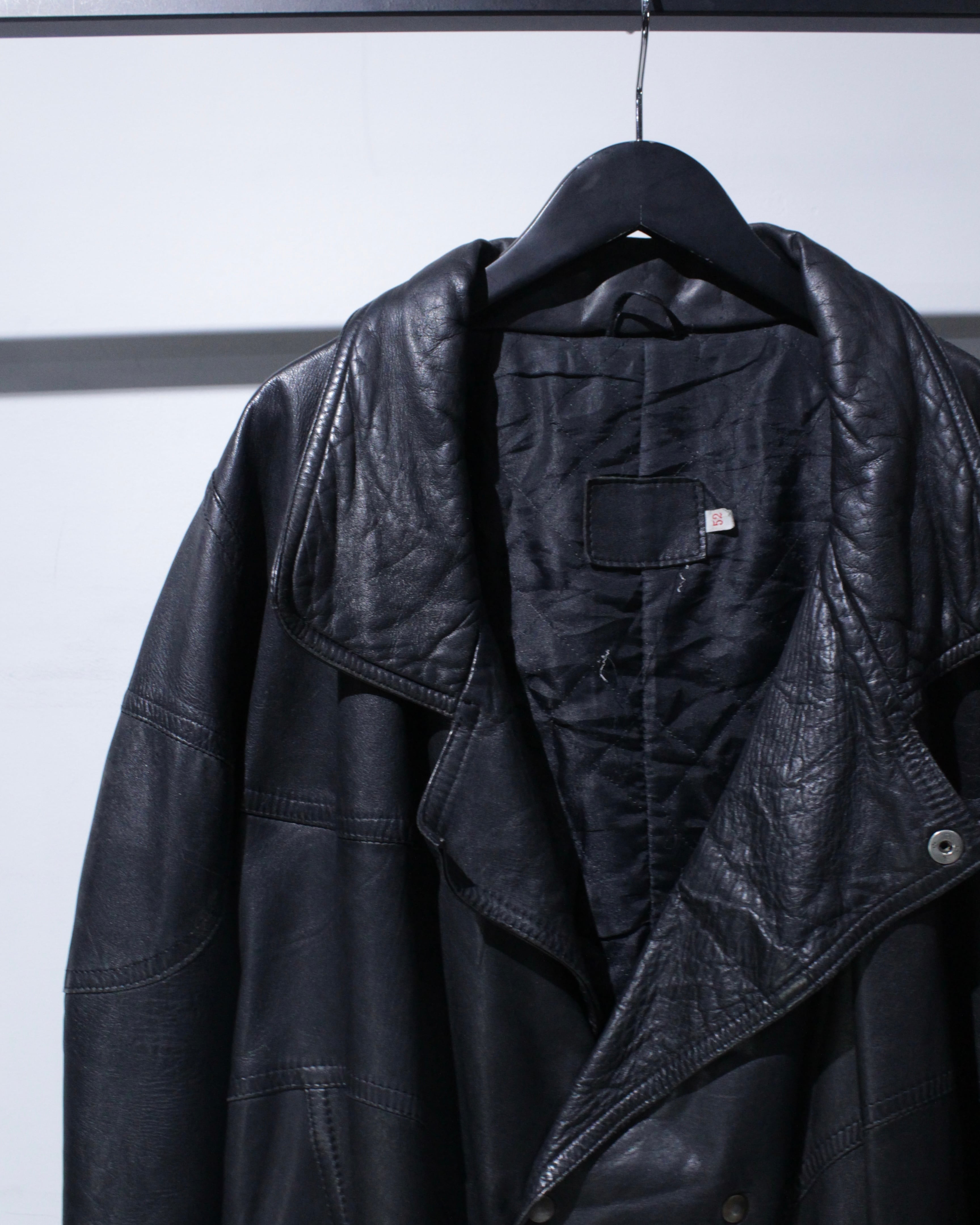 レザーでありながら重さを感じにくく、シルエットは自然に身体へ馴染むバランス。デニムやスラックスはもちろん、ワイドパンツやモードなスタイリングとも相性が良く、幅広い着こなしに対応します。