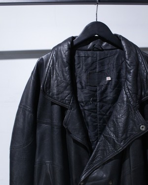 クラシックな佇まいが印象的な、ダブルブレスト仕様のレザージャケット。
