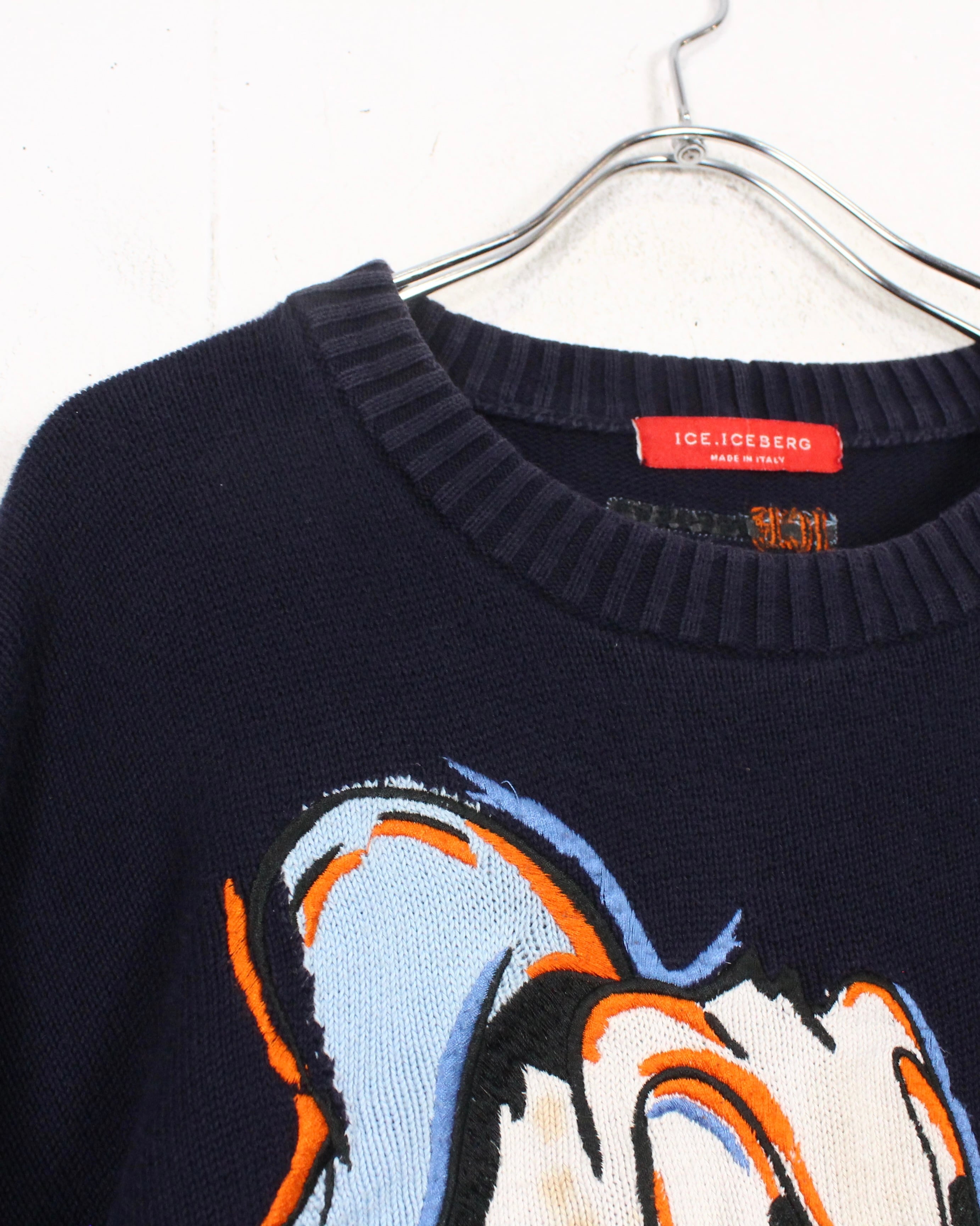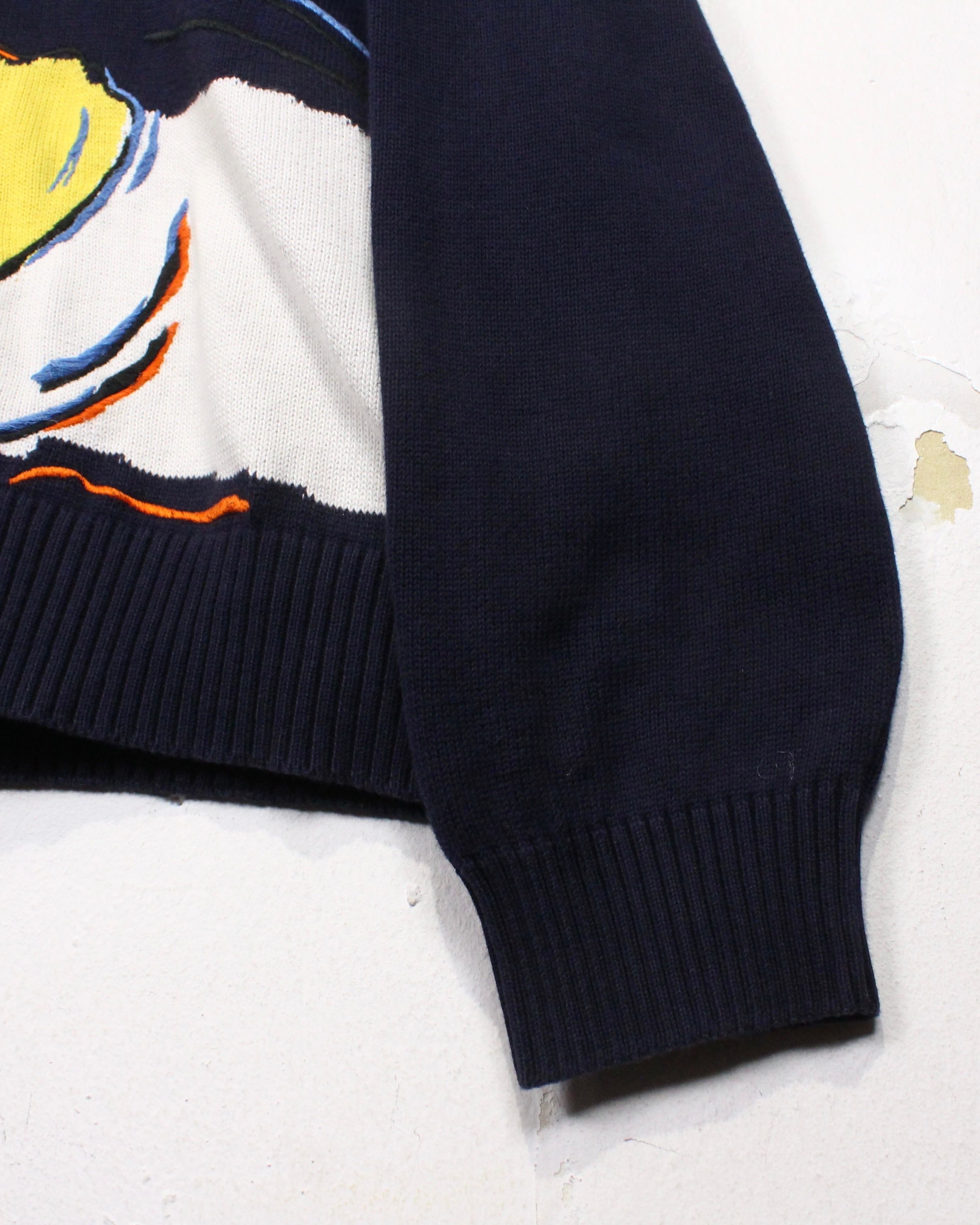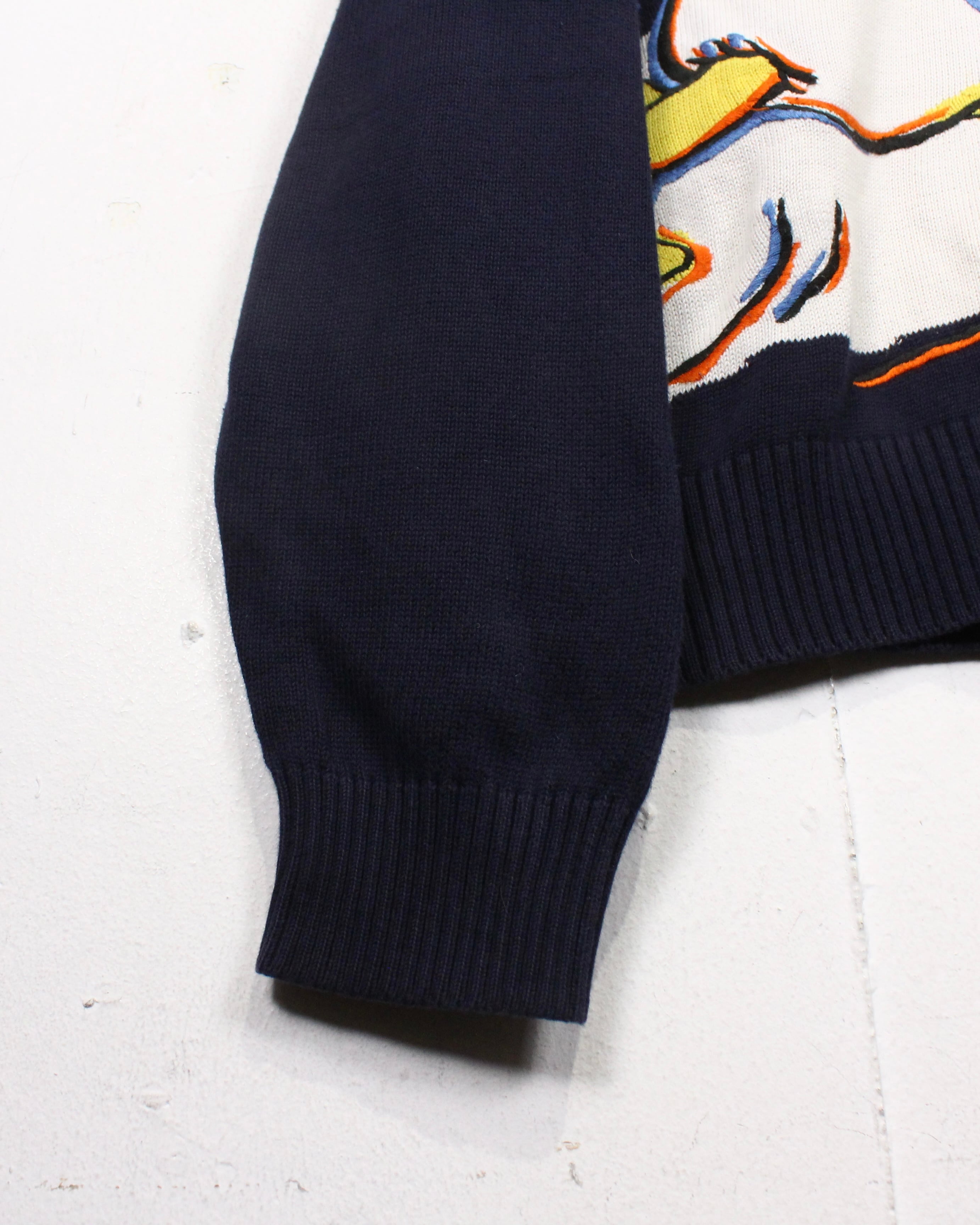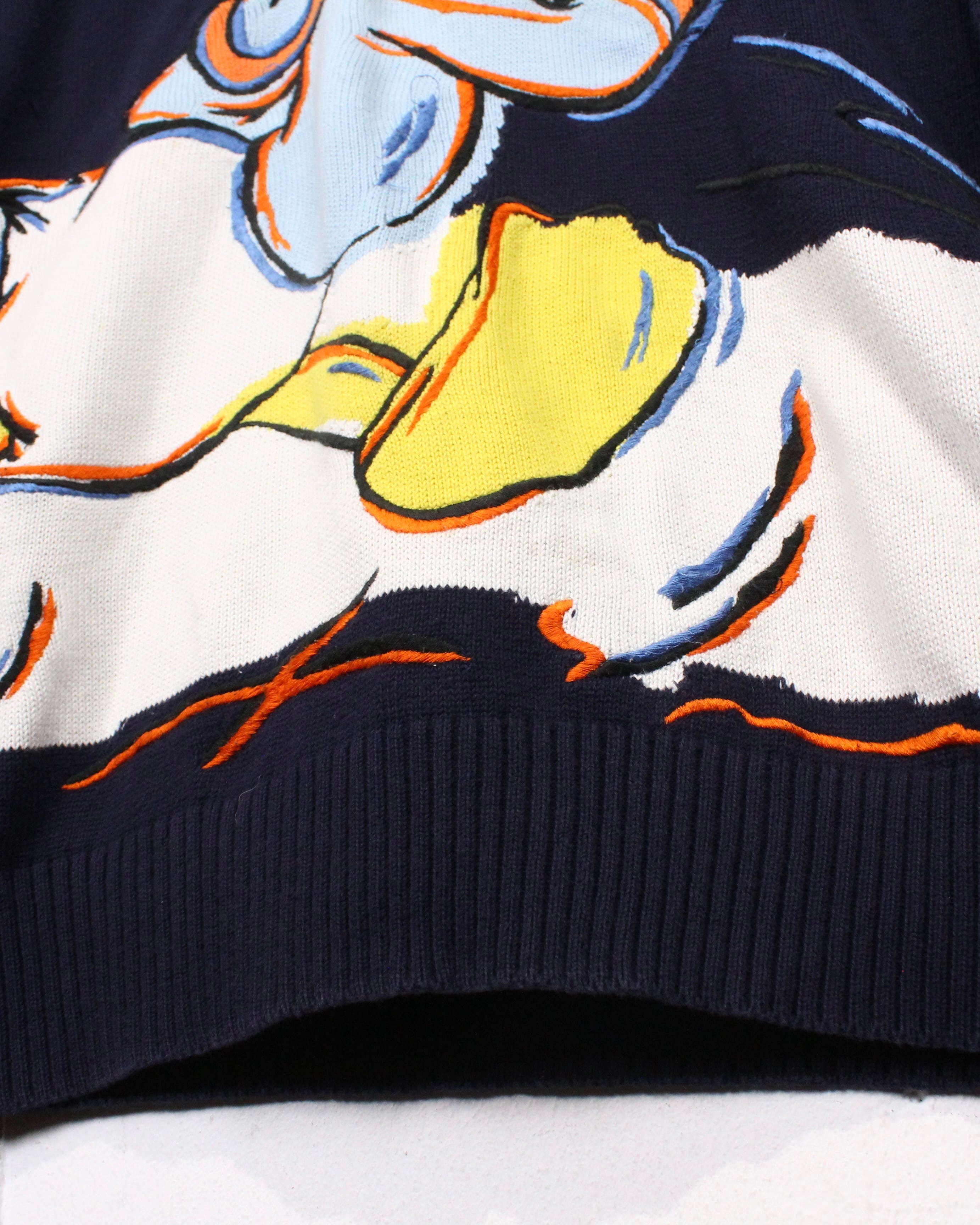 ネイビーのボディに色を切り替えて表現したドナルドダック、そして刺繍で躍動感を演出。このブランドならではの高いクオリティのニッティングに、愛らしいドナルドの抜け感がたまりません。