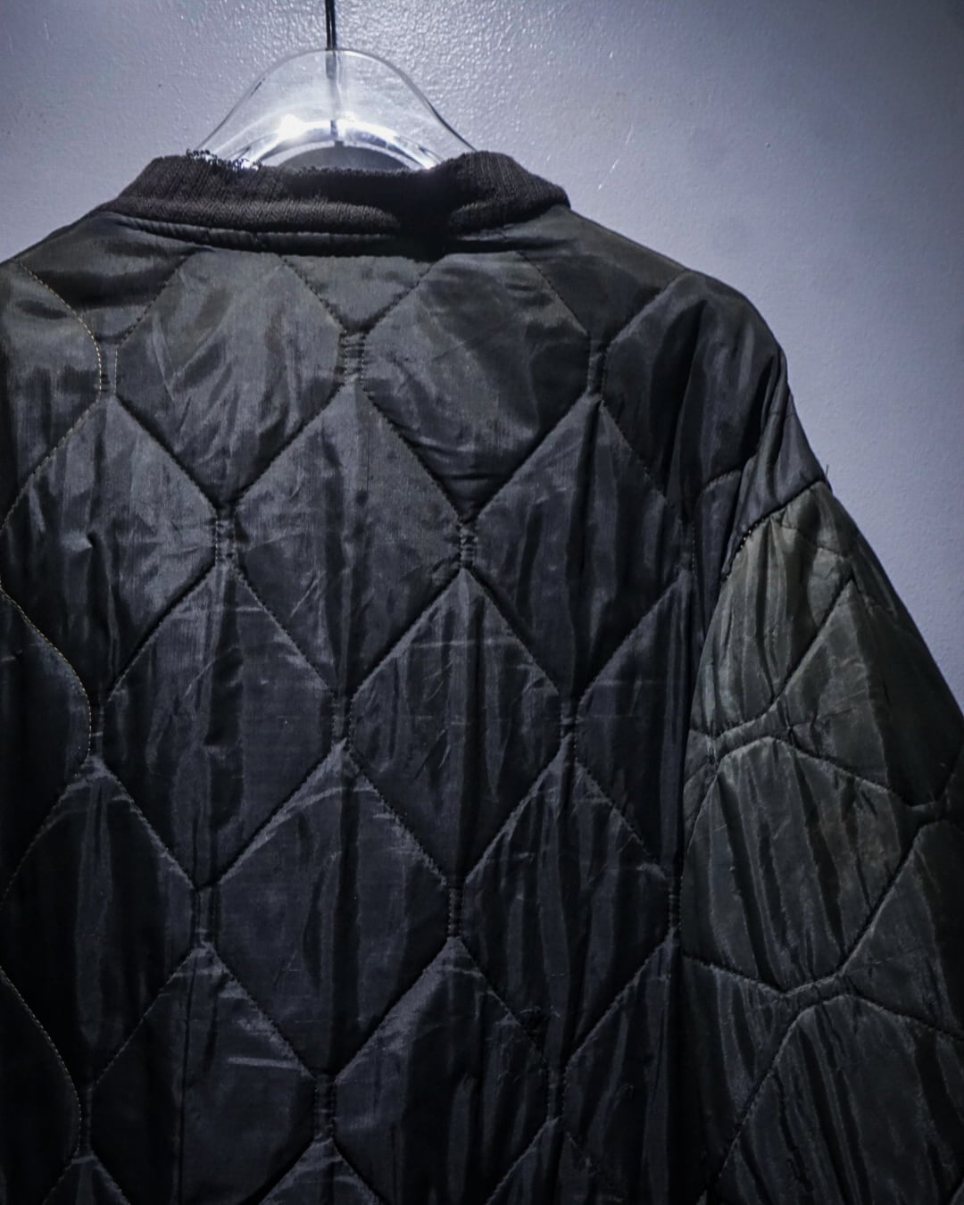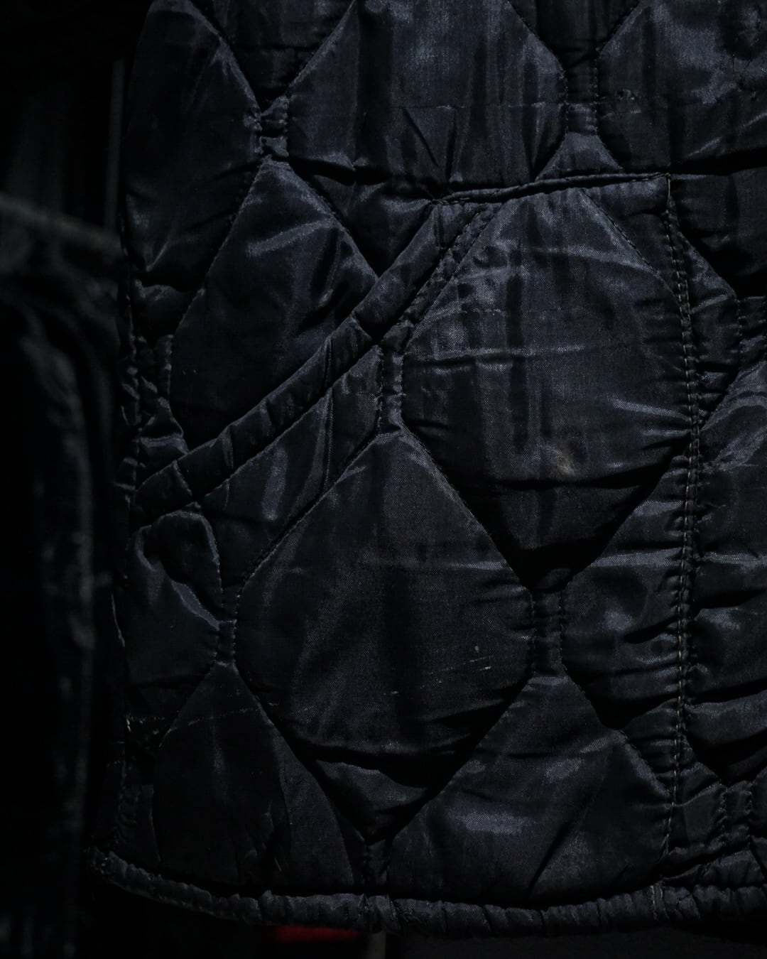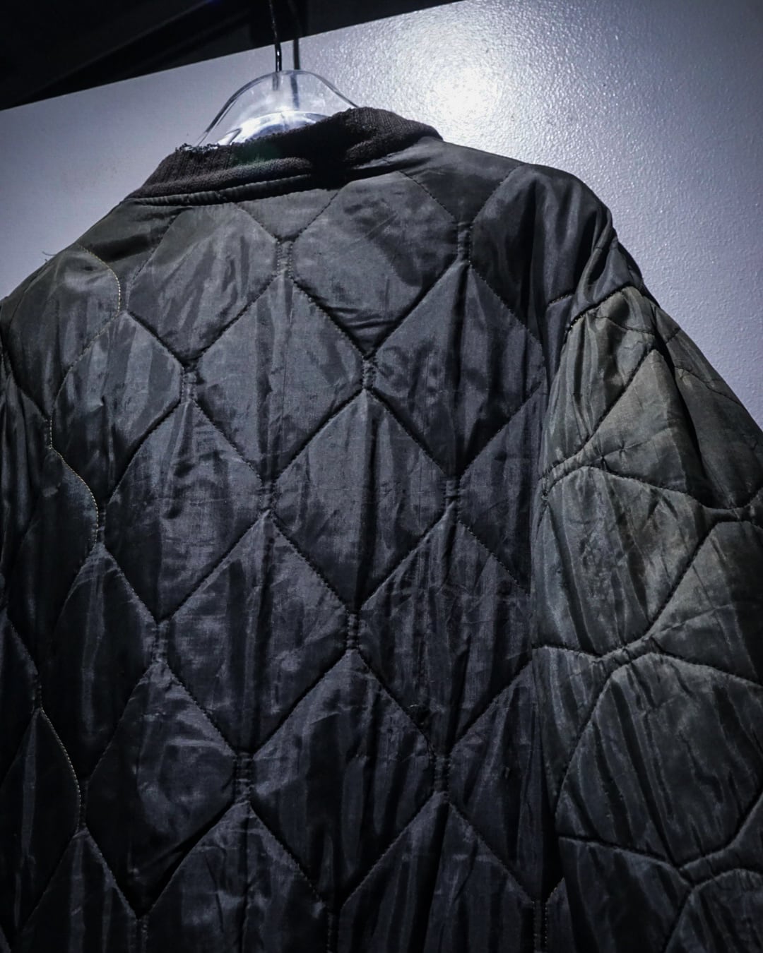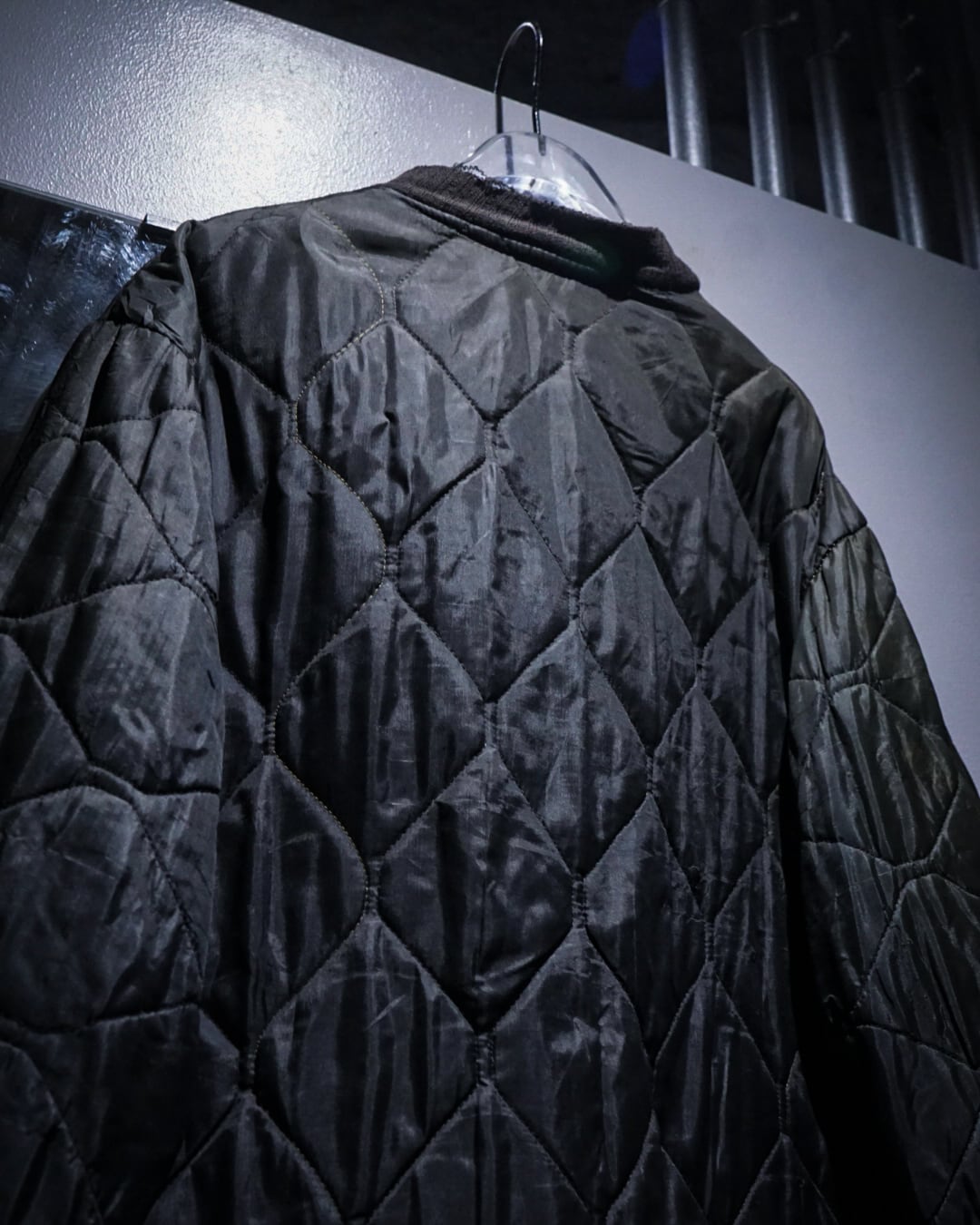 ダイヤ型キルティングのステッチワークが全体にリズムを生み、ミニマルなデザインの中にも確かな存在感を発揮。軽さがありつつ保温性も確保されており、秋冬はもちろん、春先の主役アウターとしても活躍します。