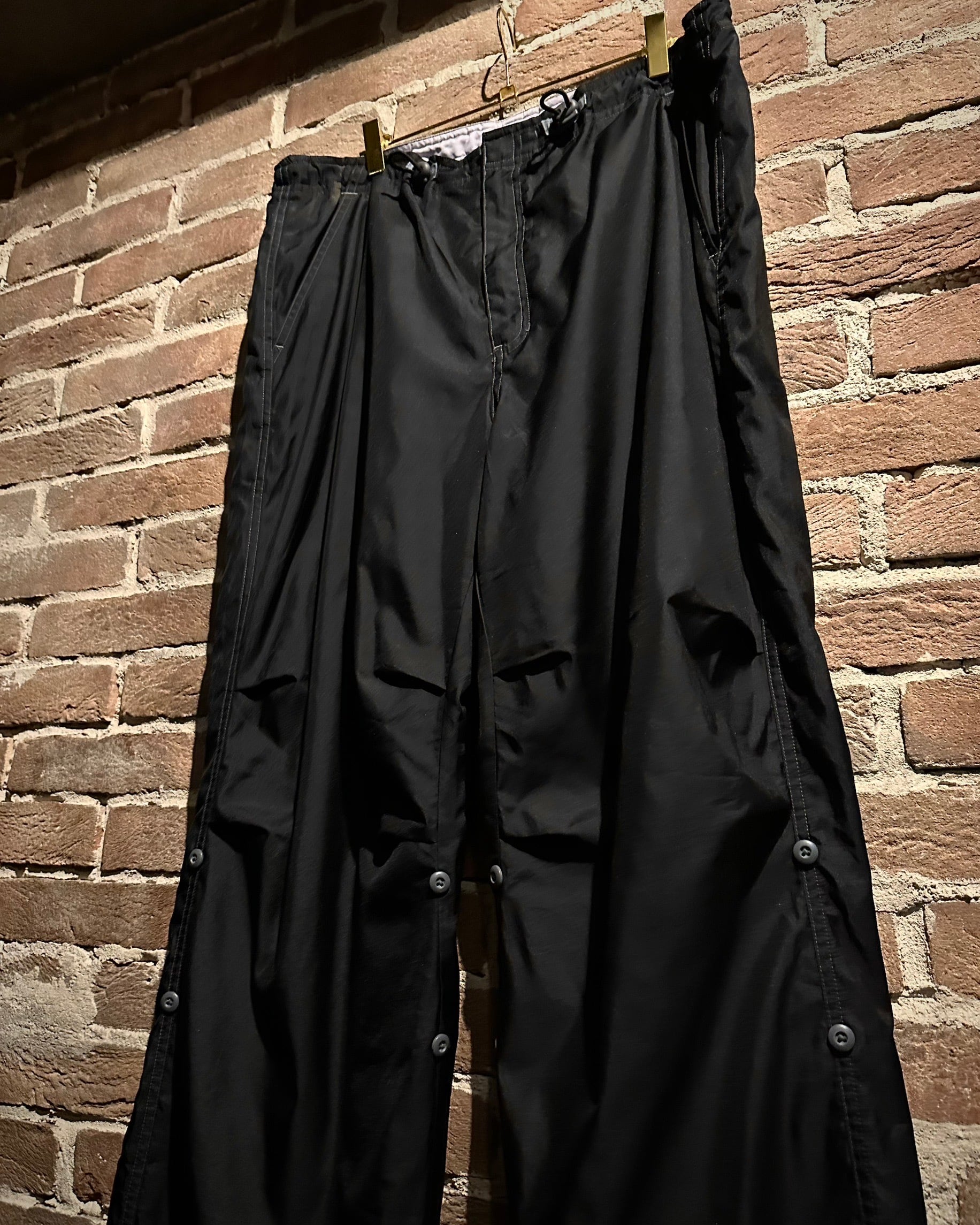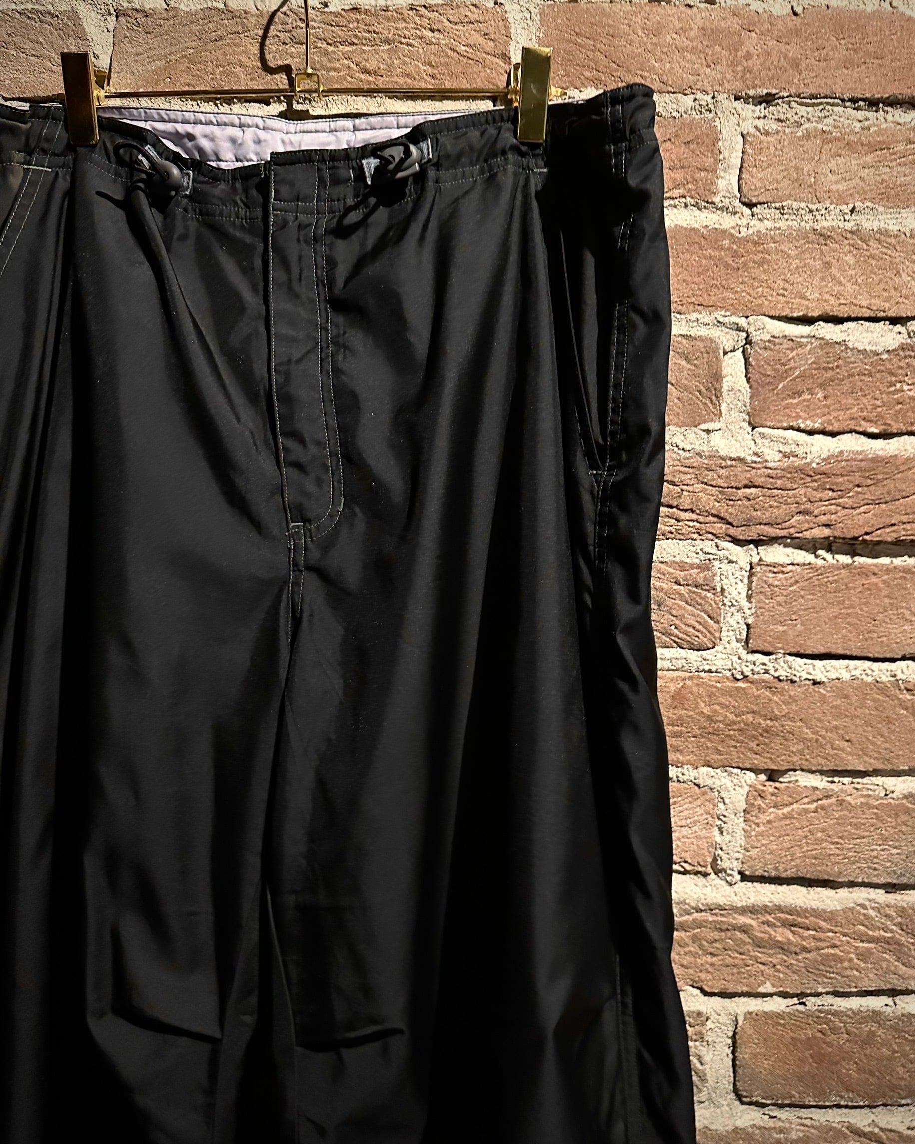 ベースは軽量なポリエステル素材。シャリ感のあるタッチでワイドストレートのシルエットを引き立てます。