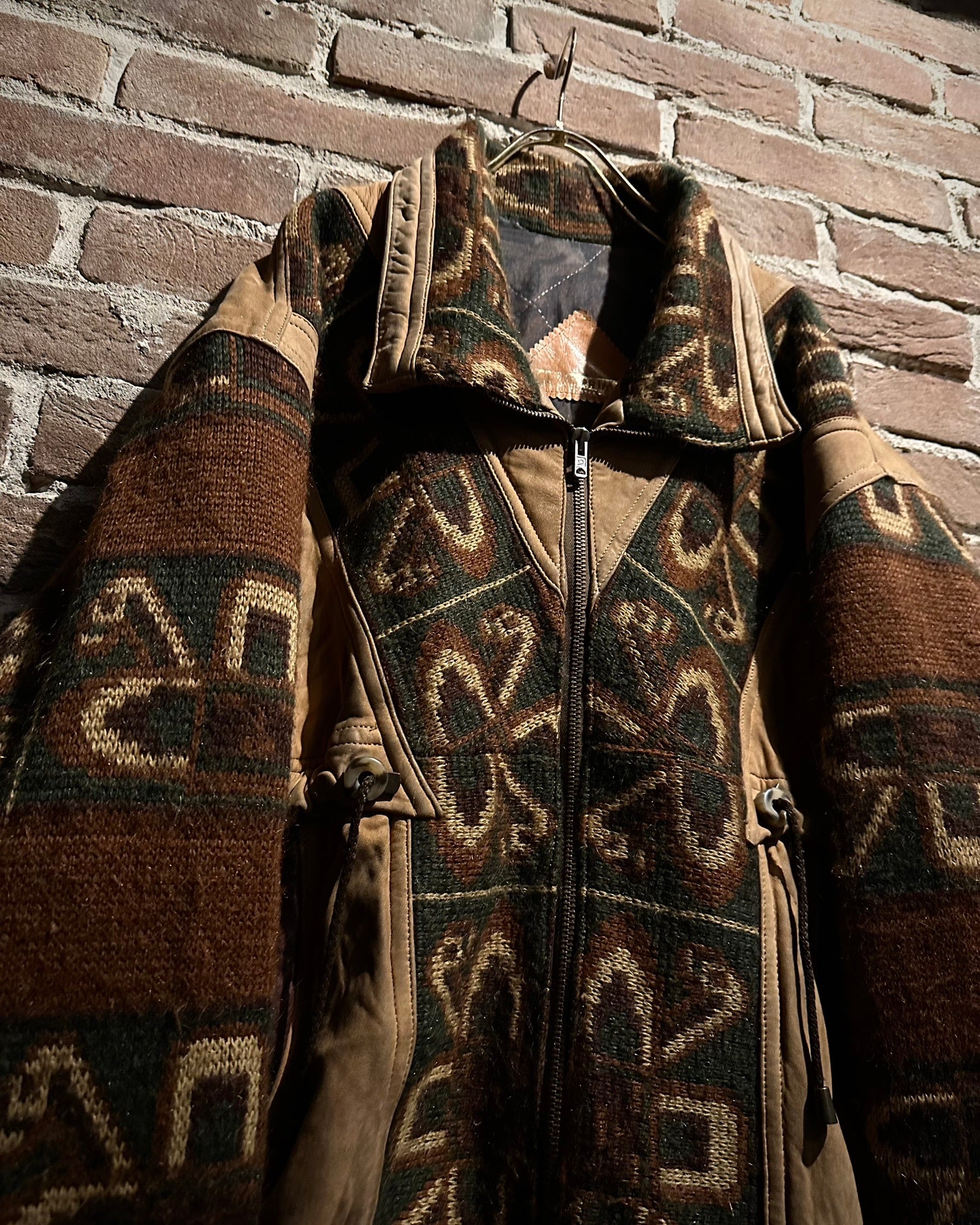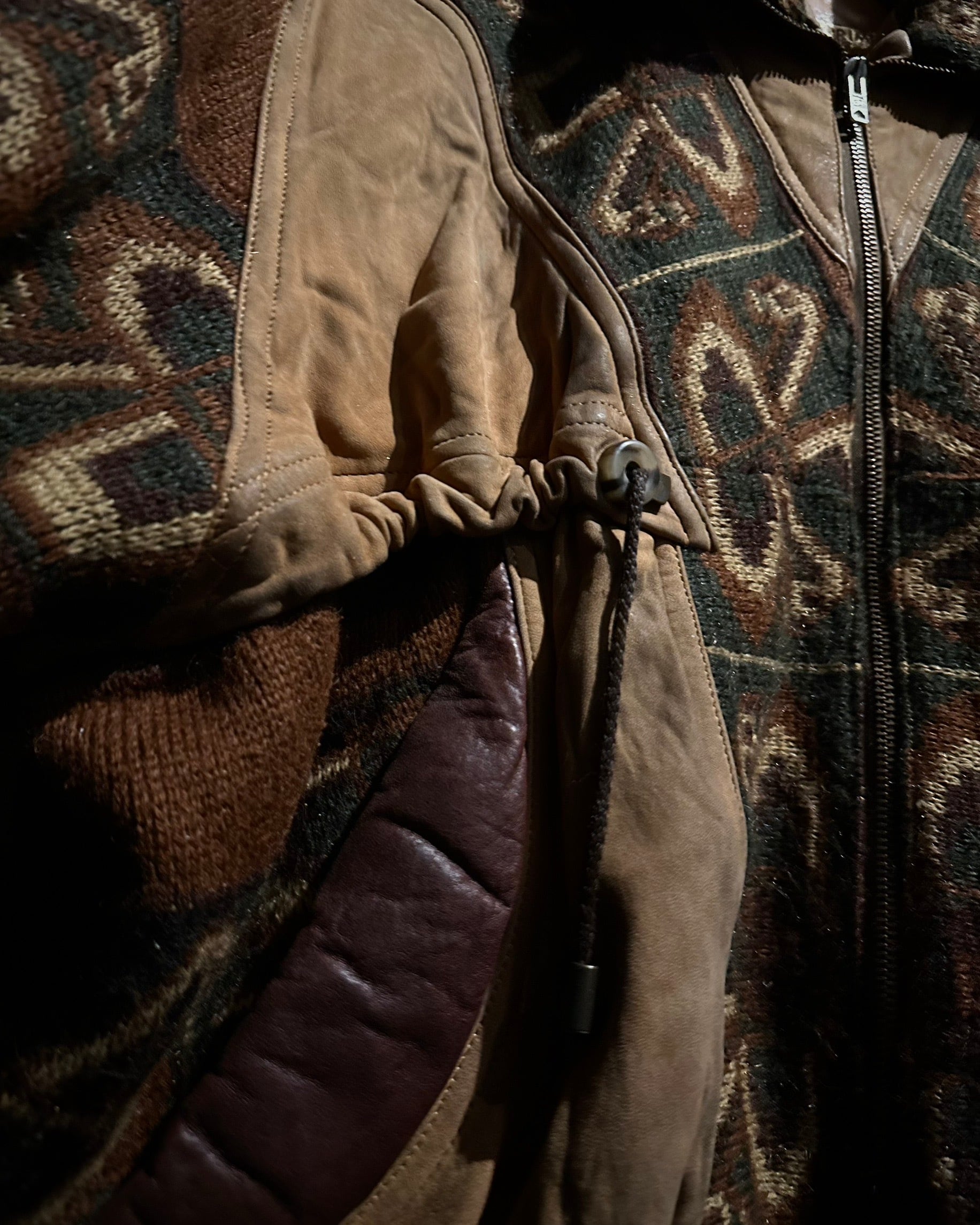 上質なニットをベースに、スムースレザーとスエードレザーを巧みに切り替えた、80'sユーロヴィンテージのジャケット。